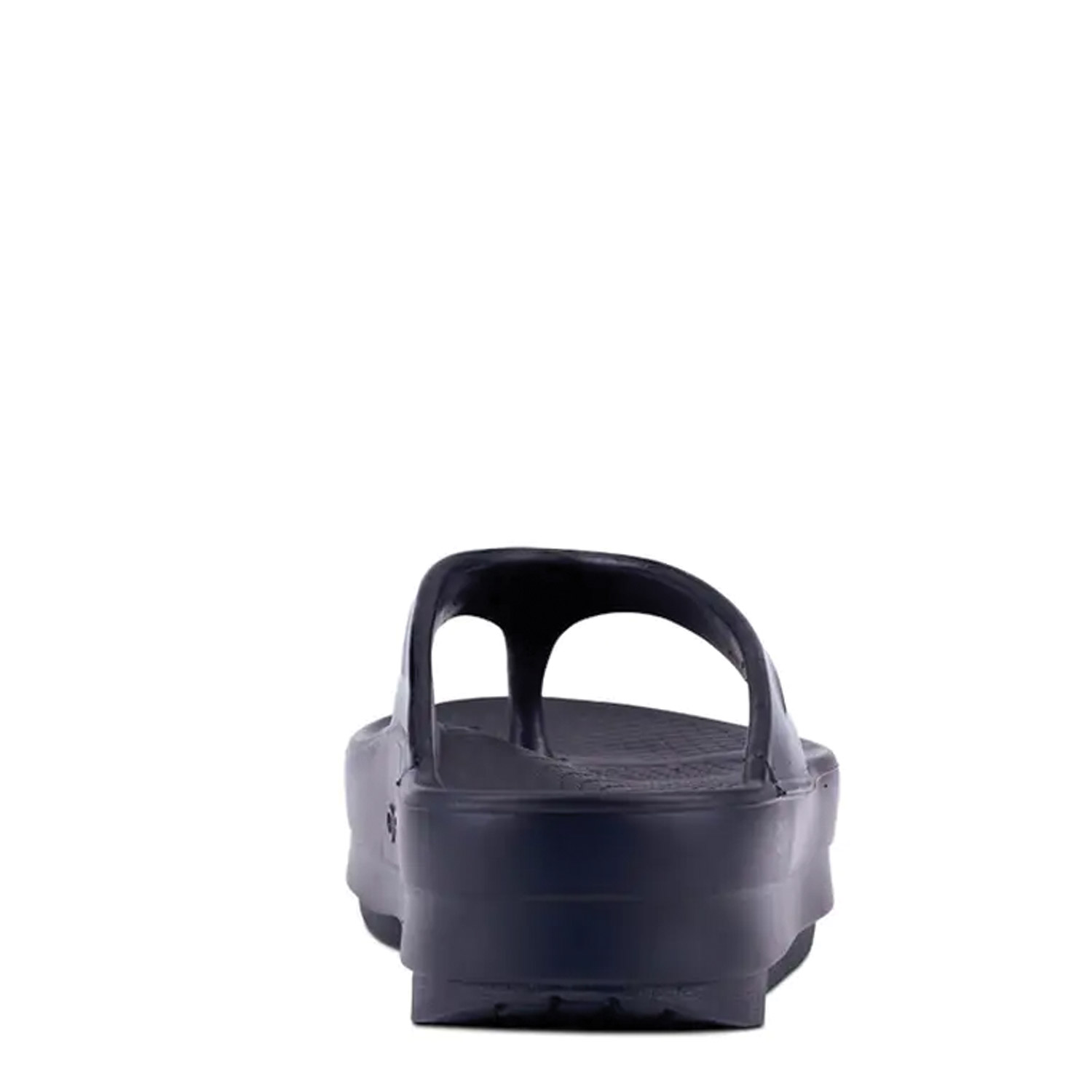 Oofos γυναικείο flip-flop σε μαύρο χρώμα κατασκευασμένο από οικολογικό δέρμα. Ύψος σόλας 4εκ.