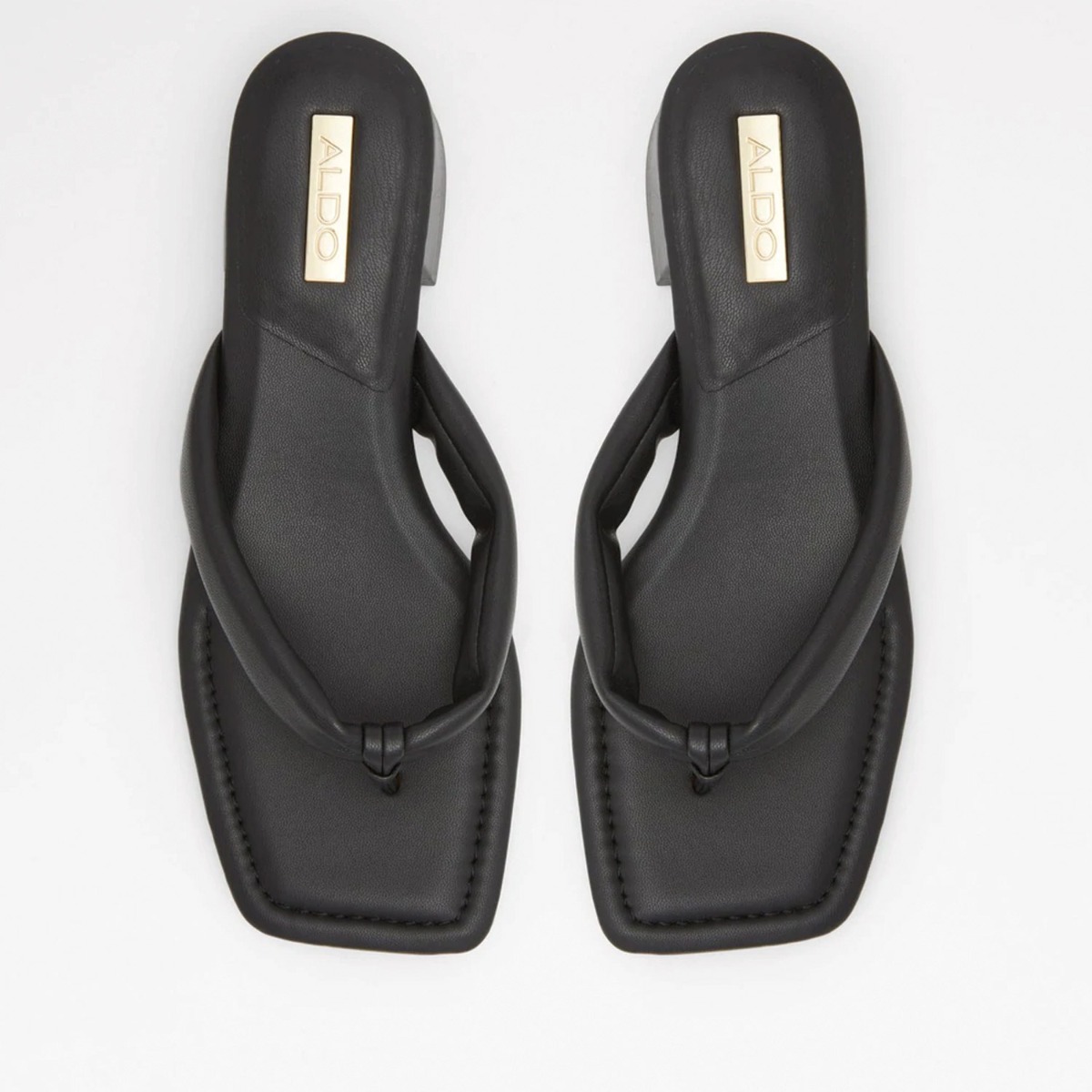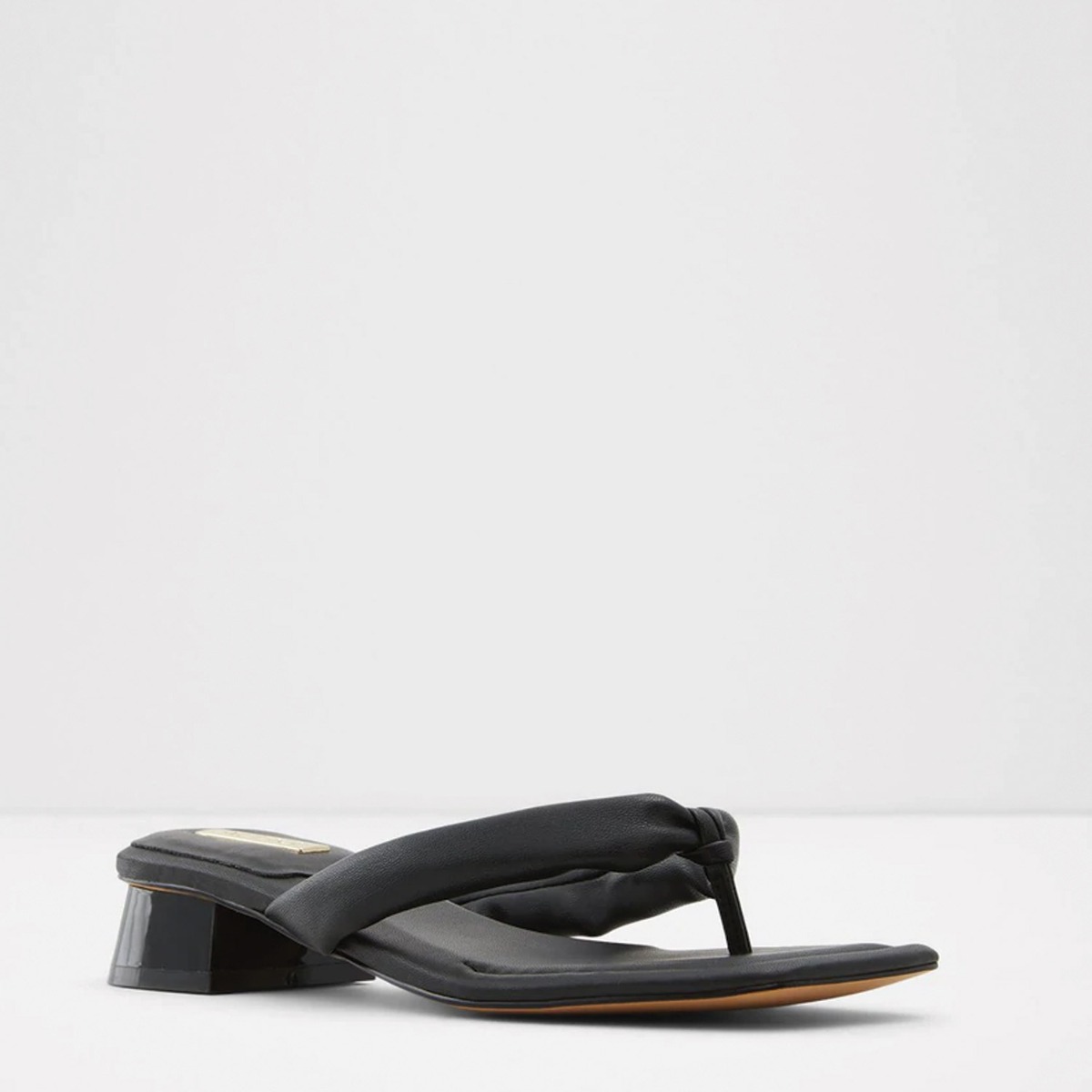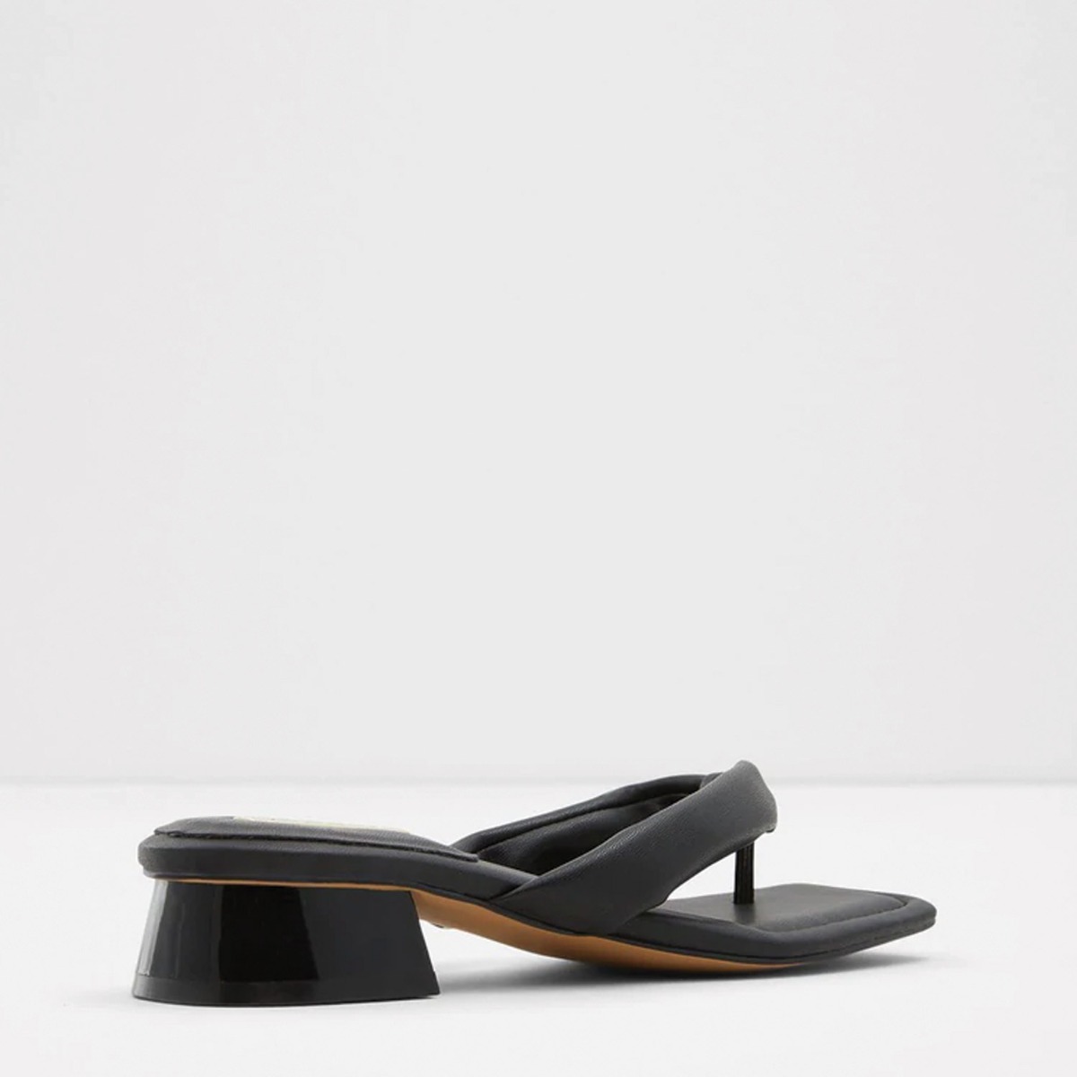 Aldo γυναικείο σανδάλι σε μαύρο χρώμα κατασκευασμένο από οικολογικό δέρμα, με ανατομικό πατάκι. Ύψος τακουνιού 4εκ.