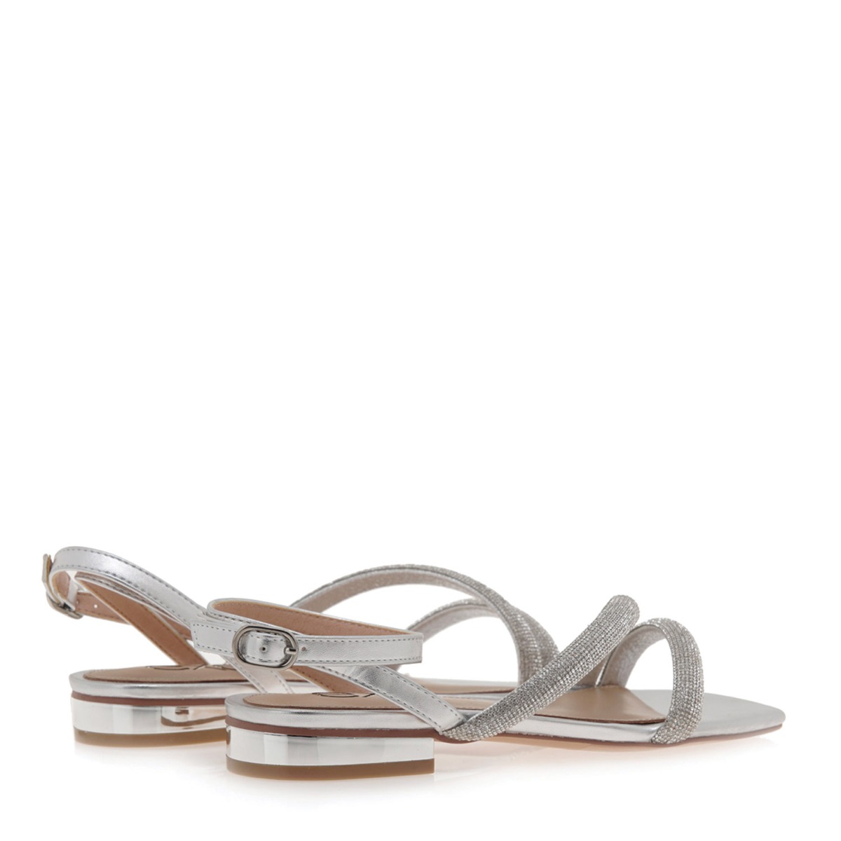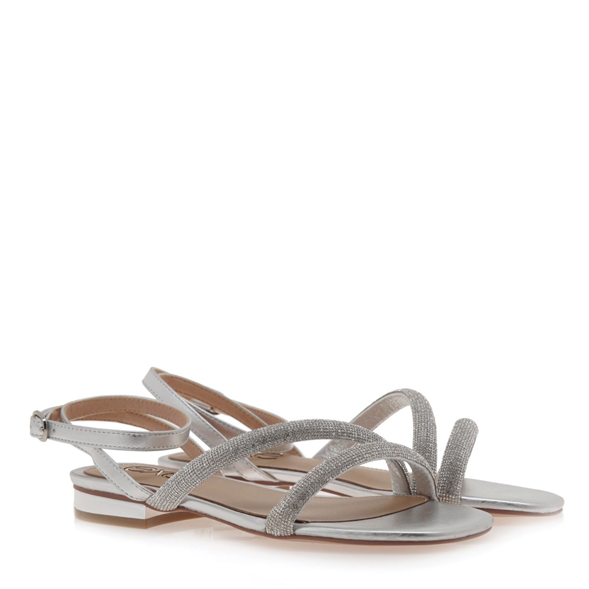 Exe γυναικείο σανδάλι σε ασημί χρώμα κατασκευασμένο από οικολογικό δέρμα. Ύψος τακουνιού 2εκ.