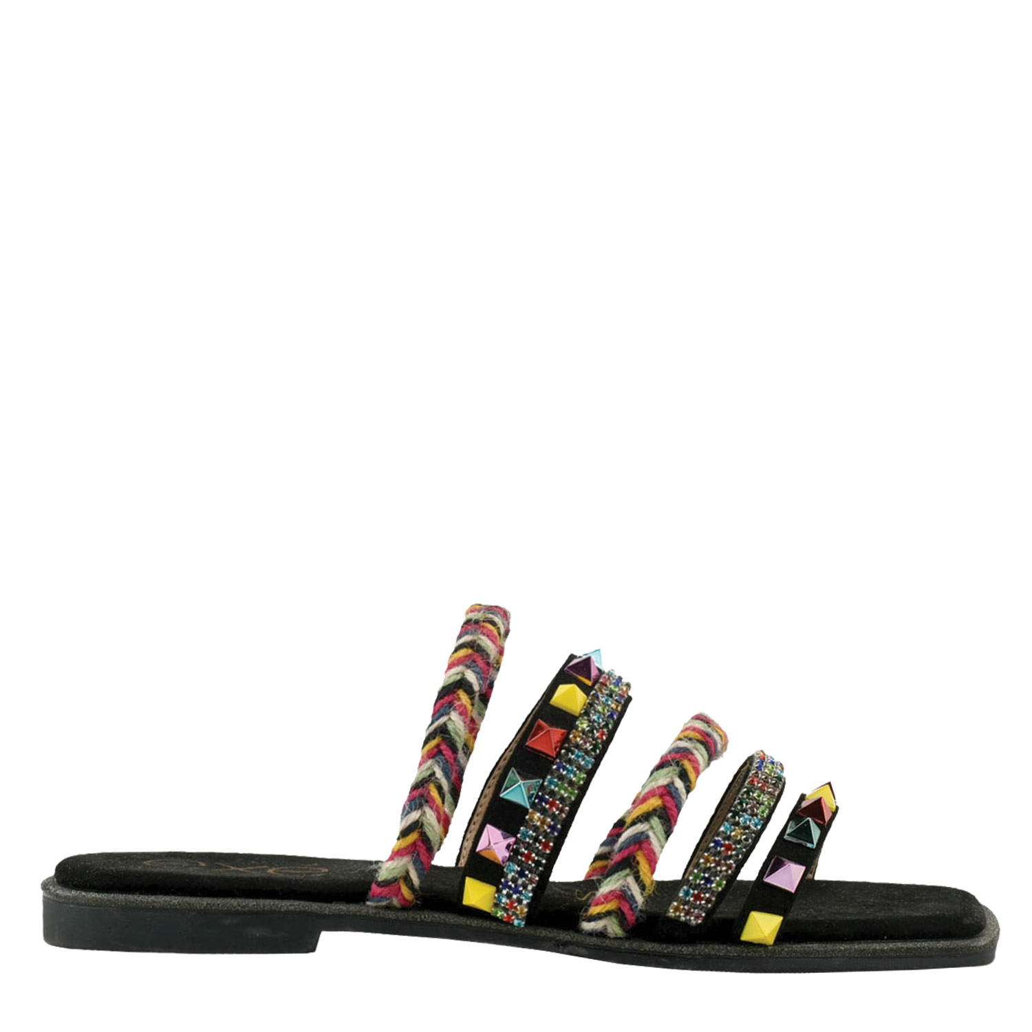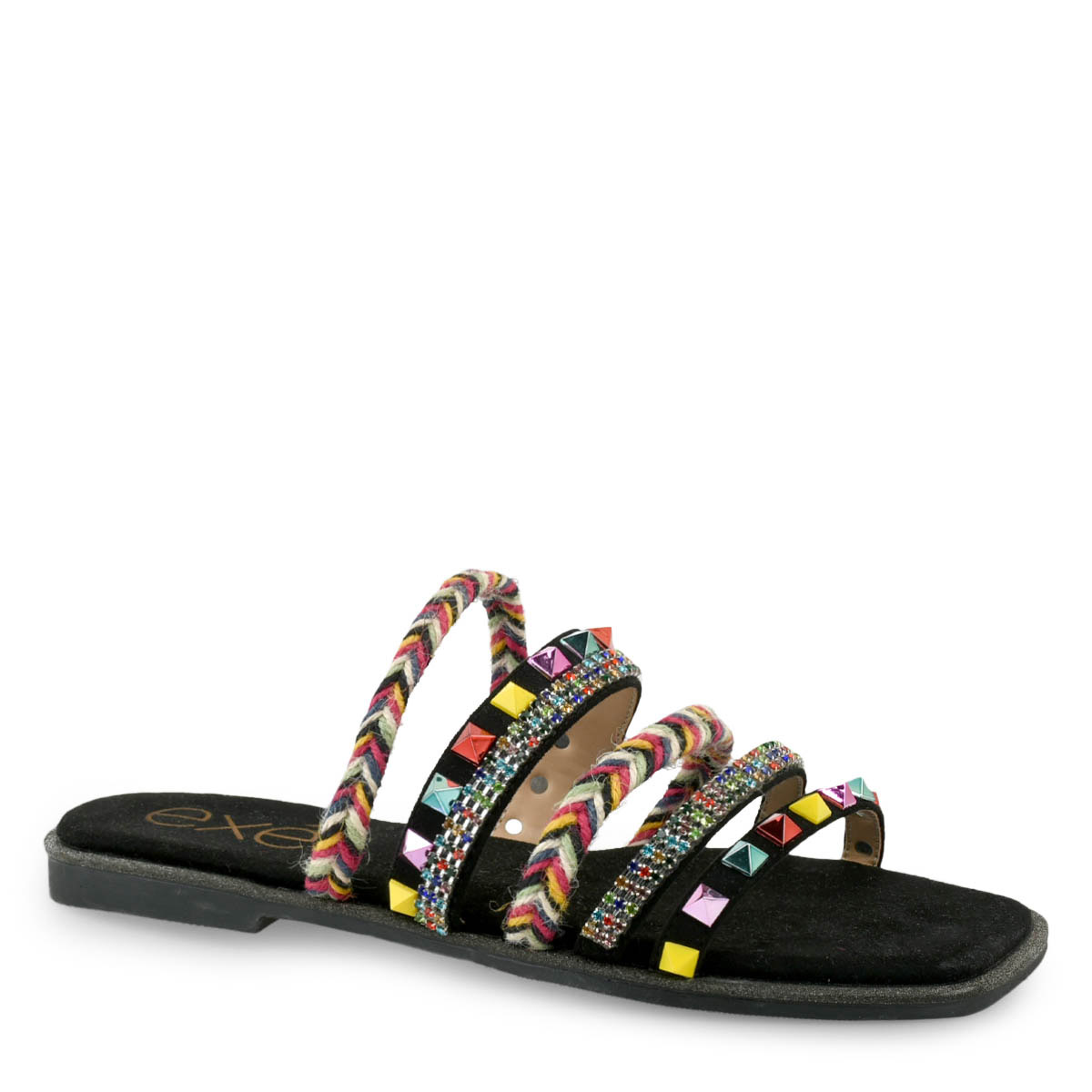 Exe γυναικείο σανδάλι σε μαύρο χρώμα κατασκευασμένο από ύφασμα καστόρι. Ύψος σόλας 1.5εκ.
