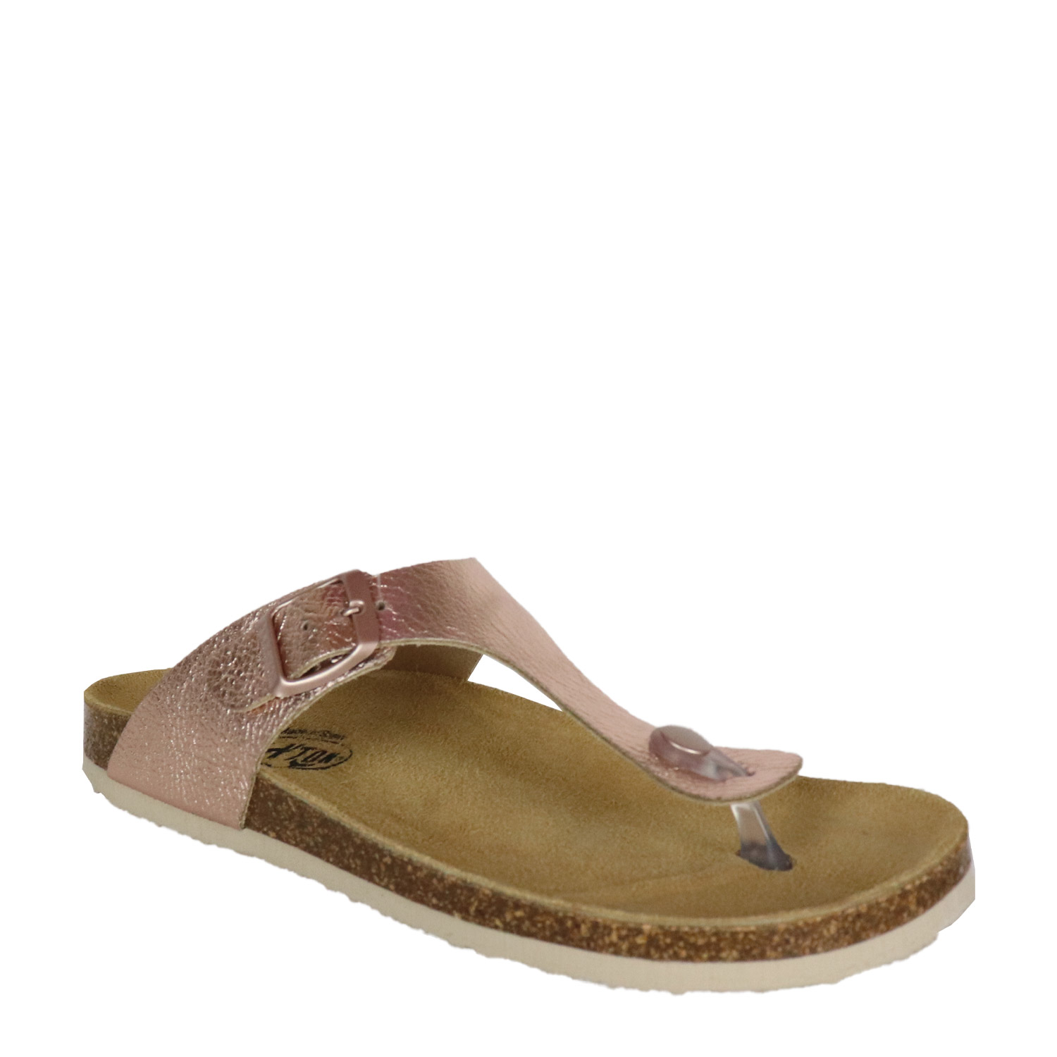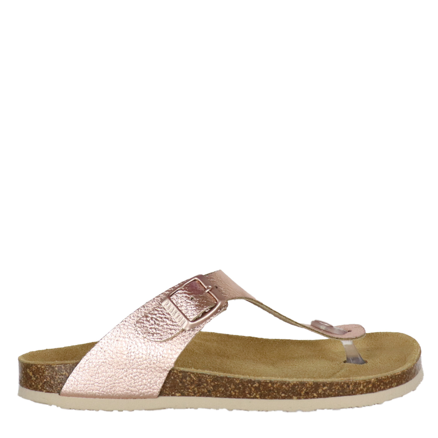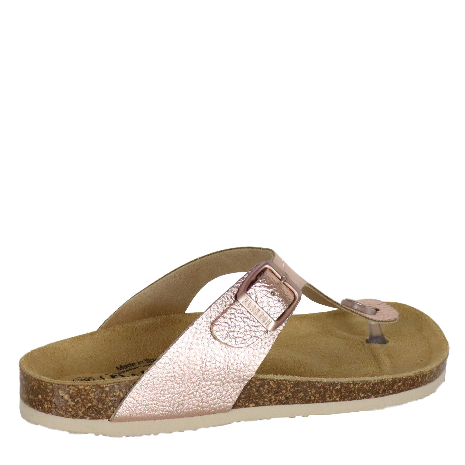 Plakton γυναικείο σανδάλι σε ροζ χρυσό χρώμα κατασκευασμένο από δέρμα με δερμάτινο ανατομικό πατάκι. Ύψος σόλας 2.5εκ.