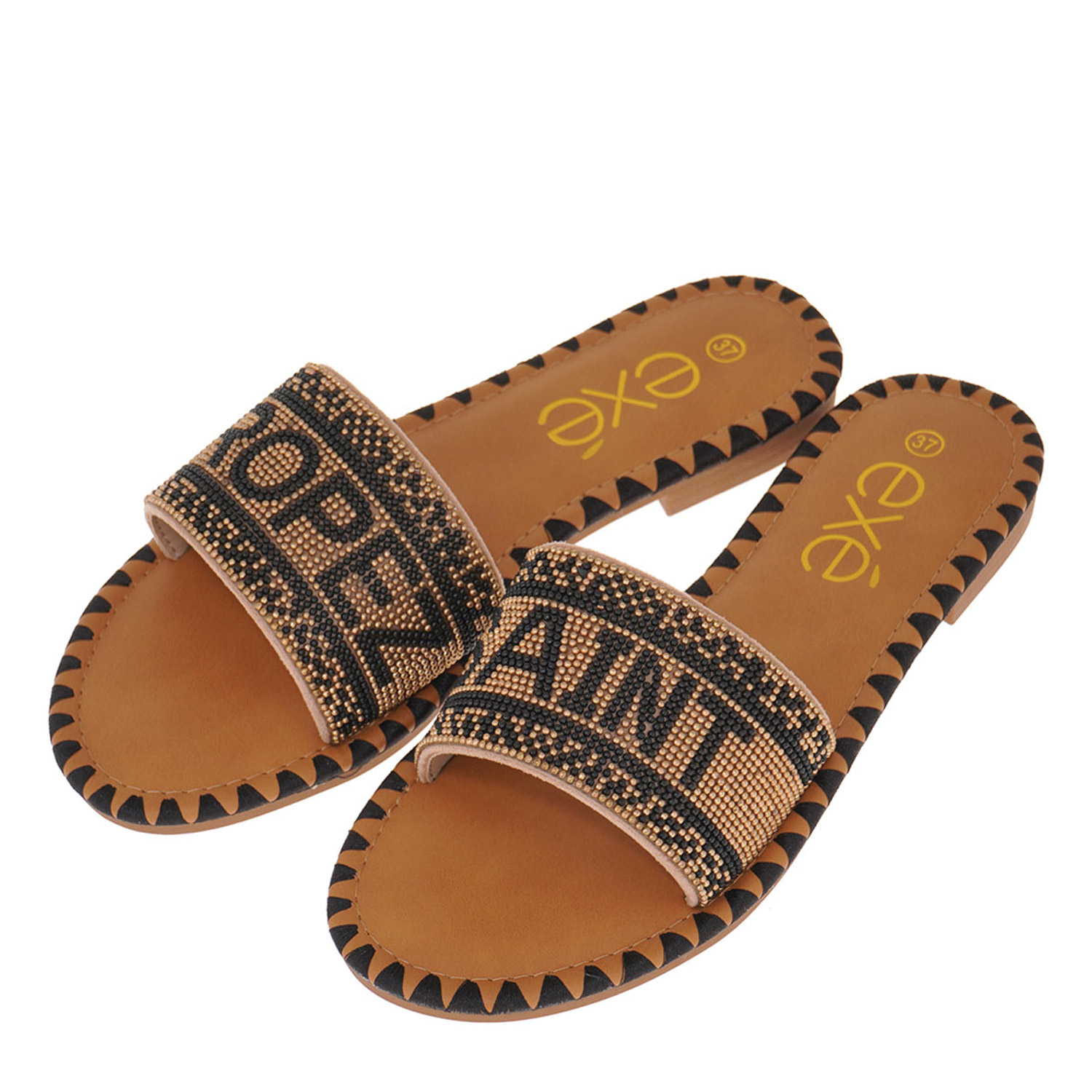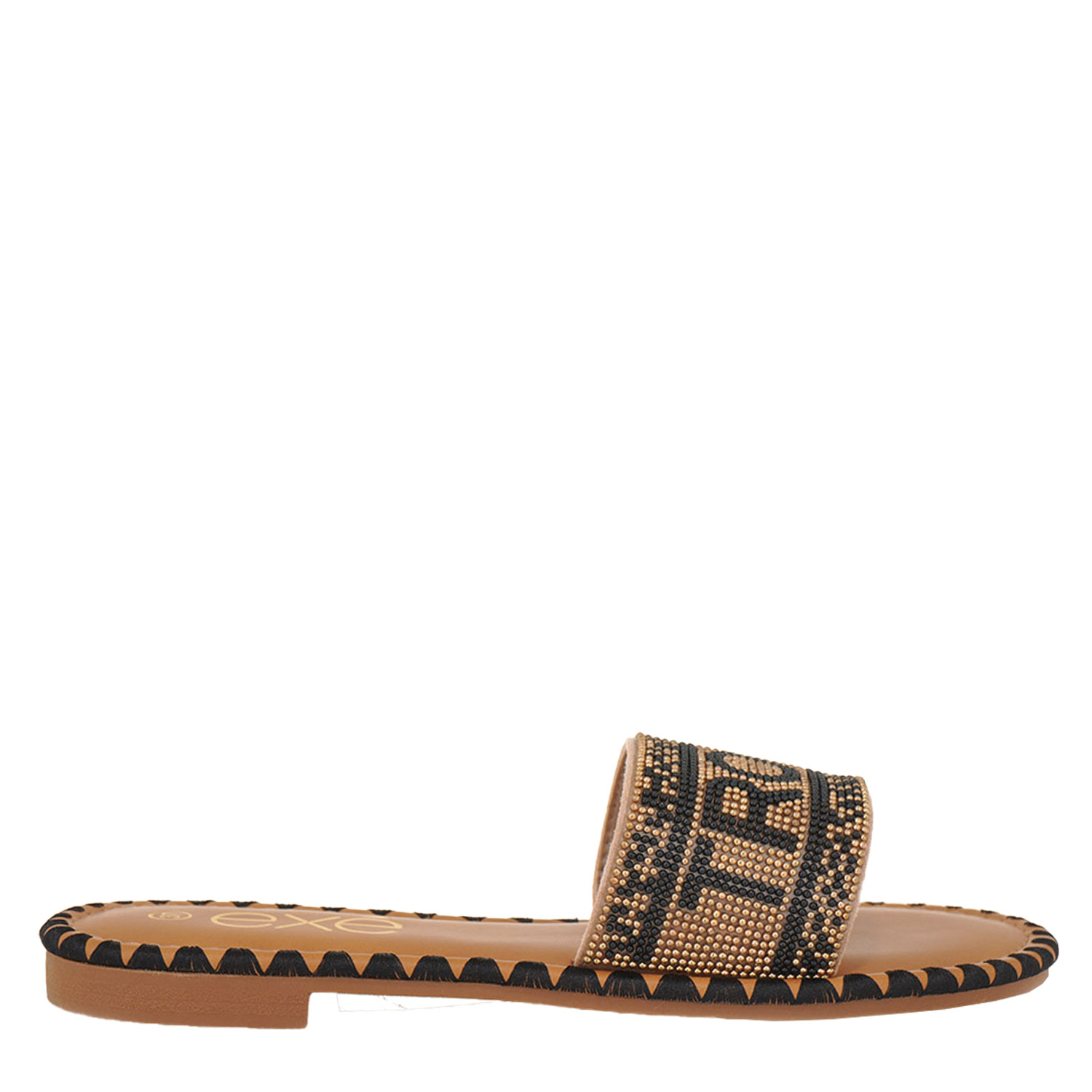 Exe γυναικείο σανδάλι, σε χρυσό χρώμα, κατασκευασμένο από οικολογικό δέρμα. Ύψος τακουνιού 1.5εκ.