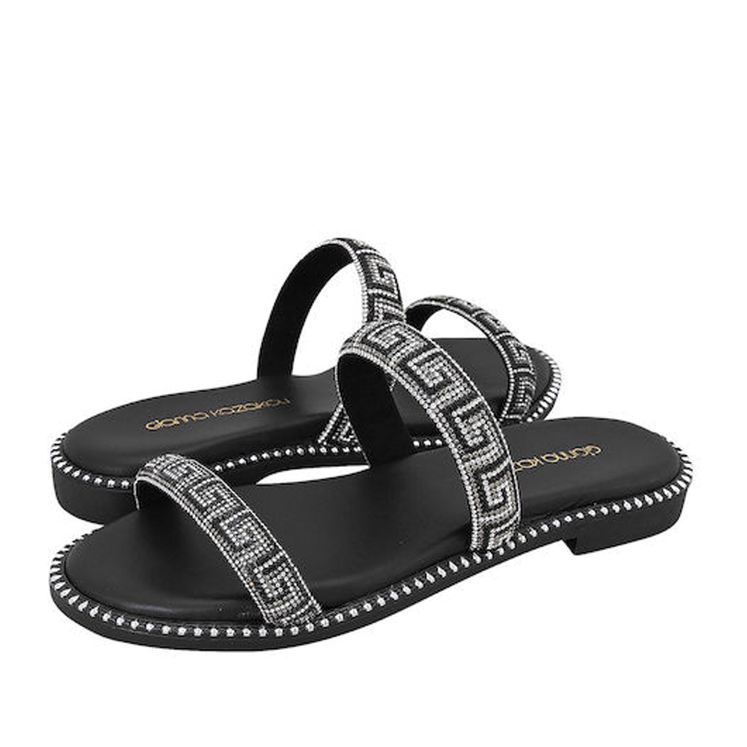 Gianna Kazakou γυναικείο σανδάλι σε μαύρο χρώμα, κατασκευασμένο από οικολογικό δέρμα. Ύψος σόλας 2εκ.