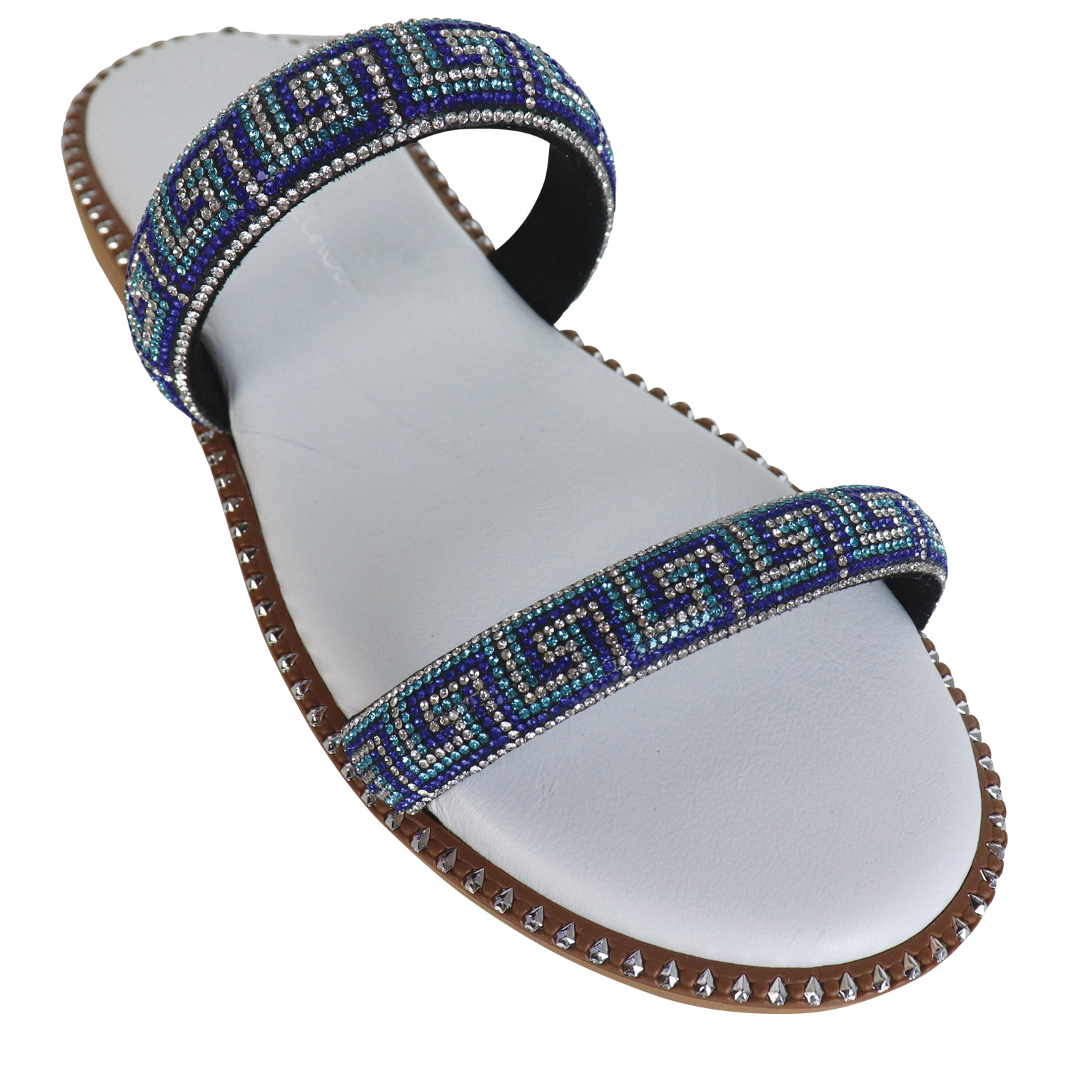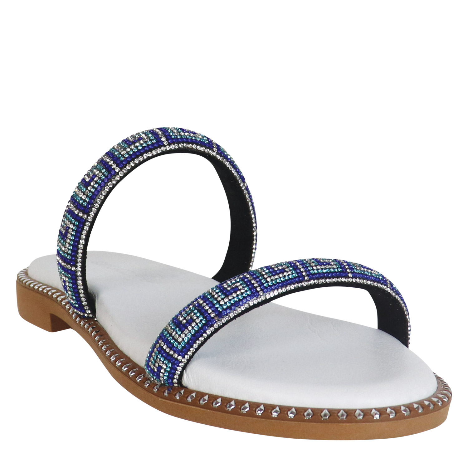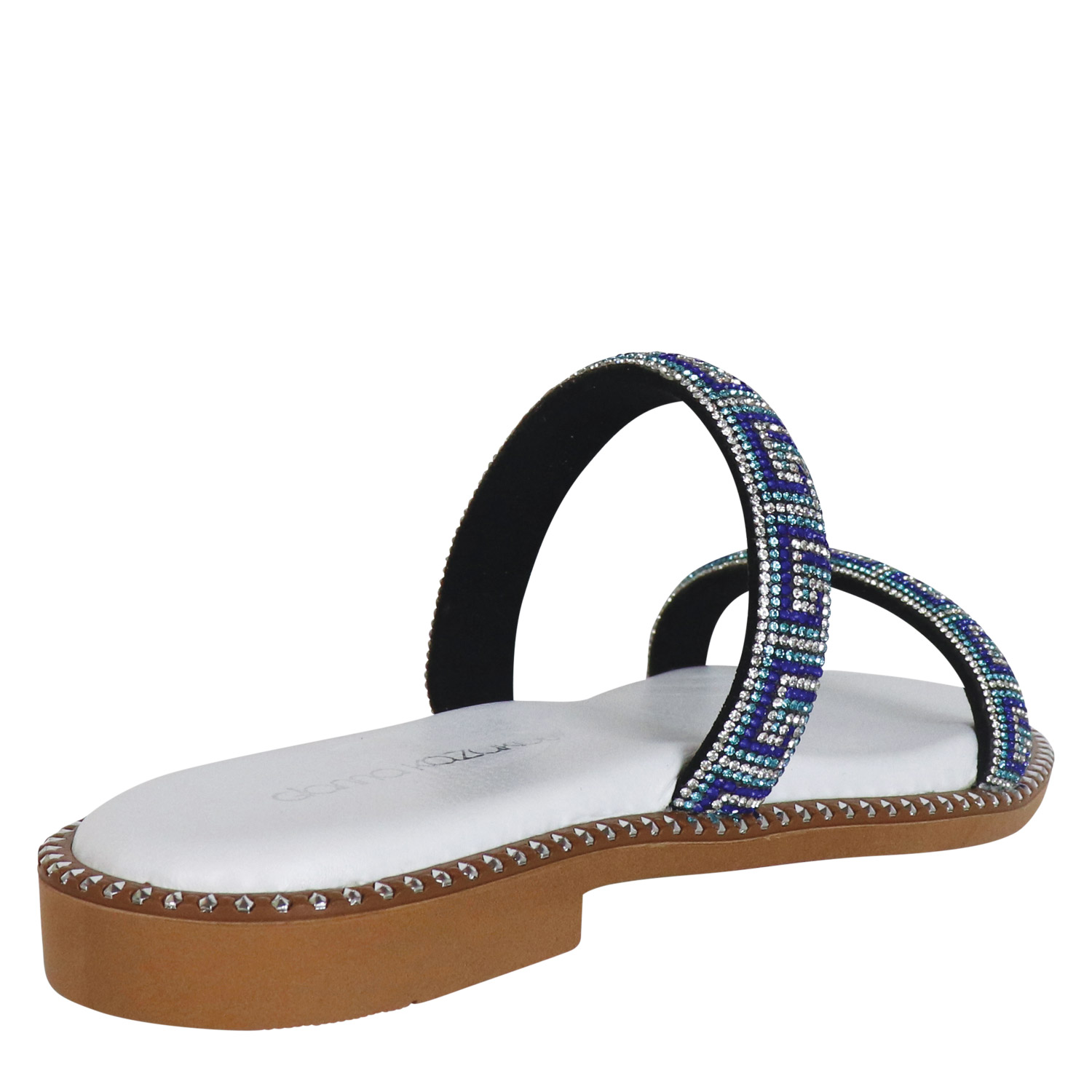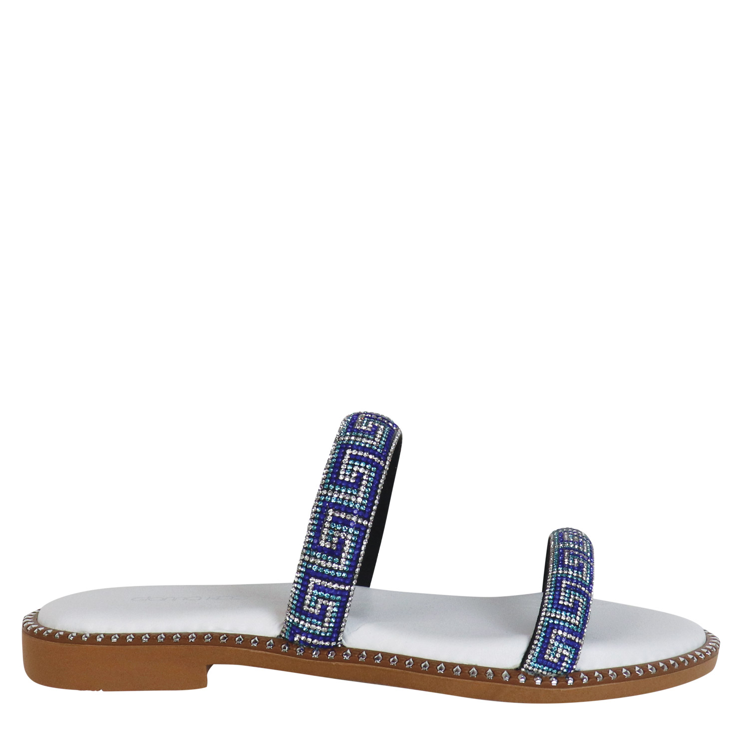 Gianna Kazakou γυναικείο σανδάλι σε λευκό-μπλε χρώμα, κατασκευασμένο από οικολογικό δέρμα. Ύψος σόλας 2εκ.