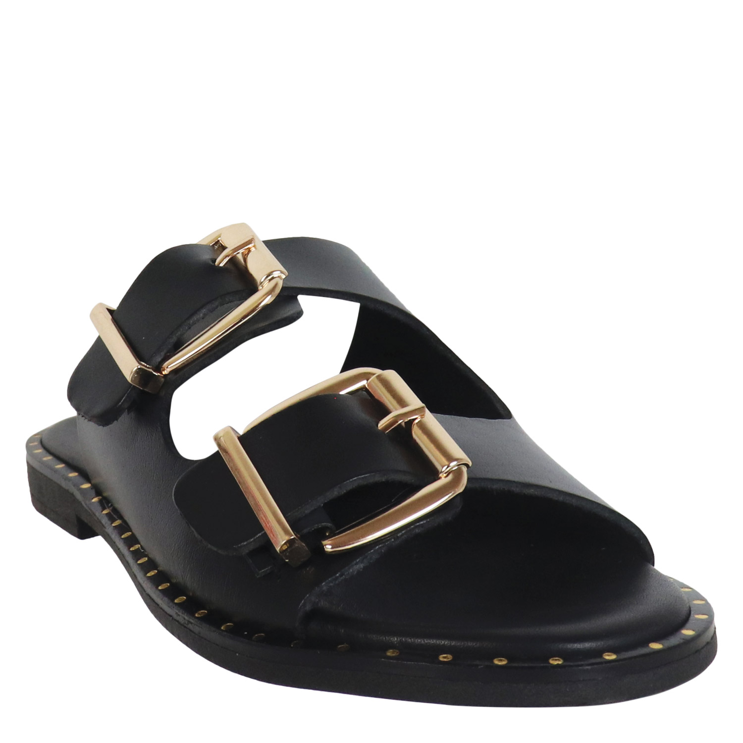 Koniarisshoes γυναικείο σανδάλι, σε μαύρο χρώμα, κατασκευασμένο από δέρμα. Ύψος σόλας 2εκ.