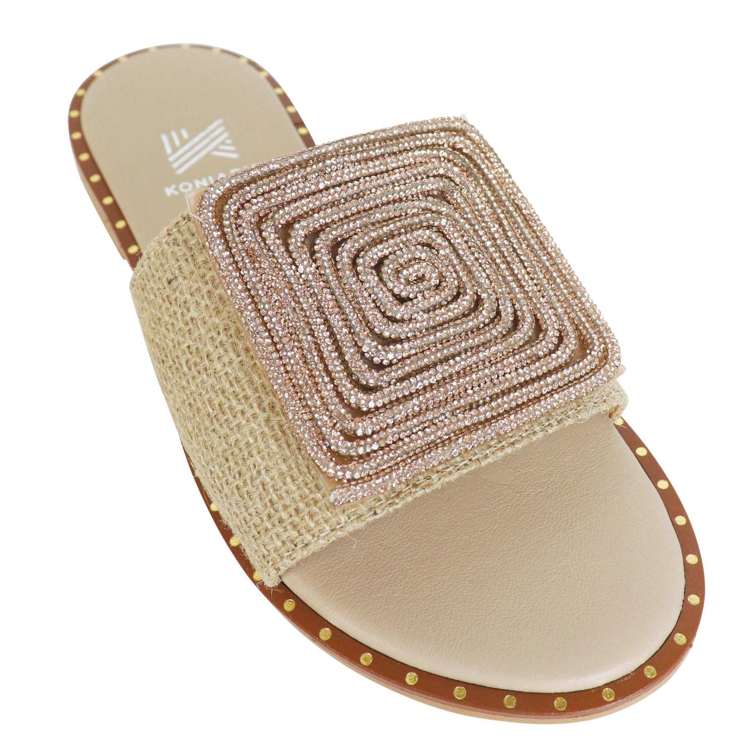 Koniarisshoes γυναικείο σανδάλι, σε μπεζ χρώμα, κατασκευασμένο από ψάθα. Ύψος τακουνιού 1.5εκ.
