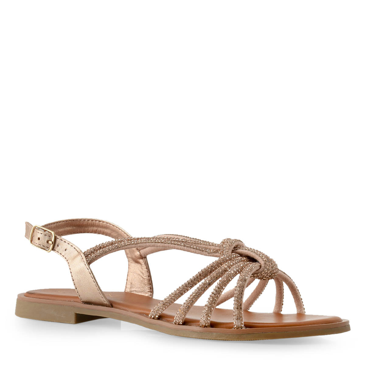 Seven γυναικείο σανδάλι σε ροζ χρυσό χρώμα κατασκευασμένο από οικολογικό δέρμα με στρας. Ύψος σόλας 1εκ.