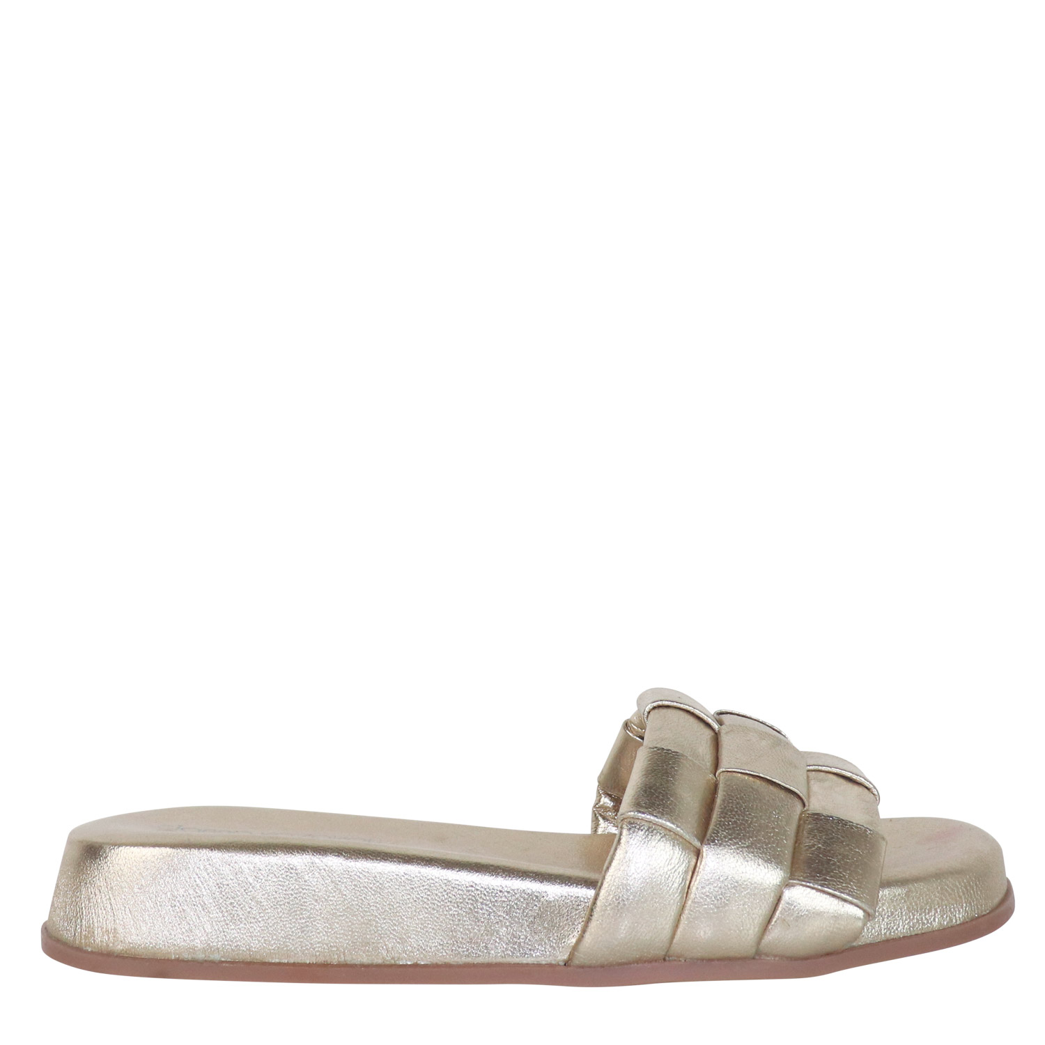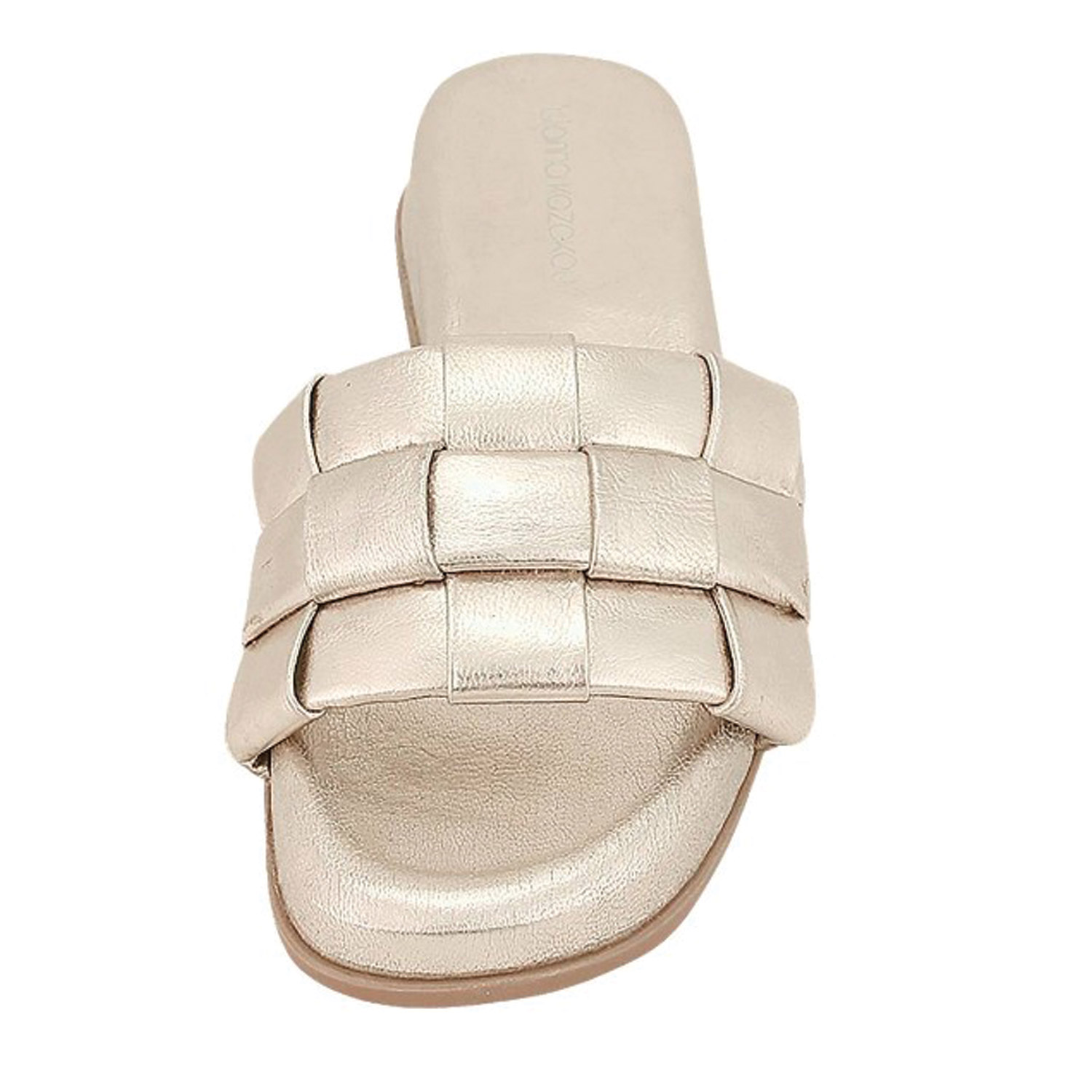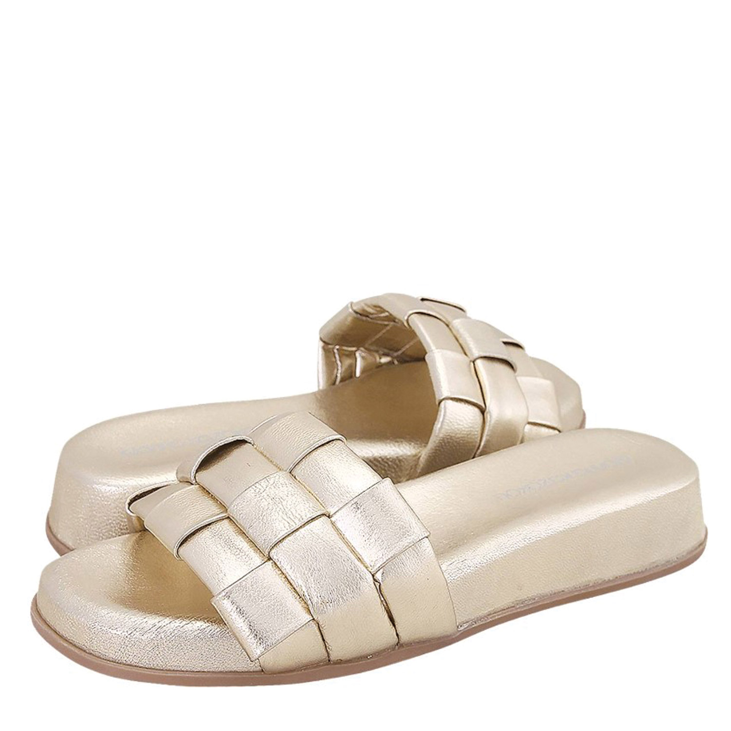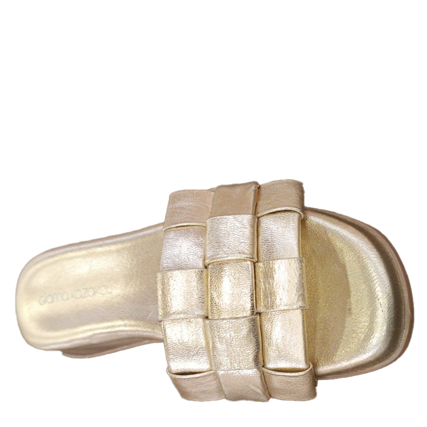 Gianna Kazakou γυναικείο σανδάλι, σε χρυσό χρώμα, κατασκευασμένο από δέρμα. Ύψος σόλας 3.5εκ.