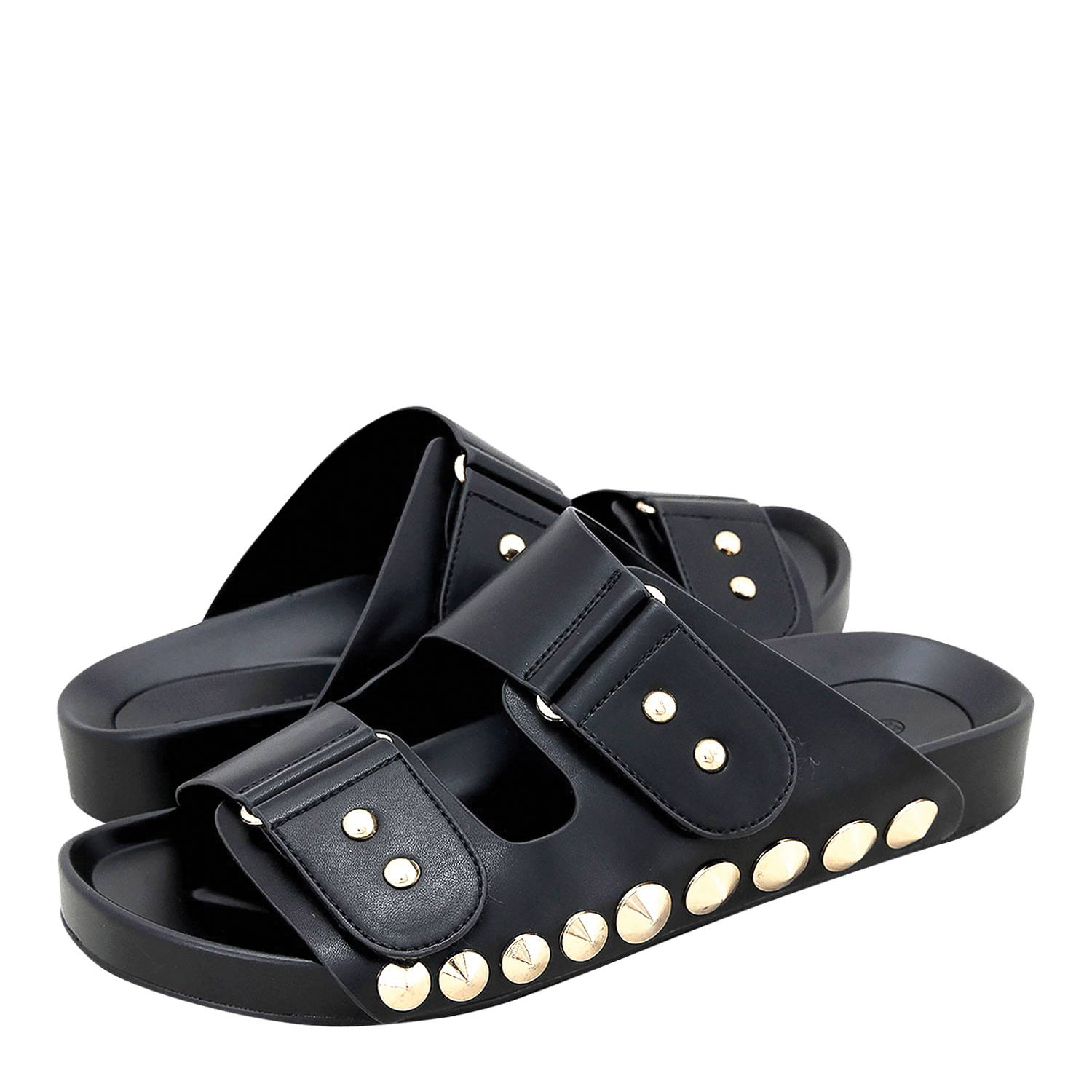 Gianna Kazakou γυναικείο σανδάλι, σε μαύρο χρώμα, κατασκευασμένο από οικολογικό δέρμα. Ύψος σόλας 2.5εκ.