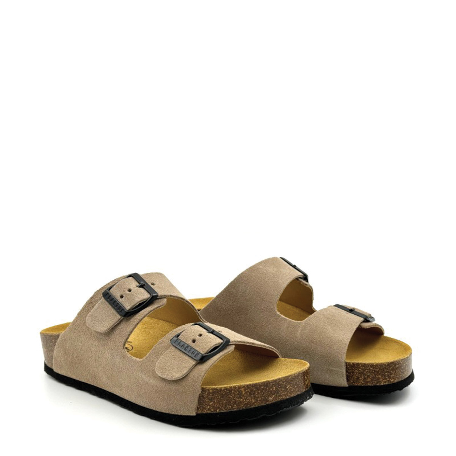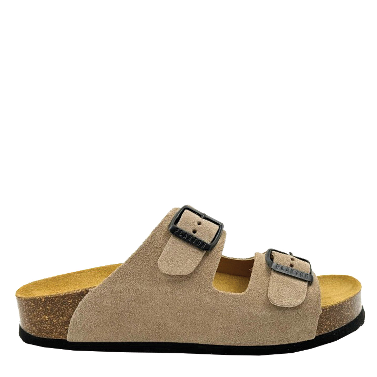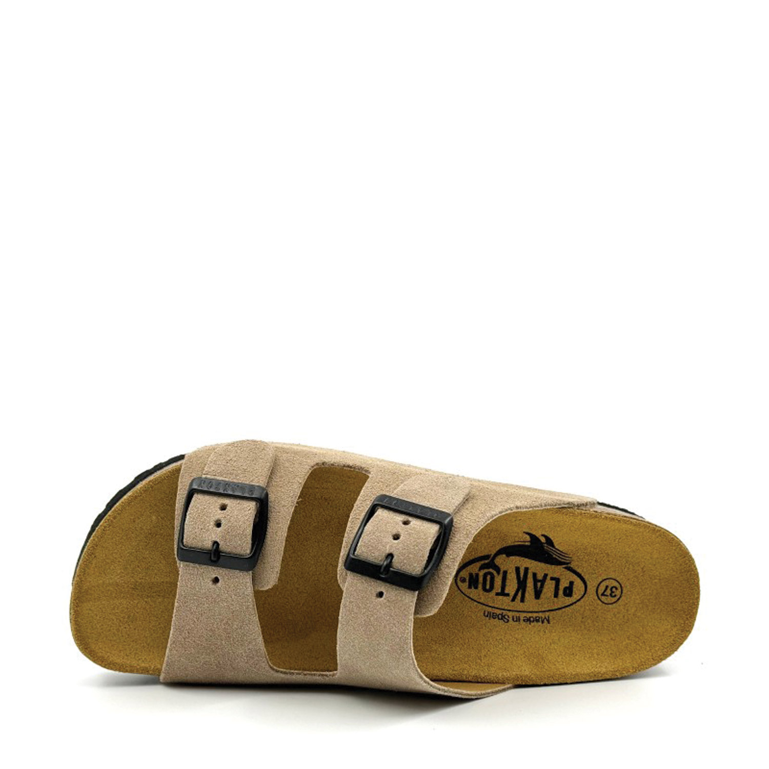 Plakton γυναικείο σανδάλι, σε μπεζ χρώμα, κατασκευασμένο από δέρμα, με ανατομικό πάτο. Ύψος σόλας 3.5εκ.