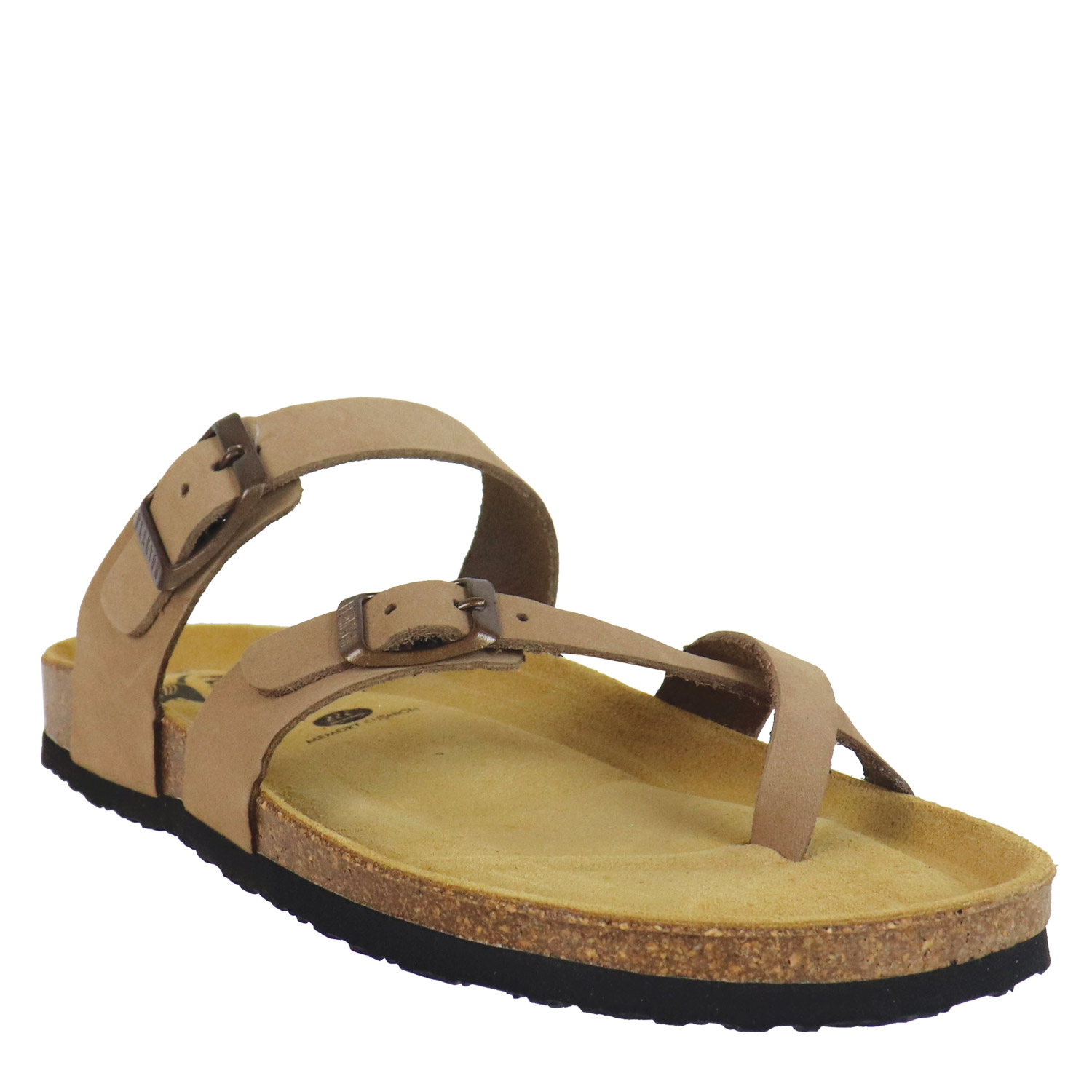 Plakton γυναικείο σανδάλι σε ταουπέ χρώμα κατασκευασμένο από δέρμα με ανατομικό πατάκι. Ύψος σόλας 2.5εκ.