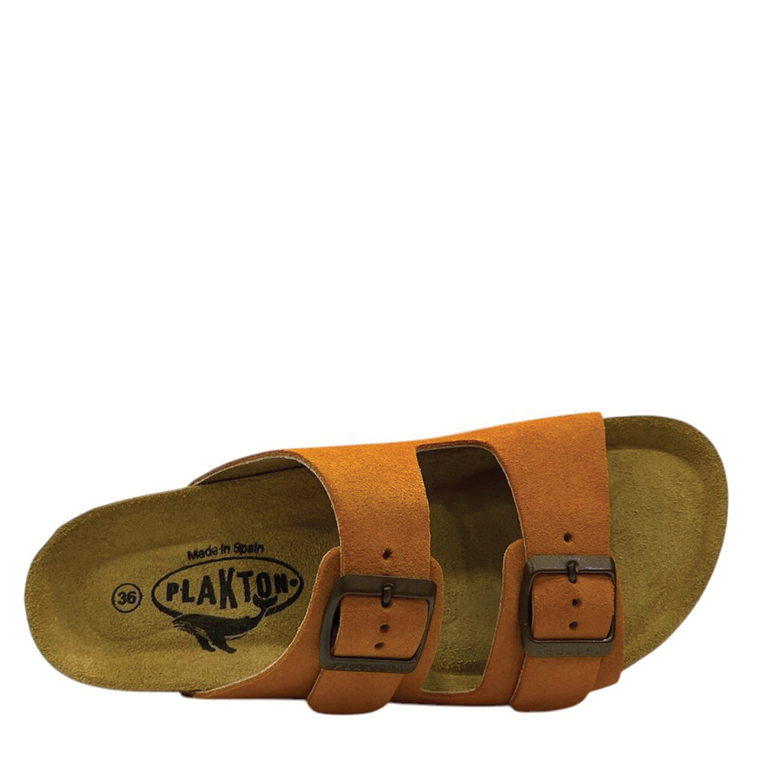 Plakton γυναικείο σανδάλι σε πορτοκαλί χρώμα κατασκευασμένο από δέρμα. Ύψος σόλας 2.5εκ.