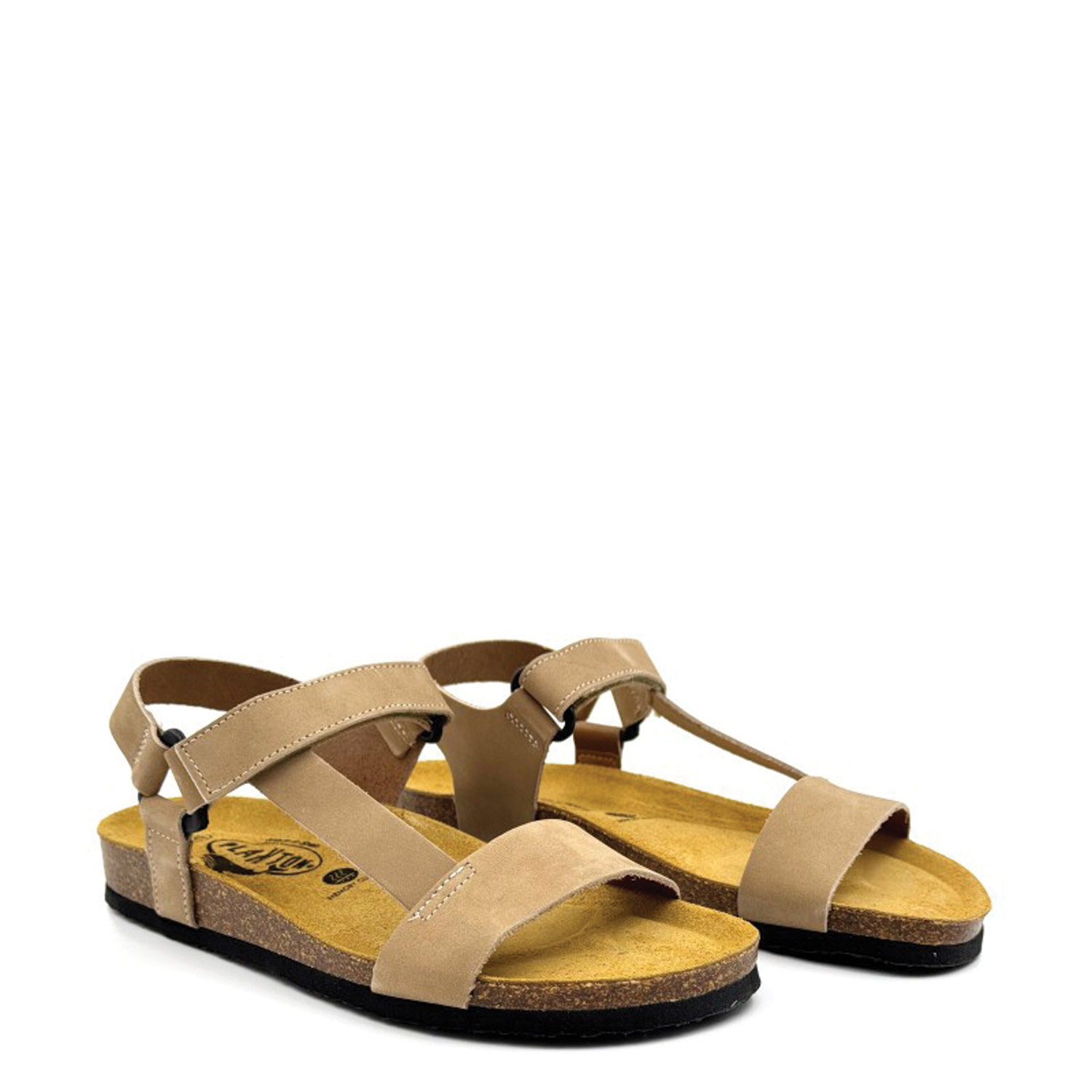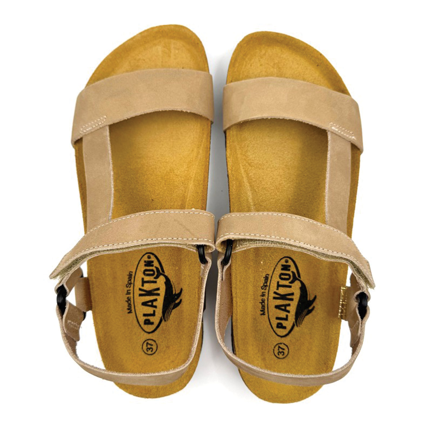 Plakton γυναικείο σανδάλι, σε ταουπέ χρώμα κατασκευασμένο από δέρμα, με δερμάτινο ανατομικό memory foam πατάκι.