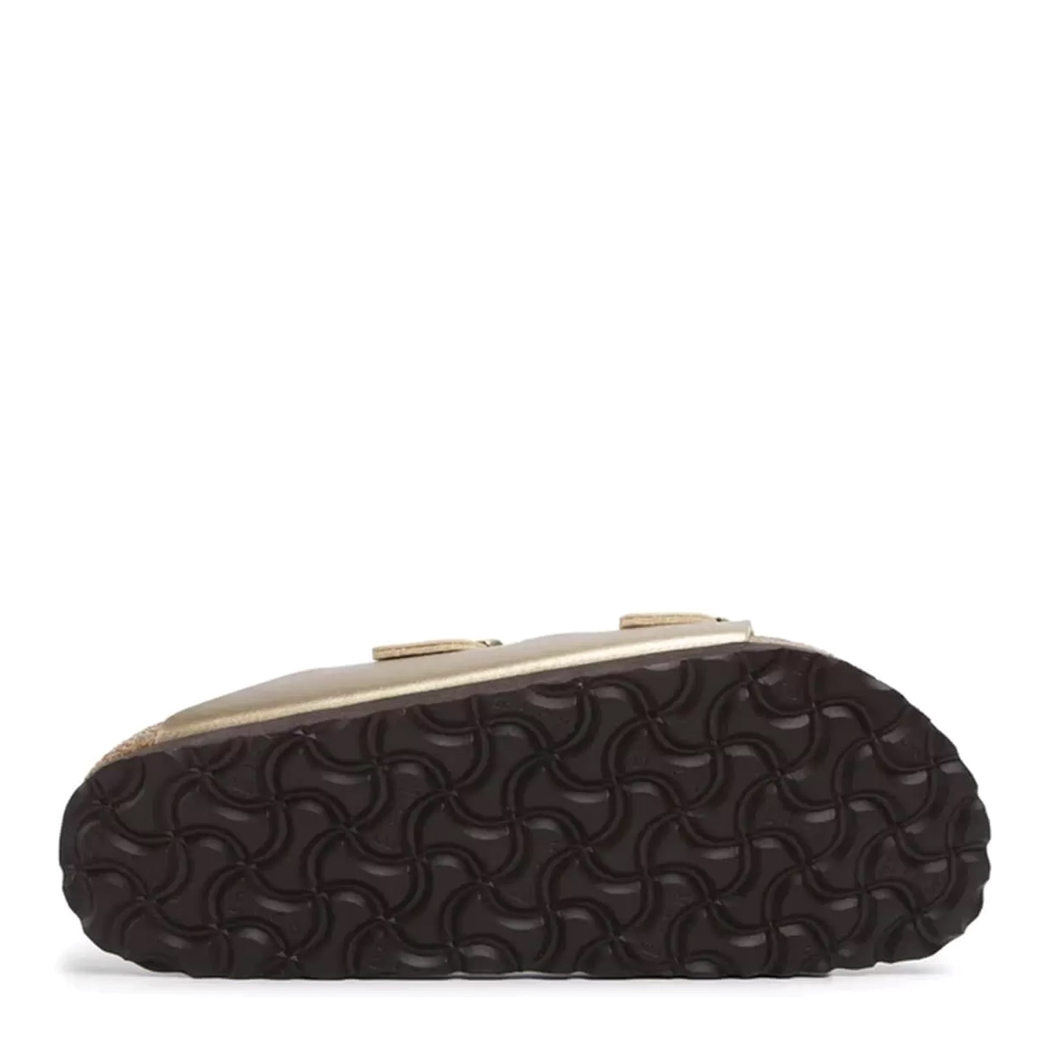 Birkenstock γυναικείο σανδάλι, σε χρυσό χρώμα, κατασκευασμένο από οικολογικό δέρμα, με ανατομικό πάτο. Ύψος σόλας 3εκ.