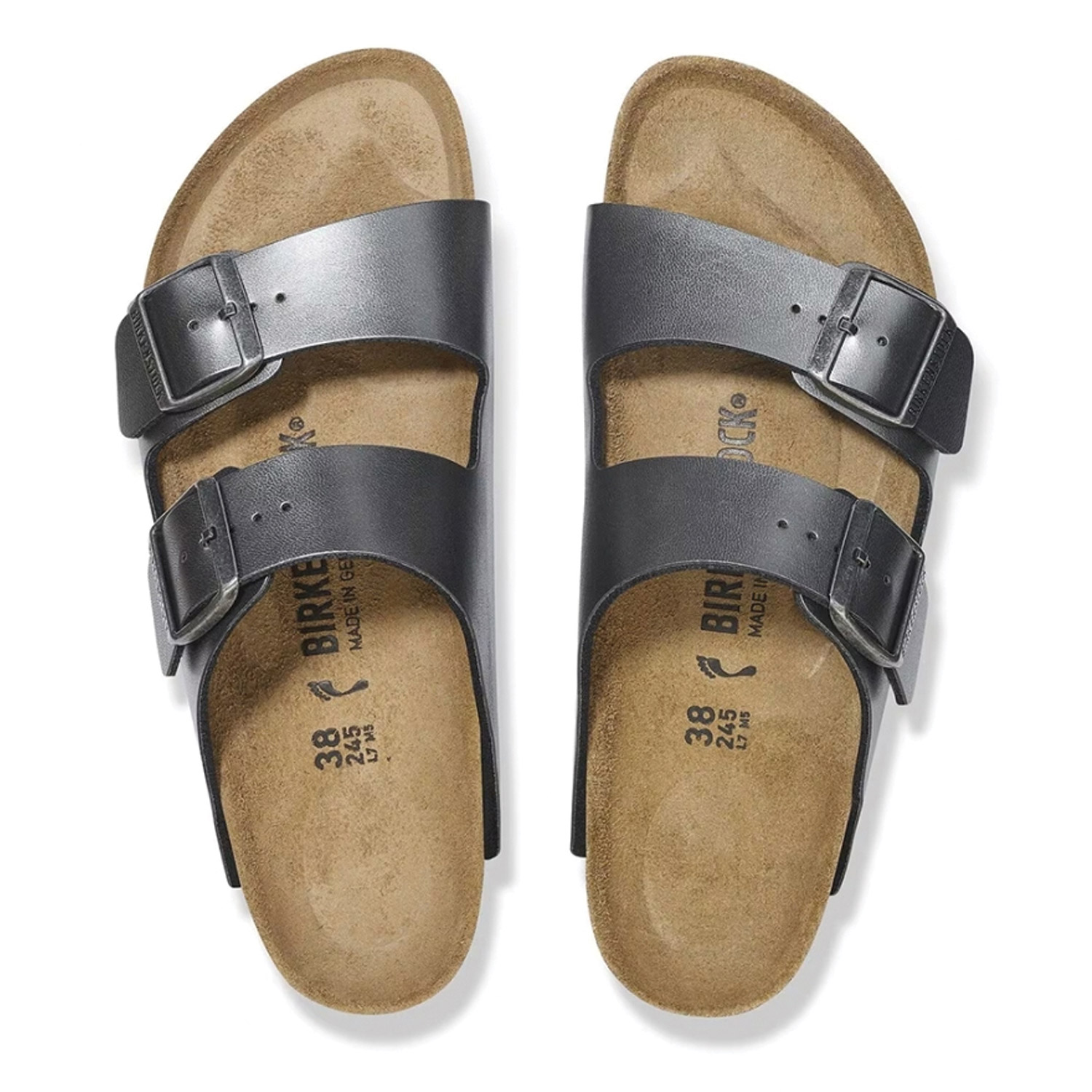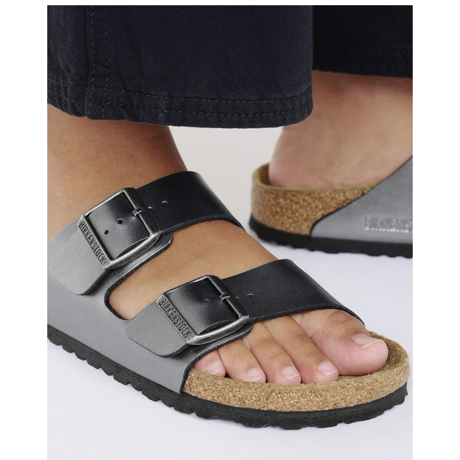 Birkenstock γυναικείο σανδάλι, σε μαύρο χρώμα, κατασκευασμένο από οικολογικό δέρμα, με ανατομικό πάτο. Ύψος σόλας 3εκ.