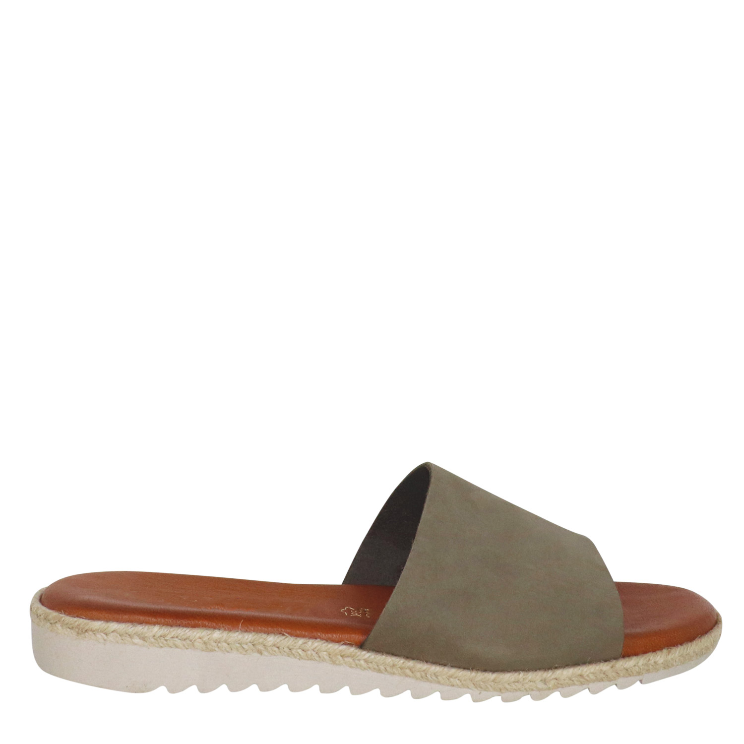 Koniarisshoes γυναικείο σανδάλι, σε χακί χρώμα, κατασκευασμένο από δέρμα, με δερμάτινο πάτο. Ύψος τακουνιού 2εκ.