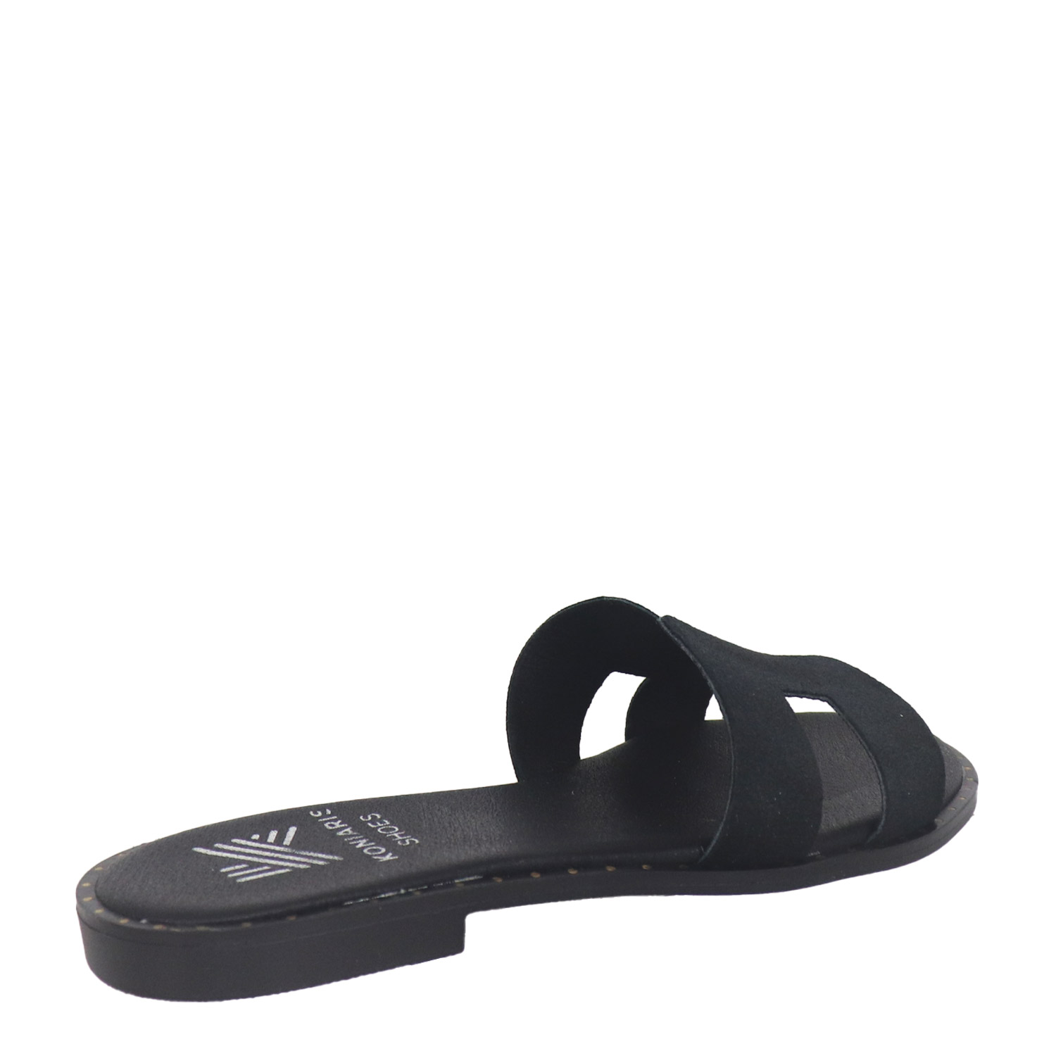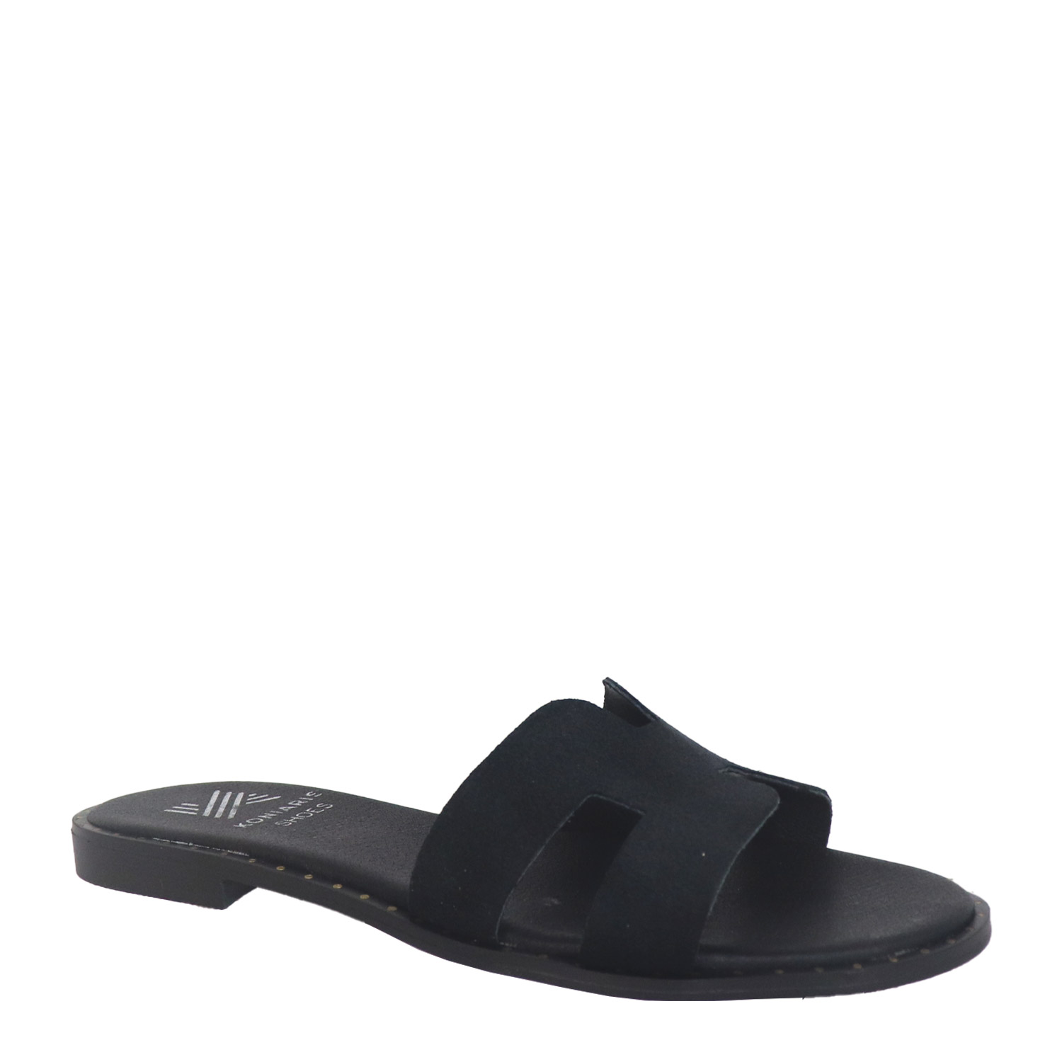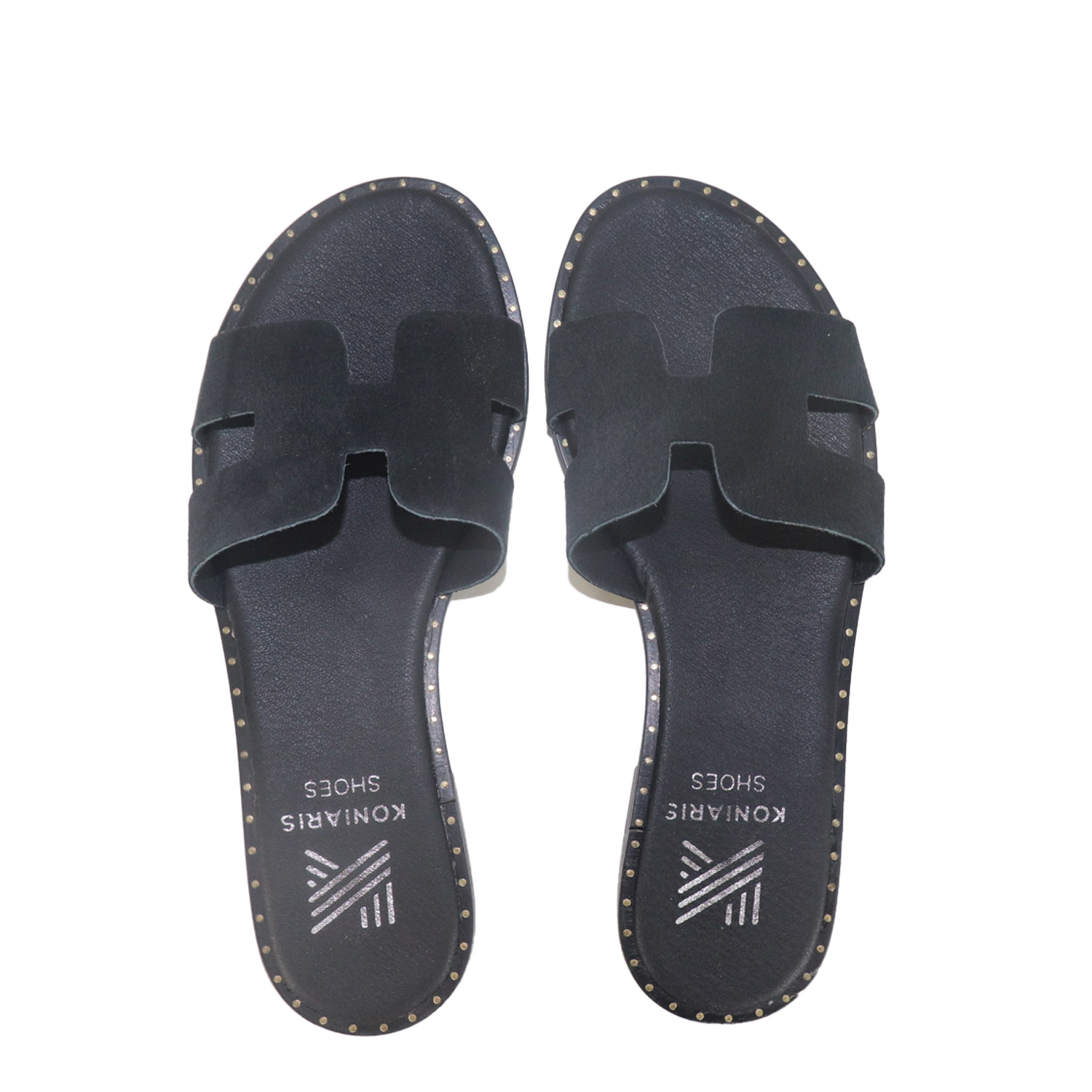Koniarisshoes γυναικείο σανδάλι, σε μαύρο χρώμα, κατασκευασμένο από δέρμα καστόρι, με δερμάτινο πάτο. Ύψος τακουνιού 1.5εκ.
