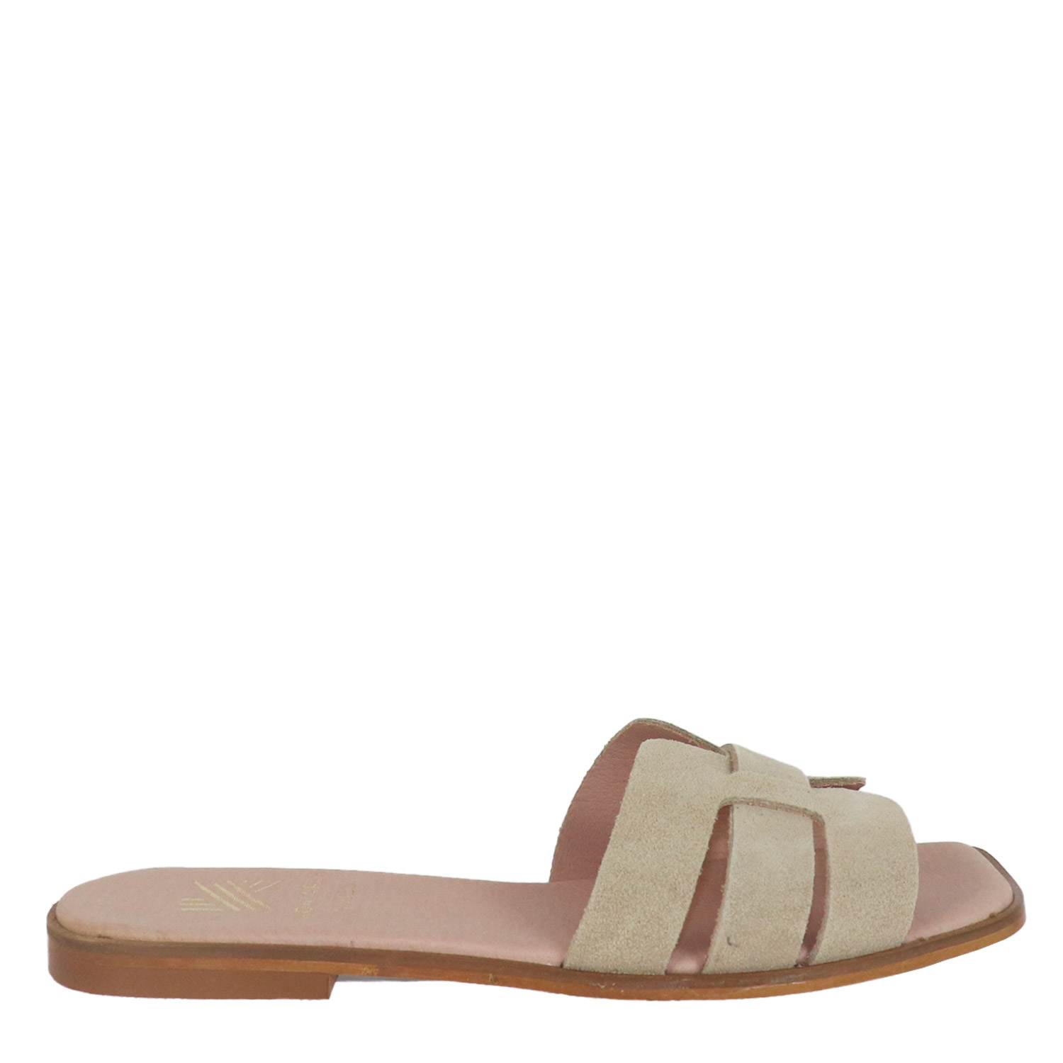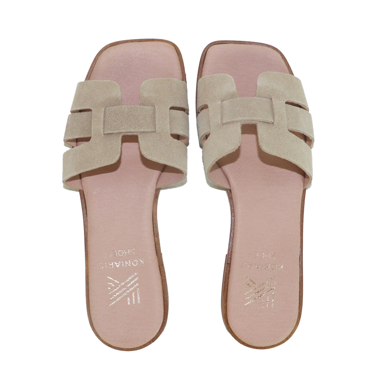 Koniarisshoes γυναικείο σανδάλι, σε μπεζ χρώμα, κατασκευασμένο από δέρμα καστόρι, με δερμάτινο πάτο. Ύψος τακουνιού 1.5εκ.