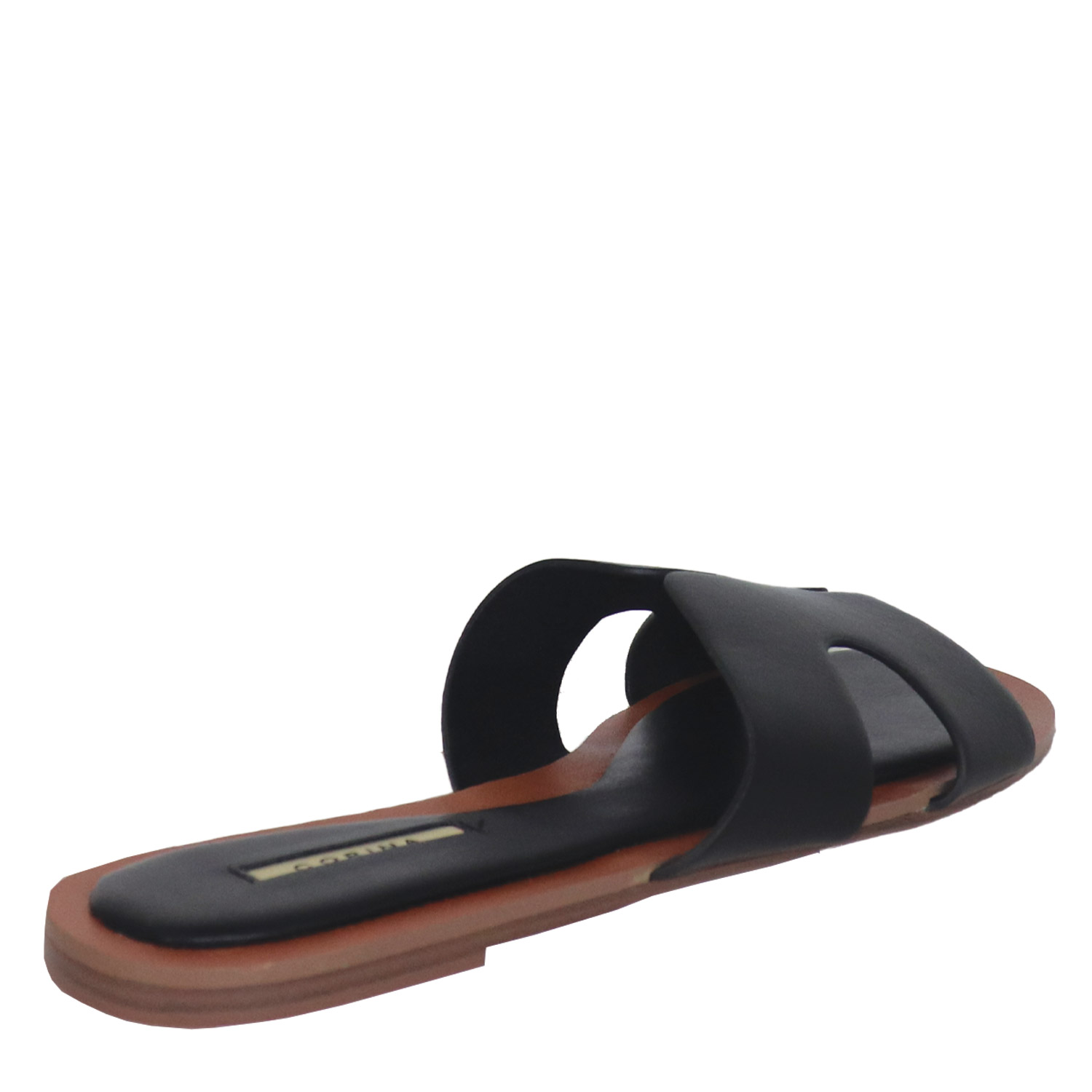 Koniarisshoes γυναικείο σανδάλι σε μαύρο χρώμα κατασκευασμένο από οικολογικό δέρμα. Ύψος τακουνιού 1.5εκ.