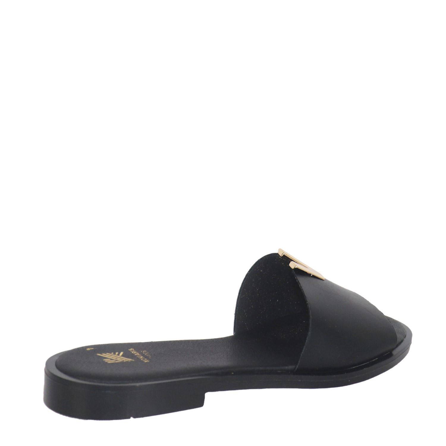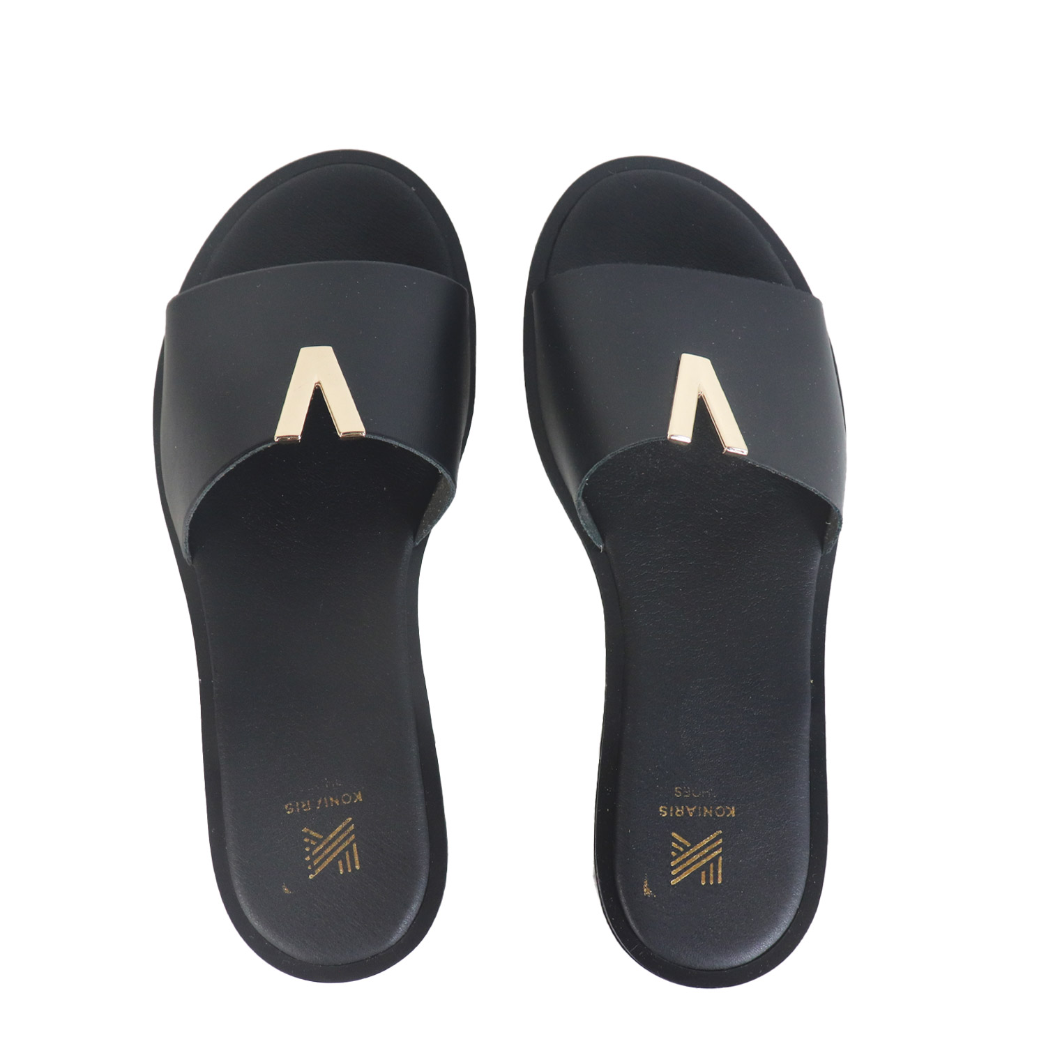 Koniarisshoes γυναικείο σανδάλι, σε μαύρο χρώμα, κατασκευασμένο από δέρμα. Ύψος τακουνιού 1.5εκ.