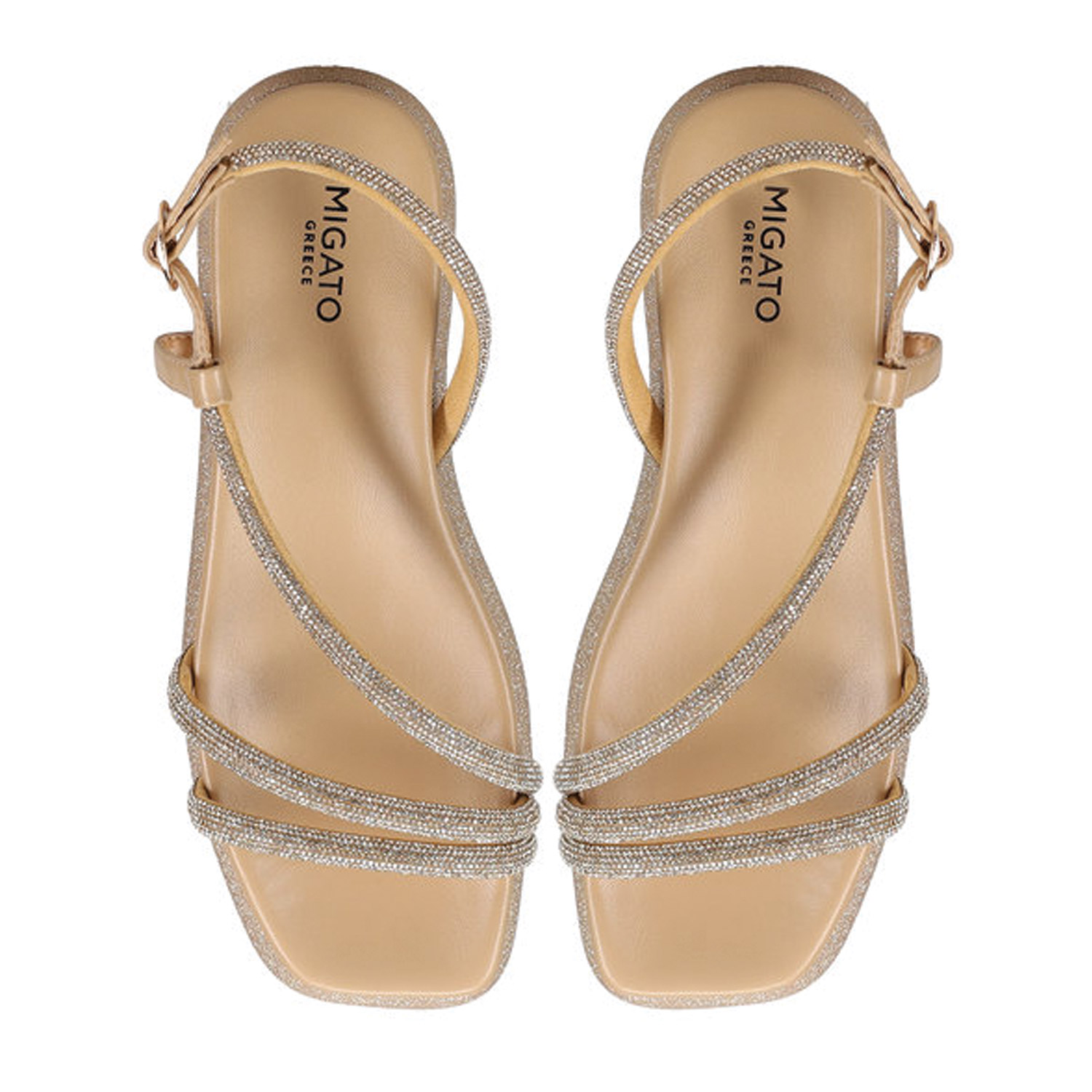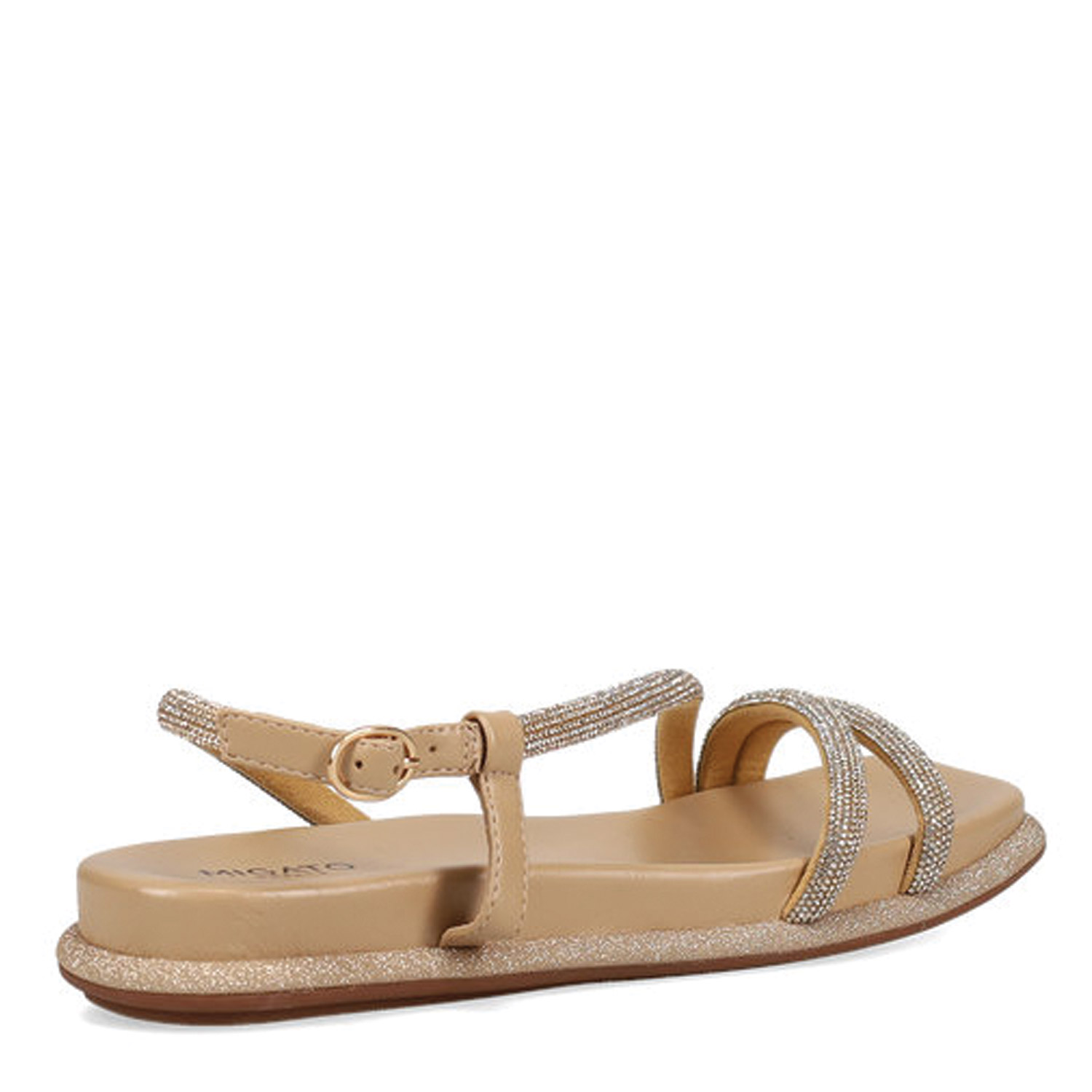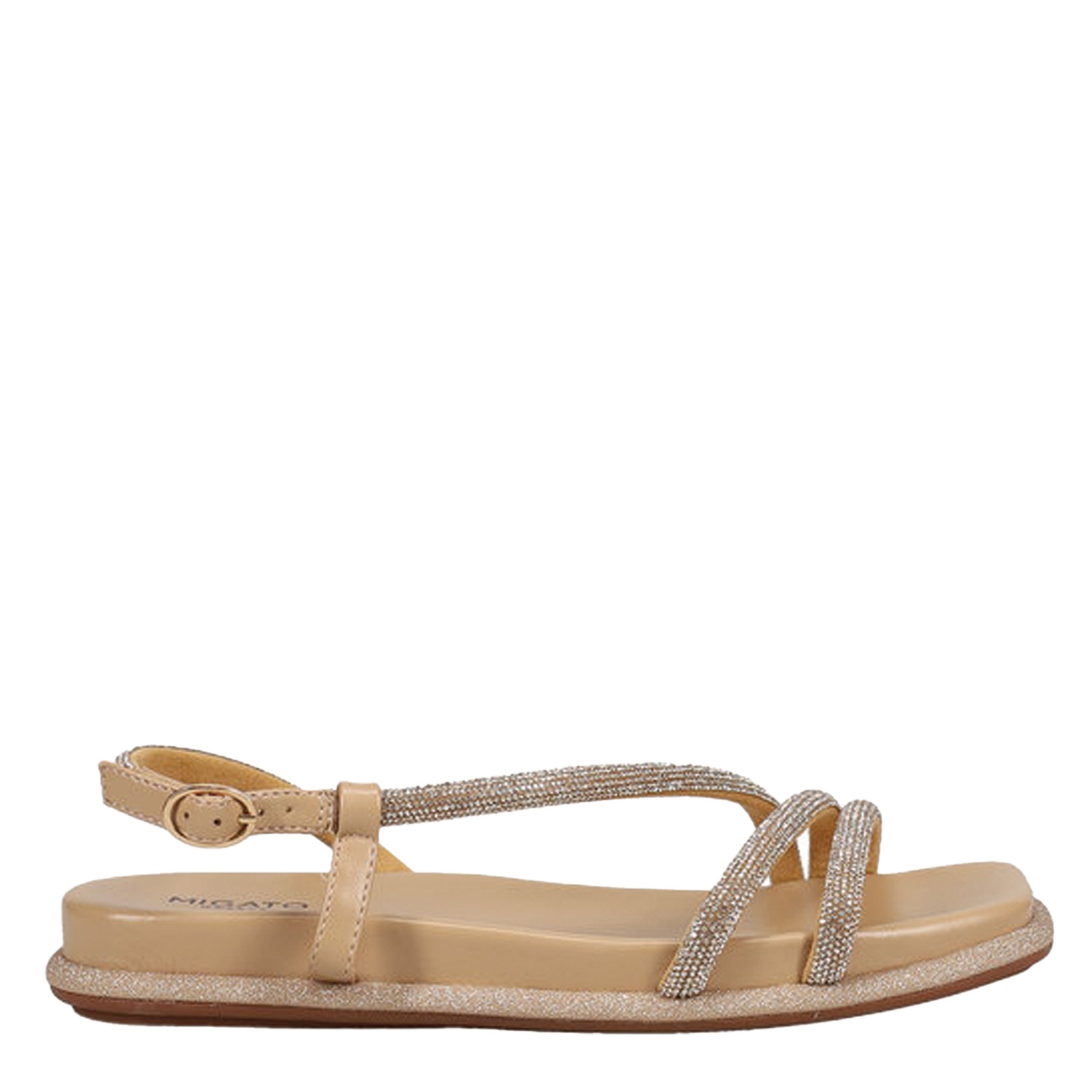 Μπεζ footbed σανδάλι. Διαθέτει λουράκια διακοσμησμένα με στρας. Δένει με ρυθμιζόμενο λουράκι αστραγάλου.
