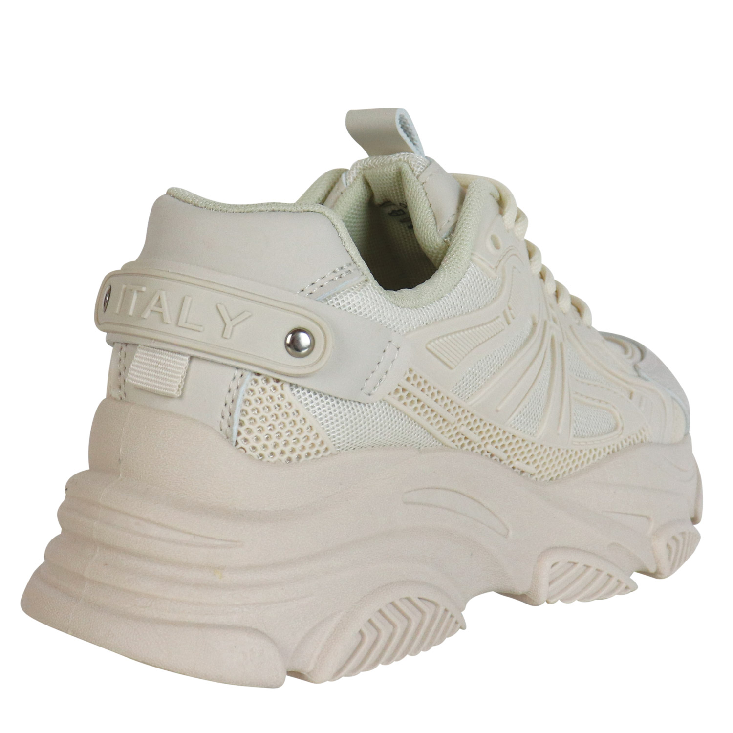 Migato γυναικείο sneaker, σε μπεζ χρώμα, κατασκευασμένο από ύφασμα και οικολογικό δέρμα. Ύψος σόλας 4.5εκ.