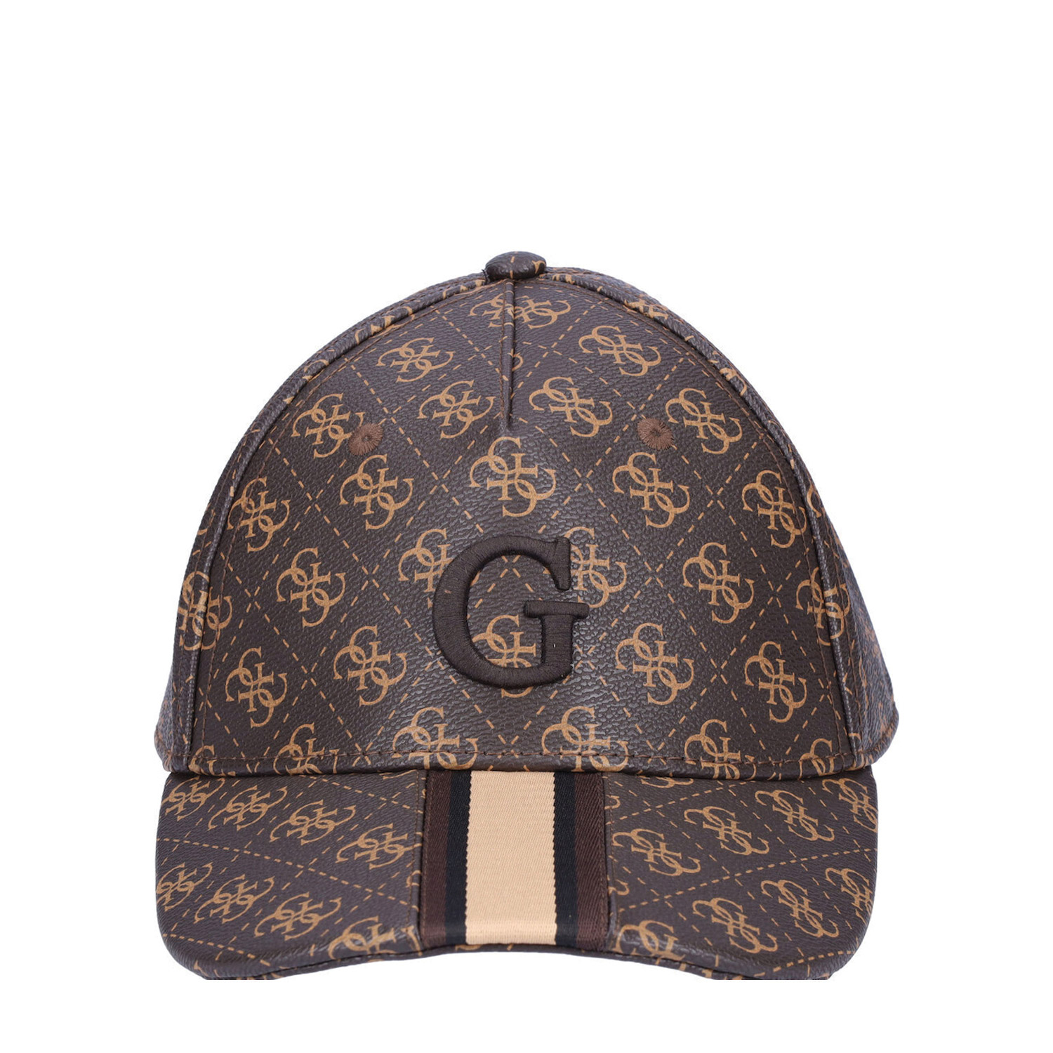 Ανδρικό jockey καπέλο από τον οίκο Guess. Το λογότυπο του οίκου Guess είναι κεντημένο στην μπροστινή πλευρά και επαναλαμβάνεται σε όλη την επιφάνεια του καπέλου.