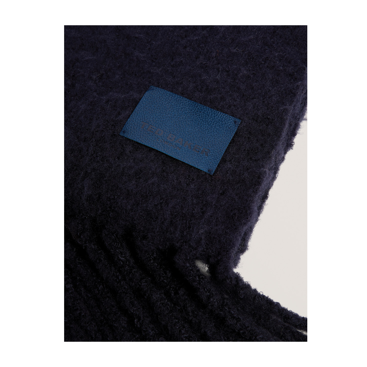 Φτιαγμένο από μείγμα μαλλιού, αυτό το μαύρο κασκόλ έχει μια απαλή μάλλινη αίσθηση που θα σας κρατήσει ζεστές και ζεστή. Φινιρισμένο με ένα μαύρο μπάλωμα από τεχνητό δέρμα στο ένα άκρο με το ανάγλυφο λογότυπο Ted Baker. Το κασκόλ θα είναι βασικό κομμάτι στην γκαρνταρόμπα κάθε γυναίκας, είτε επιλέξετε να το φορέσετε με κομψό είτε με casual ντύσιμο. Κλασικό όσο και άνετο, αυτό το κομψό κασκόλ θα γίνει το αγαπημένο σας κομμάτι όλο τον χειμώνα καθώς ο καιρός κρυώνει.