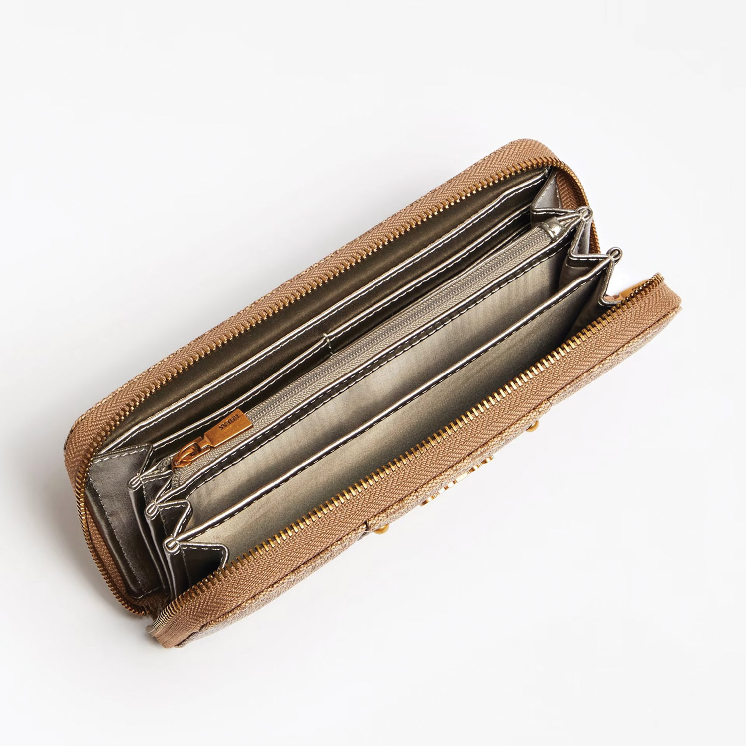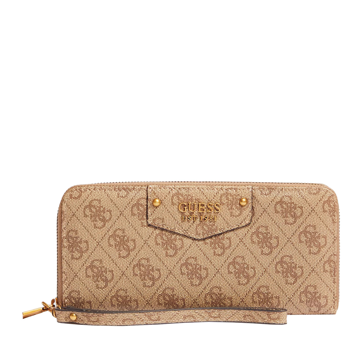 Guess γυναικείο πορτοφόλι σε μπεζ χρώμα κατασκευασμένο από οικολογικό δέρμα. Διαστάσεις 10εκ. ύψος και 21εκ. μήκος.