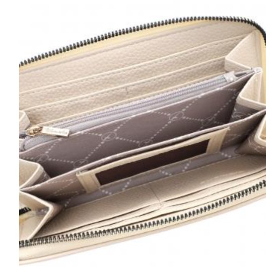 Tamaris γυναικείο πορτοφόλι, σε εκρού χρώμα, κατασκευασμένο από οικολογικό δέρμα. Ύψος 10εκ., Μήκος 20εκ.
