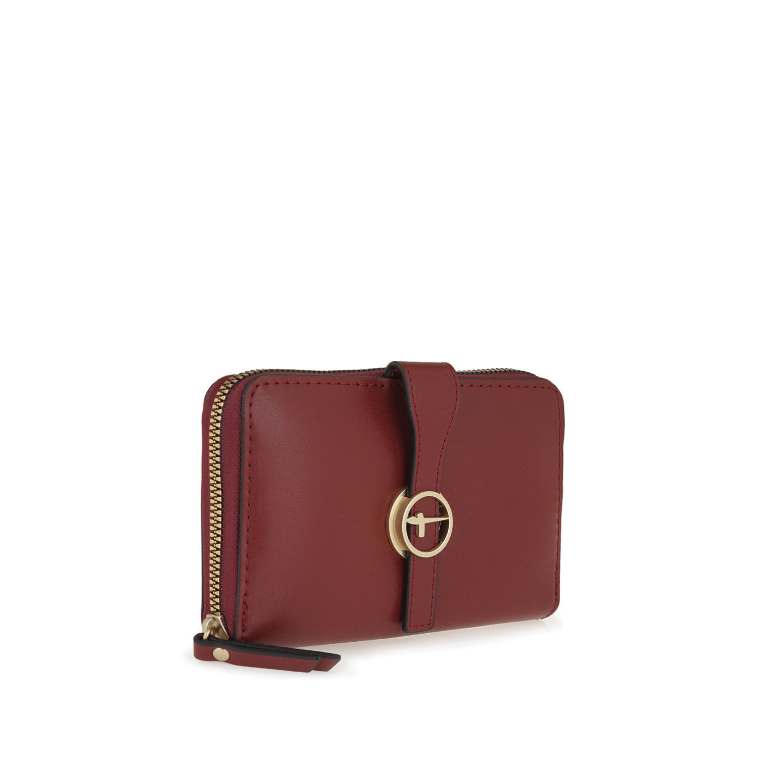 Tamaris γυναικείο πορτοφόλι, σε μπορντώ χρώμα, κατασκευασμένο από οικολογικό δέρμα. Ύψος 10εκ., Μήκος 16εκ.