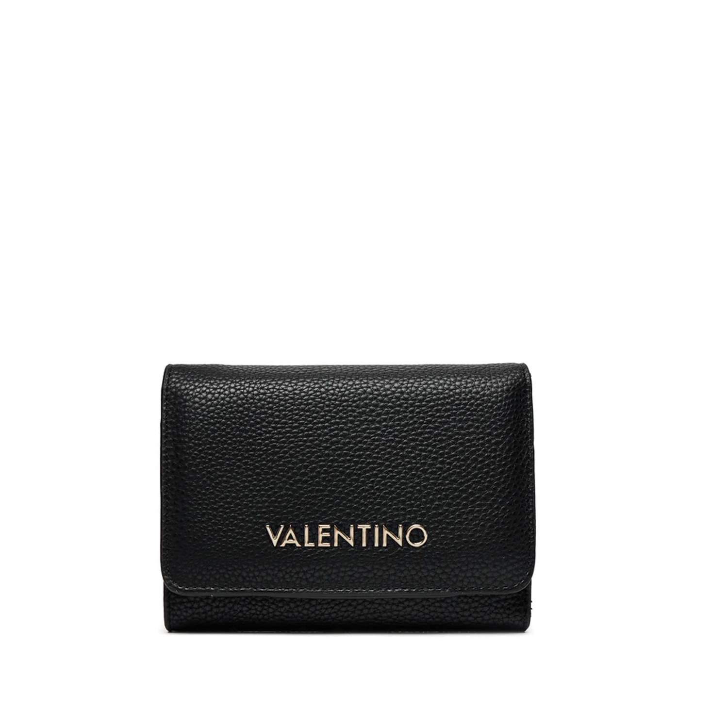 Valentino γυναικείο πορτοφόλι, σε μαύρο χρώμα, κατασκευασμένο από οικολογικό δέρμα. Ύψος 10εκ., Μήκος 15εκ.