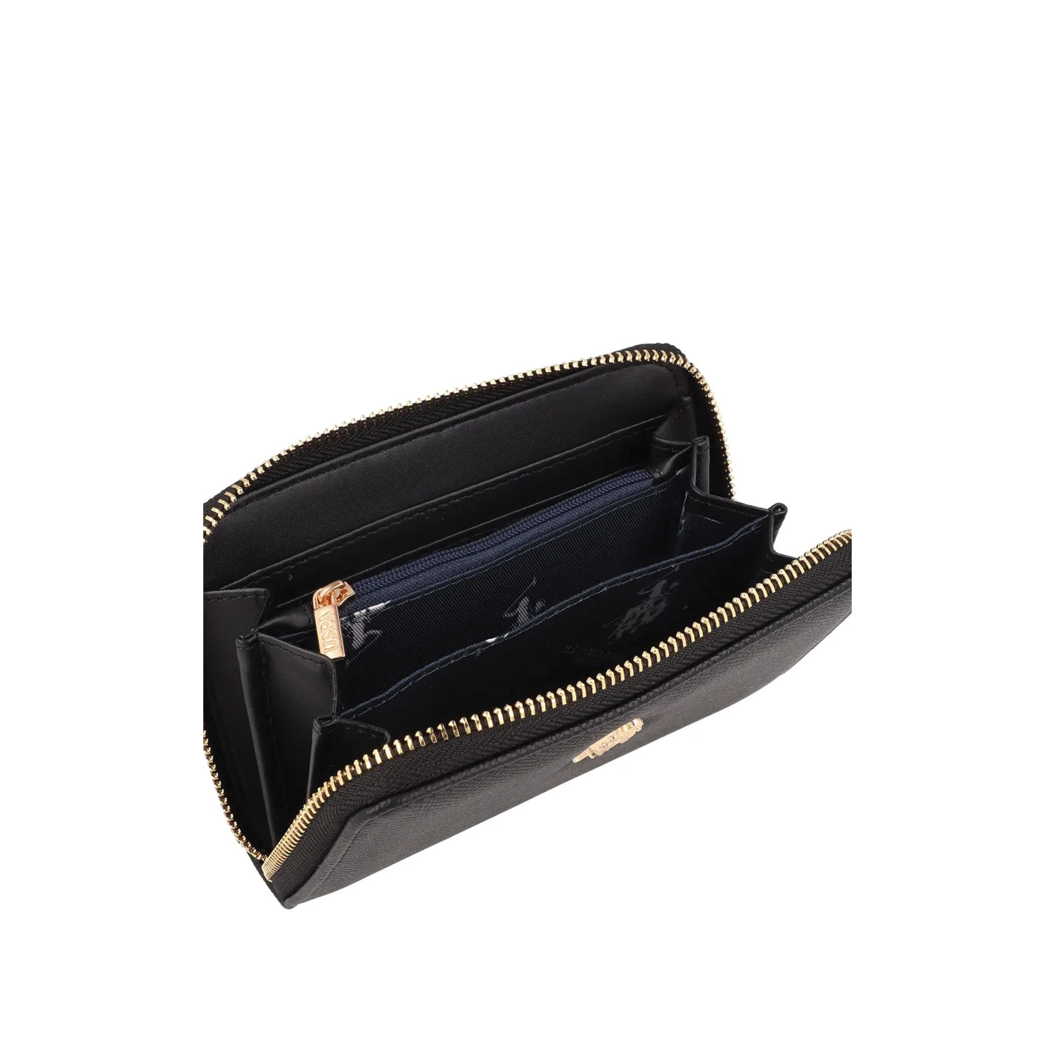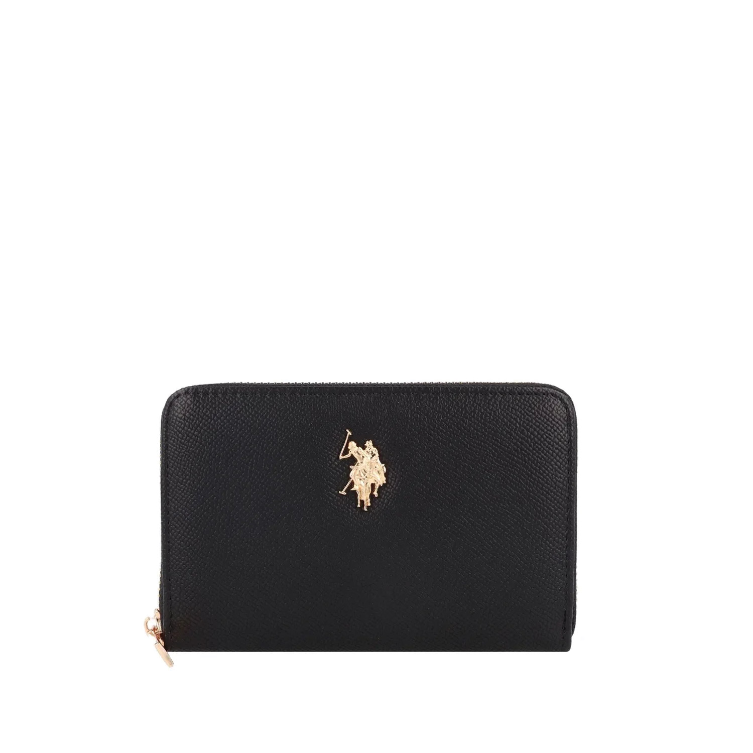 U.S. Polo ASSN γυναικείο πορτοφόλι, σε μαύρο χρώμα, κατασκευασμένο από οικολογικό δέρμα. Ύψος 10εκ., Μήκος 13εκ.