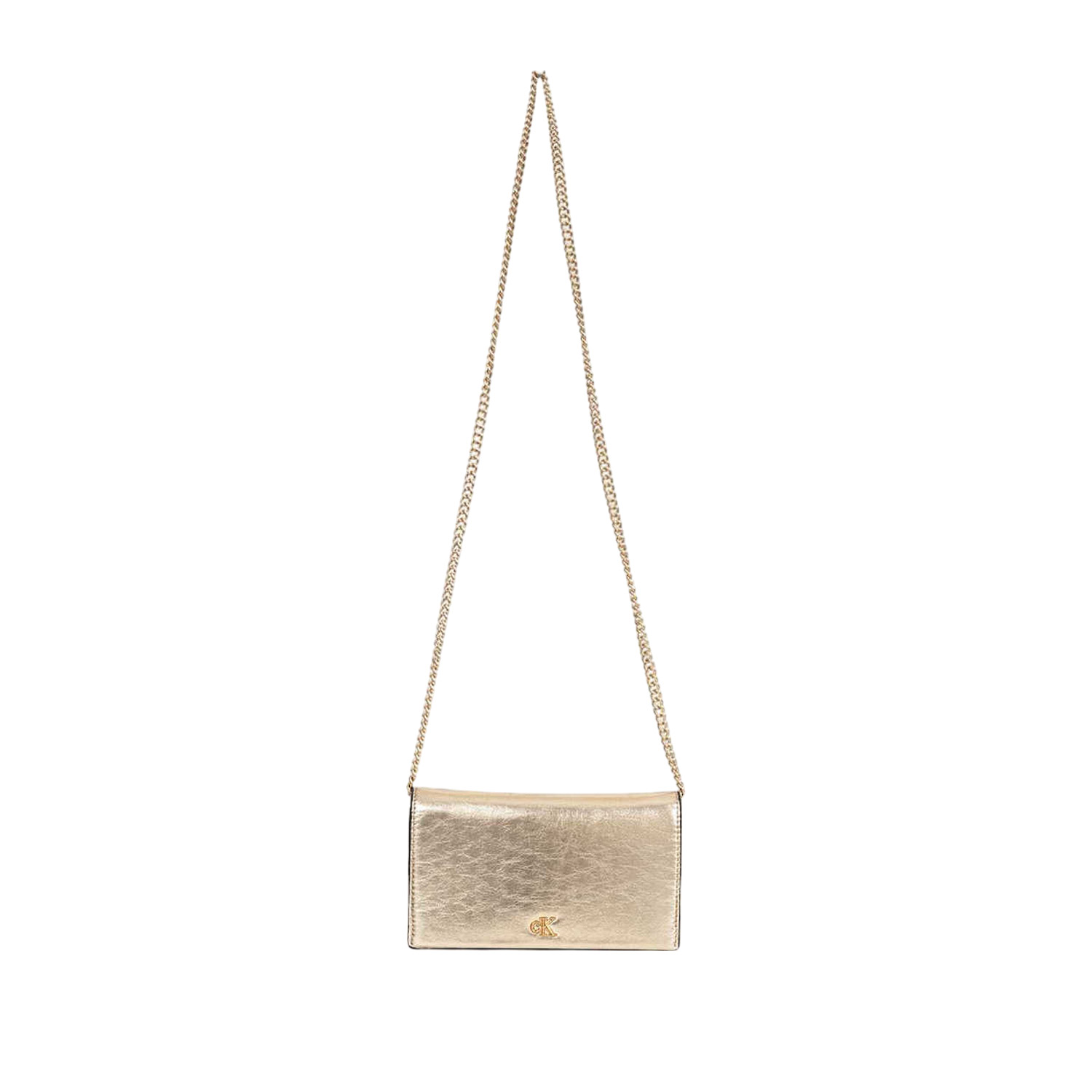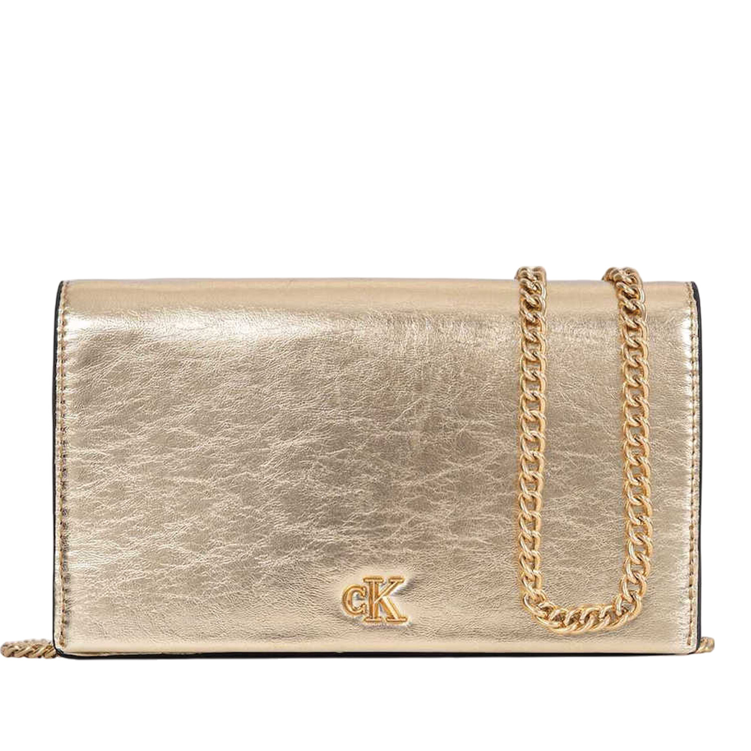 Calvin Klein γυναικείο πορτοφόλι, σε χρυσό χρώμα, κατασκευασμένο από λουστρίνι. Ύψος 15εκ., Μήκος 20εκ.