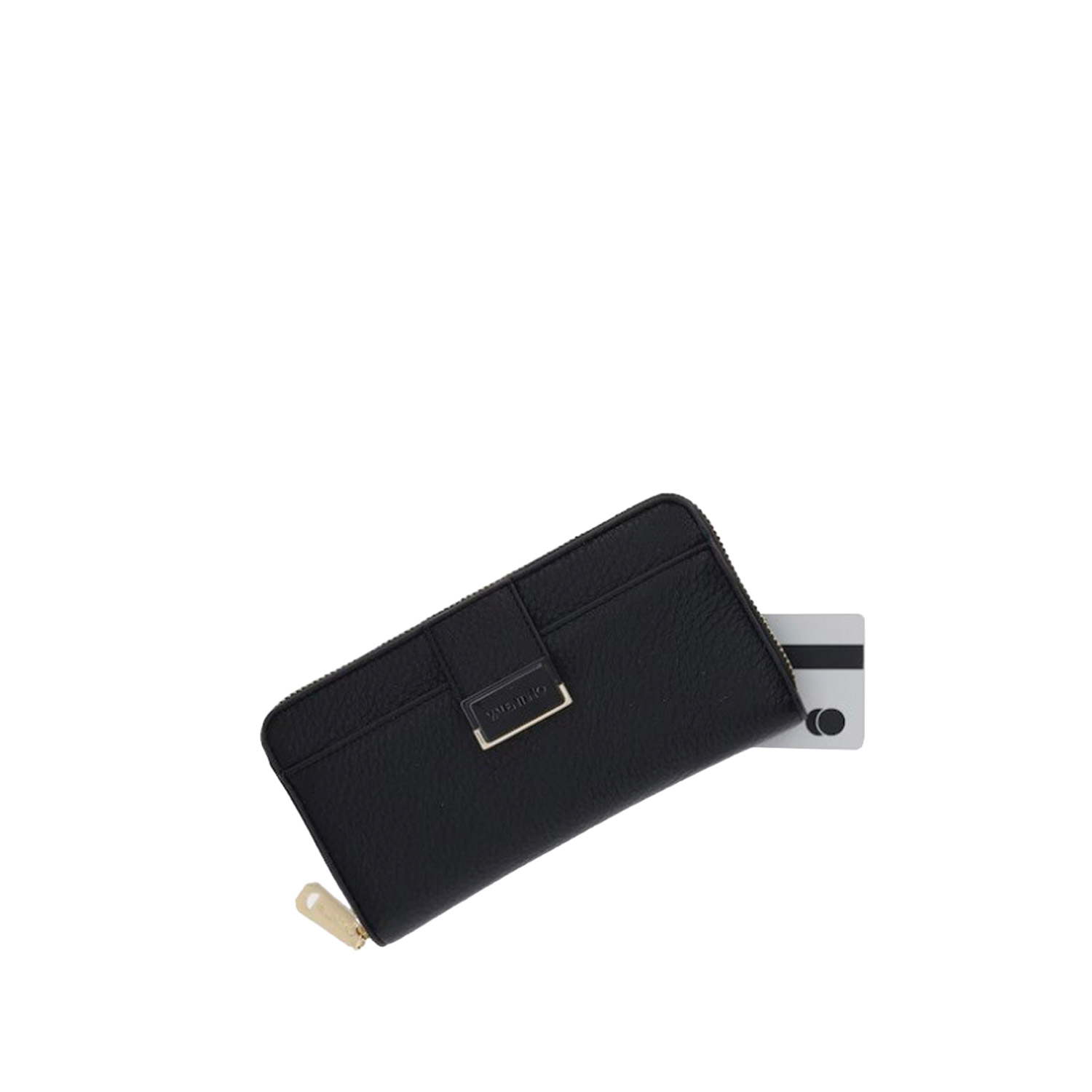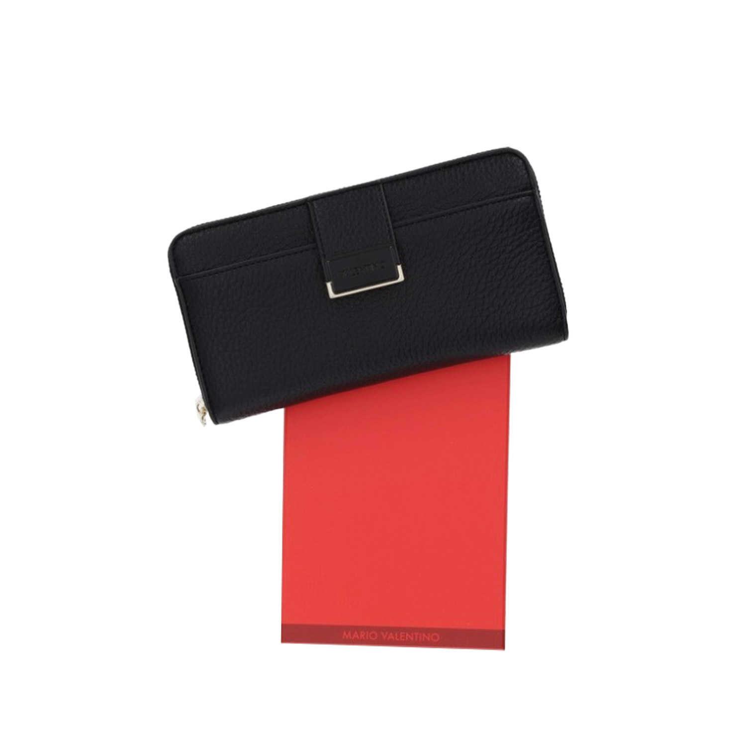 Valentino γυναικείο πορτοφόλι, σε μαύρο χρώμα, κατασκευασμένο από οικολογικό δέρμα. Ύψος 10.5εκ., Μήκος 19εκ.