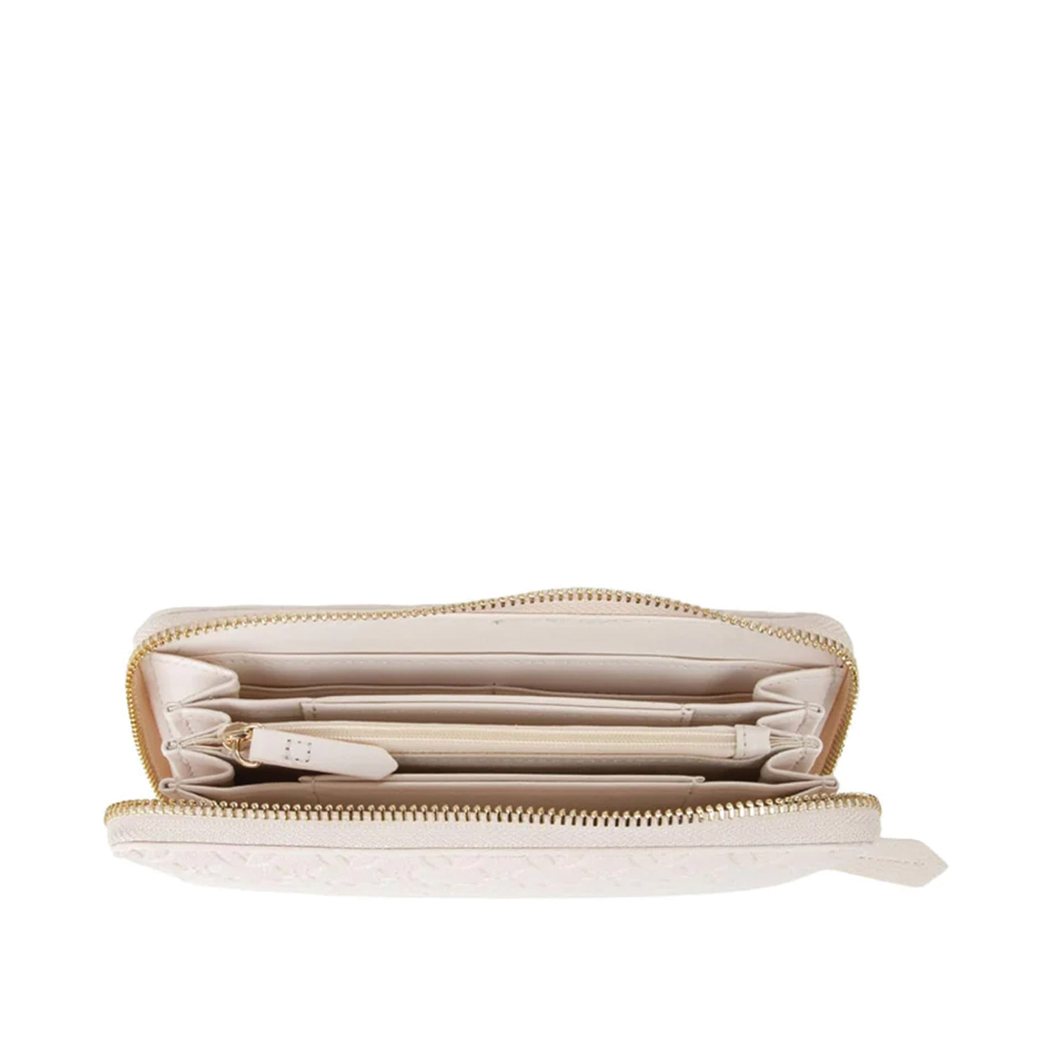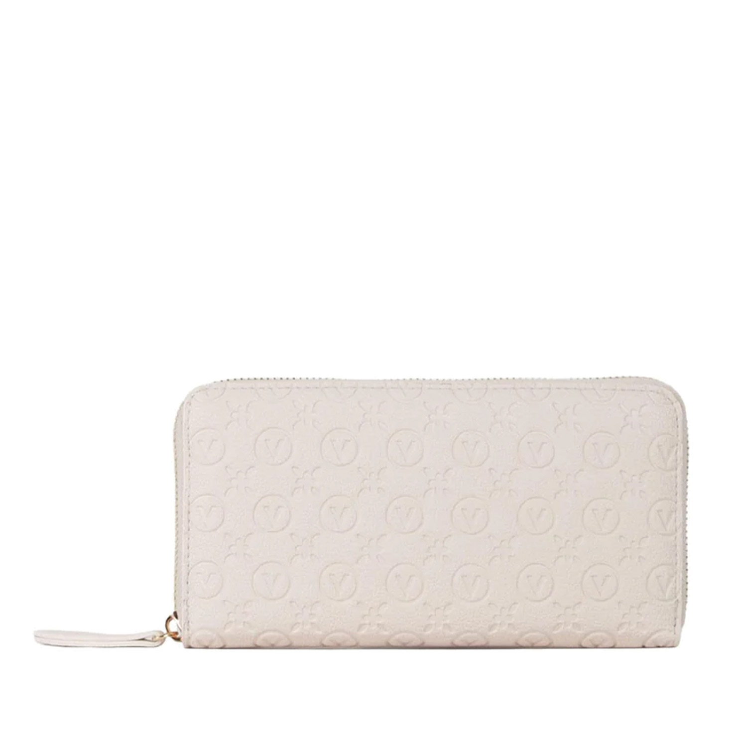 Valentino γυναικείο πορτοφόλι, σε εκρού χρώμα, κατασκευασμένο από οικολογικό δέρμα. Ύψος 10.5εκ., Μήκος 19εκ.