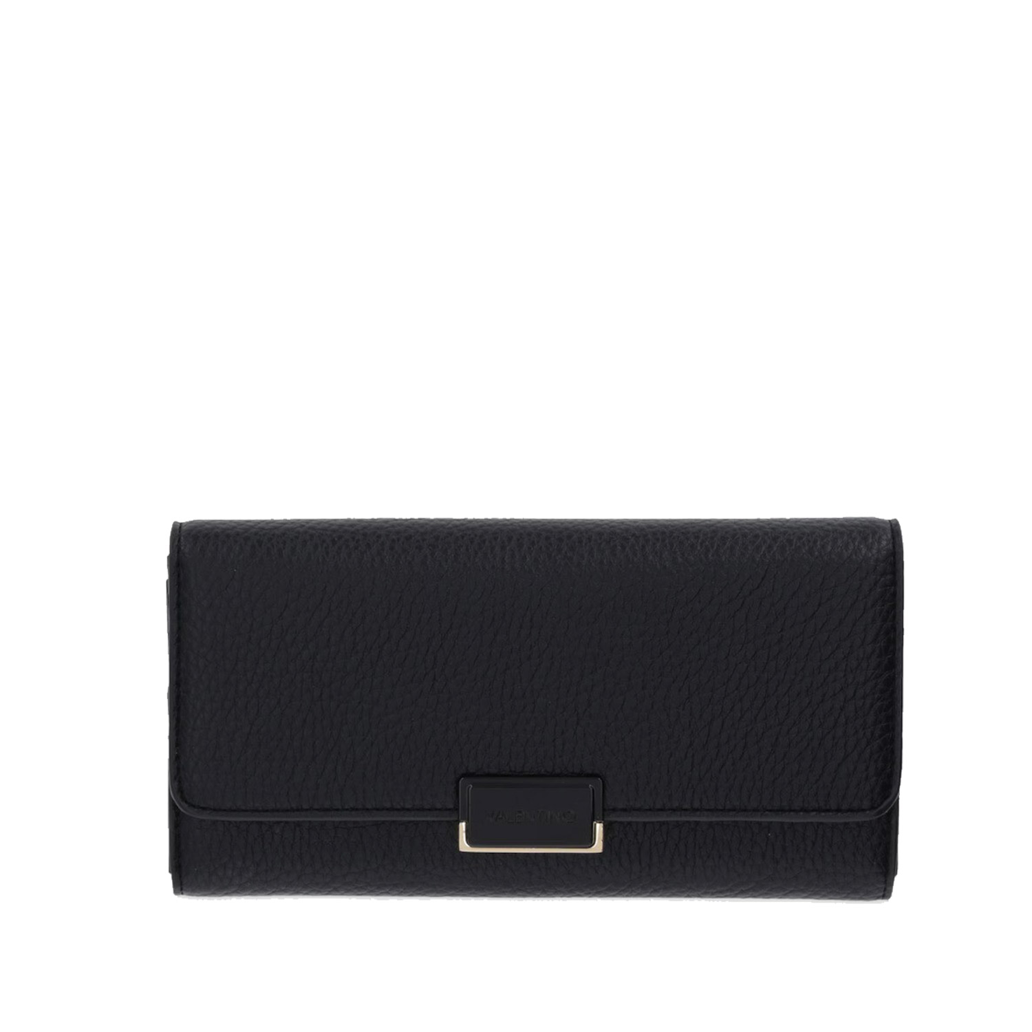 Valentino γυναικείο πορτοφόλι, σε μαύρο χρώμα, κατασκευασμένο από οικολογικό δέρμα. Ύψος 11.5εκ., Μήκος 20εκ.