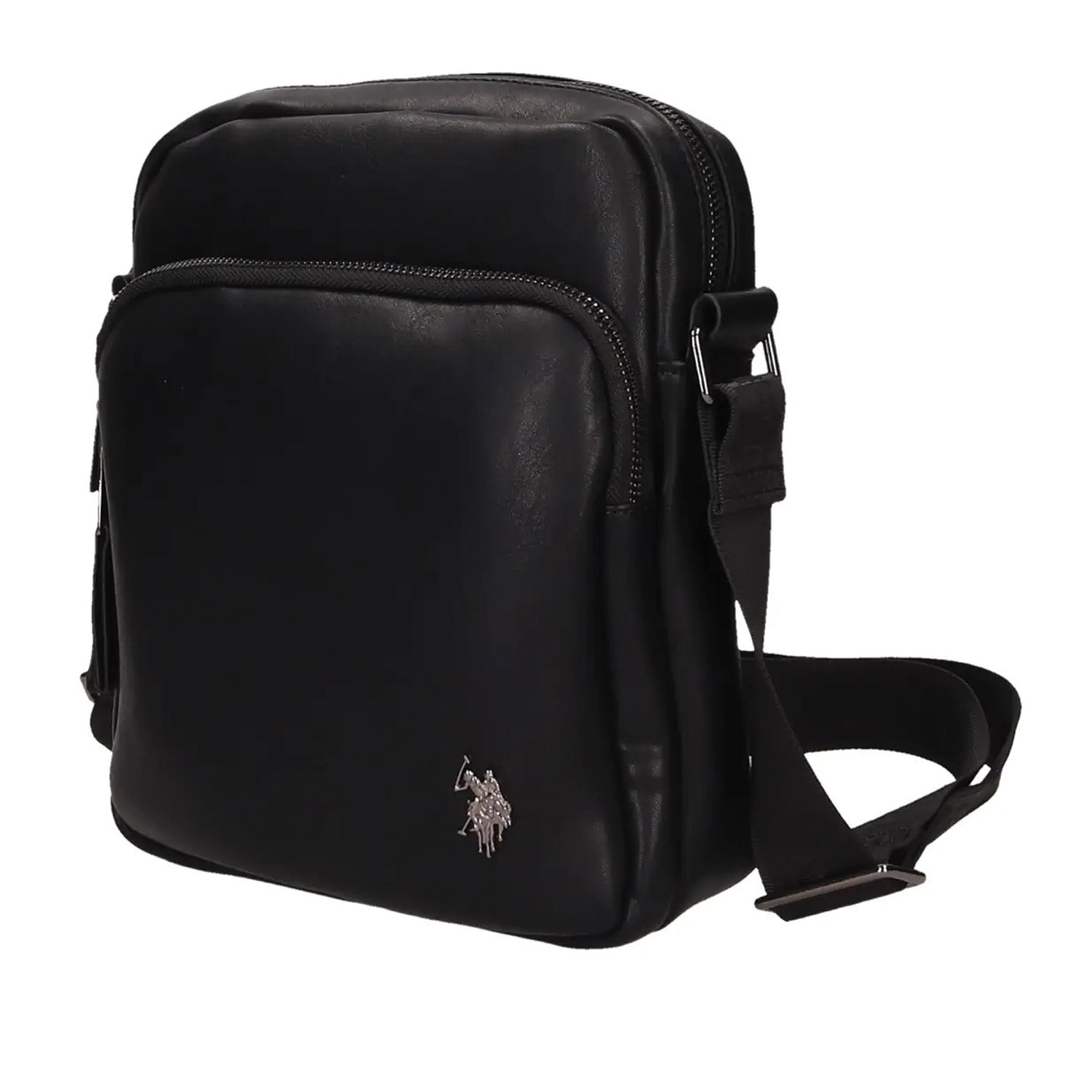 U.S. Polo ASSN. ανδρική τσάντα χιαστή, σε μαύρο χρώμα, κατασκευασμένη από οικολογικό δέρμα.