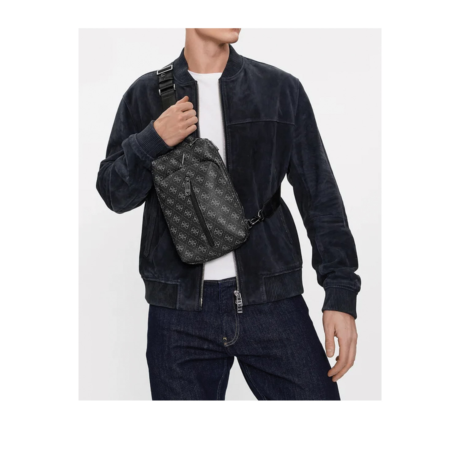 Guess ανδρική τσάντα χιαστή, σε μαύρο χρώμα, κατασκευασμένη από οικολογικό δέρμα.