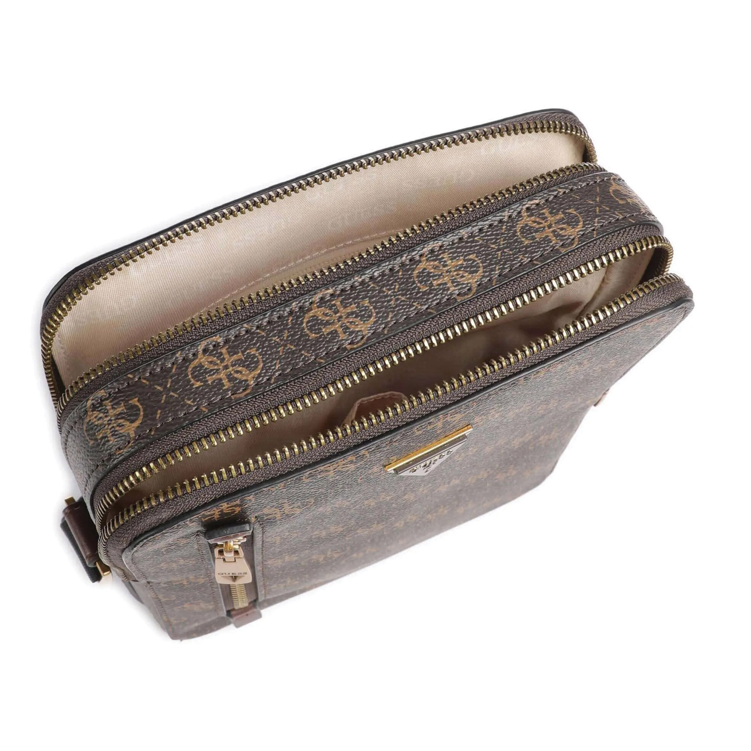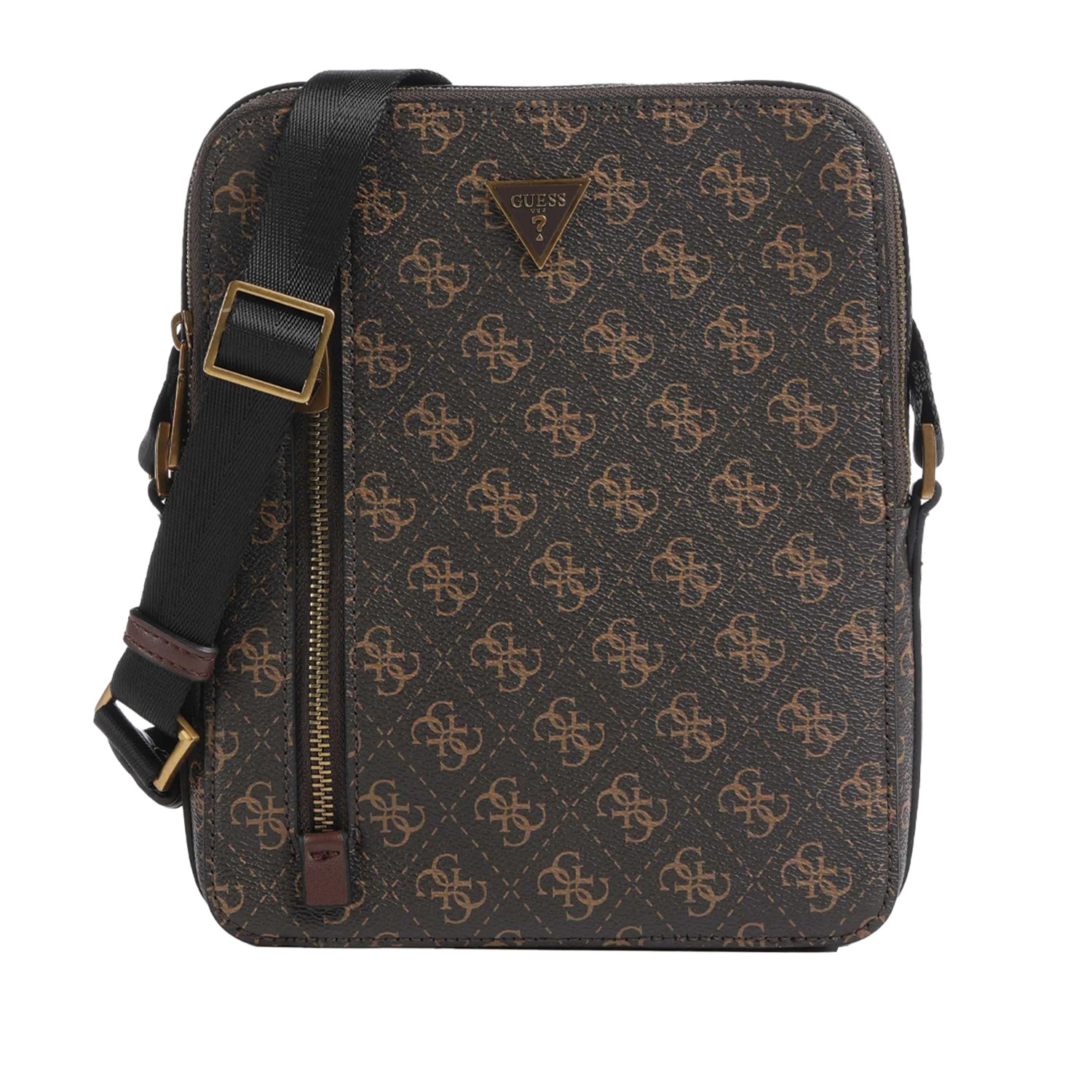 Guess ανδρική τσάντα χιαστή, σε καφέ χρώμα, κατασκευασμένη από οικολογικό δέρμα. Ύψος 22εκ., Μήκος 18εκ.