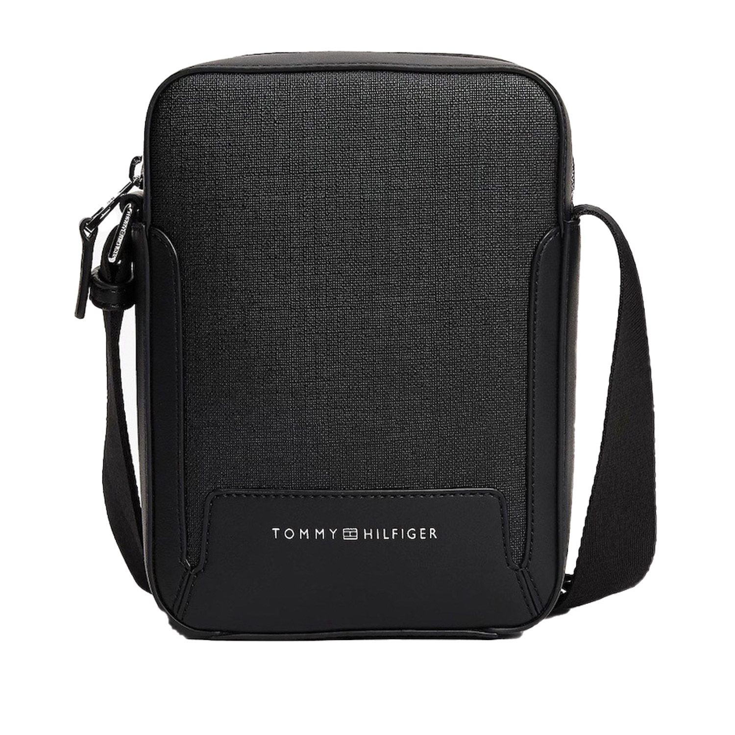 Tommy Hilfiger ανδρική τσάντα χιαστή, σε μαύρο χρώμα, κατασκευασμένη από οικολογικό δέρμα. Ύψος 20εκ., Μήκος 15εκ.