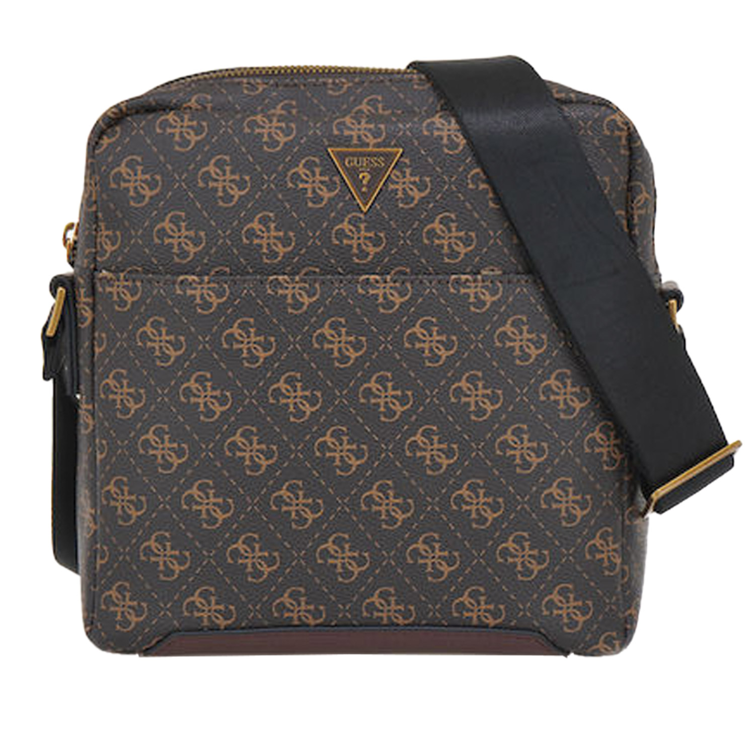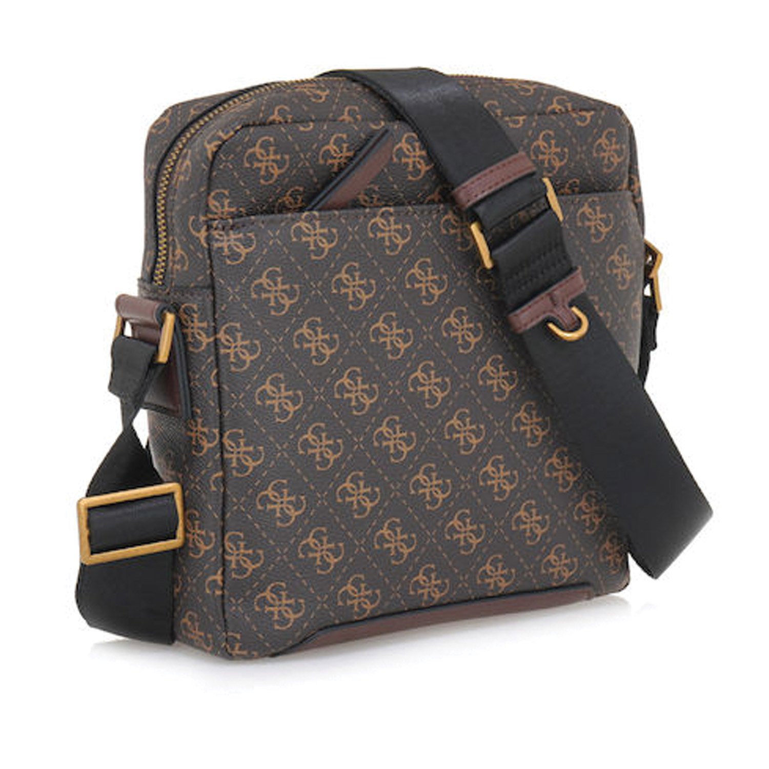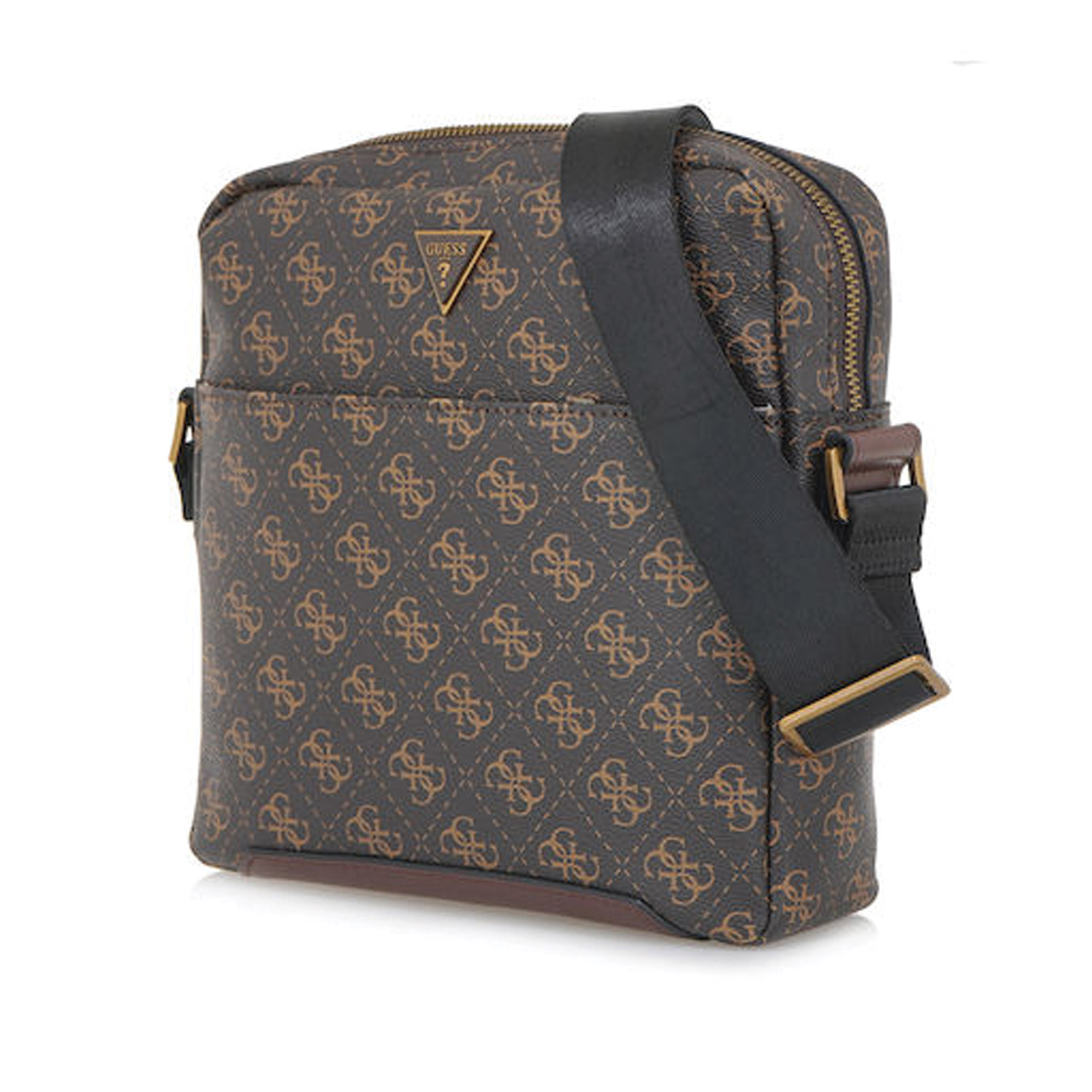 Guess ανδρική τσάντα χιαστή, σε καφέ χρώμα, κατασκευασμένη από οικολογικό δέρμα. Ύψος 23.5εκ., Μήκος 22εκ.