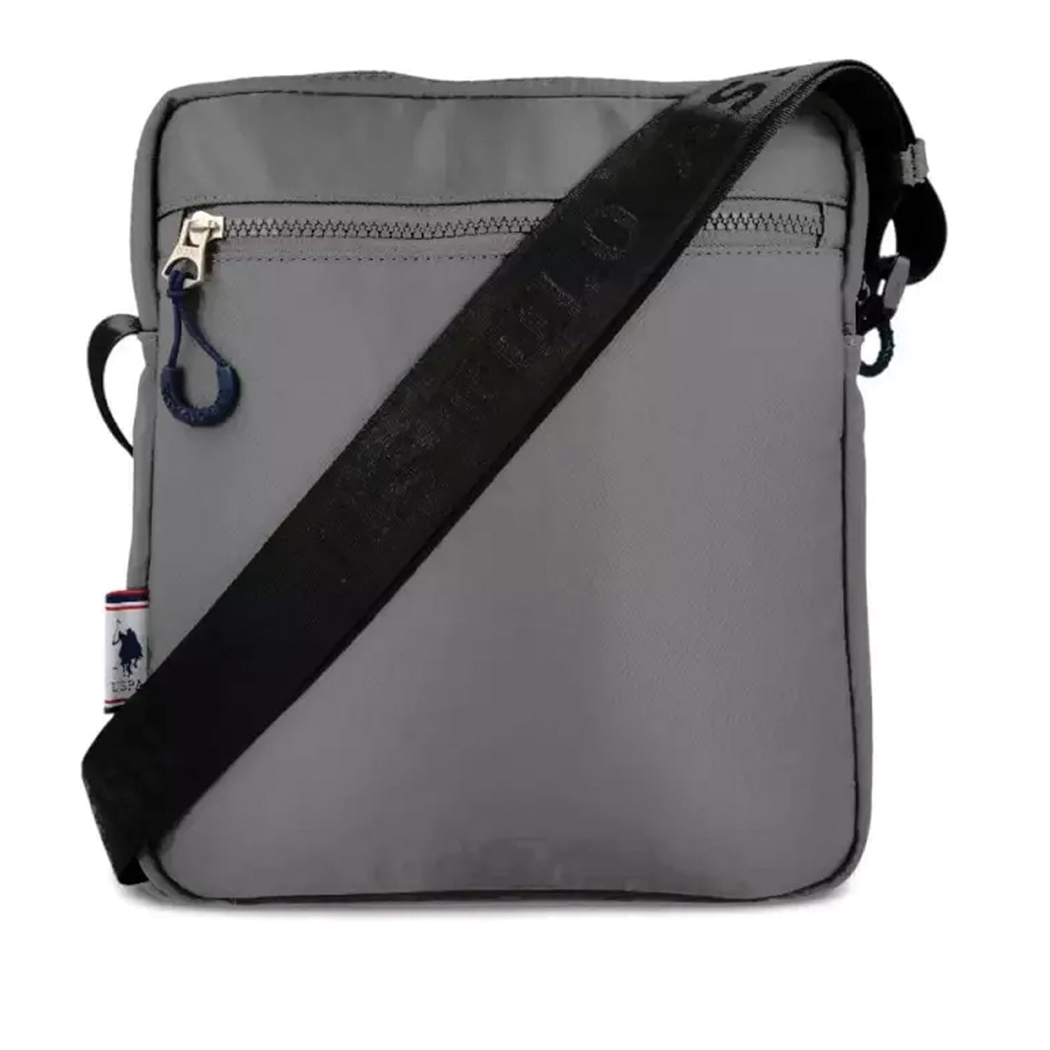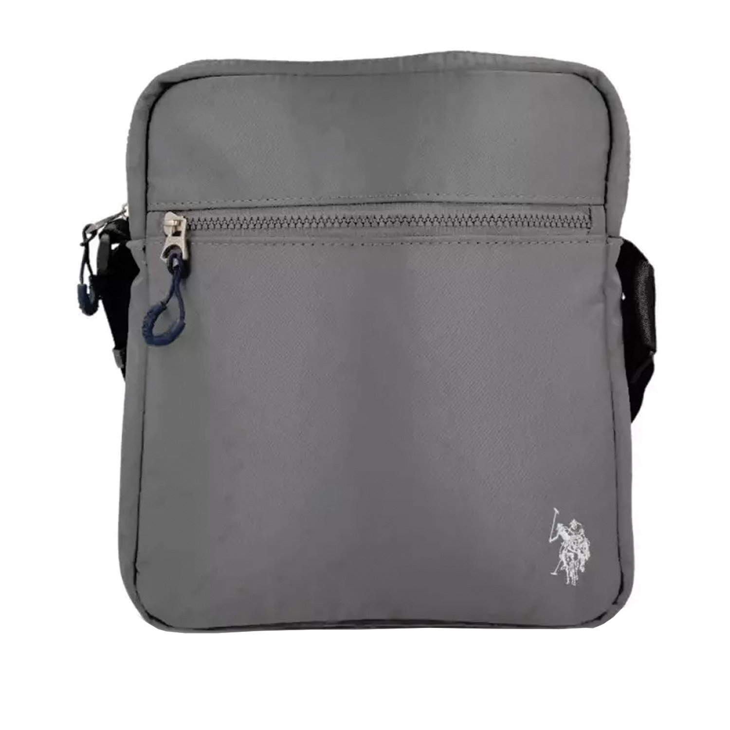 U.S. Polo ASSN ανδρική τσάντα χιαστή, σε γκρι χρώμα, κατασκευασμένη από ύφασμα. Ύψος 29εκ., Μήκος 26εκ.