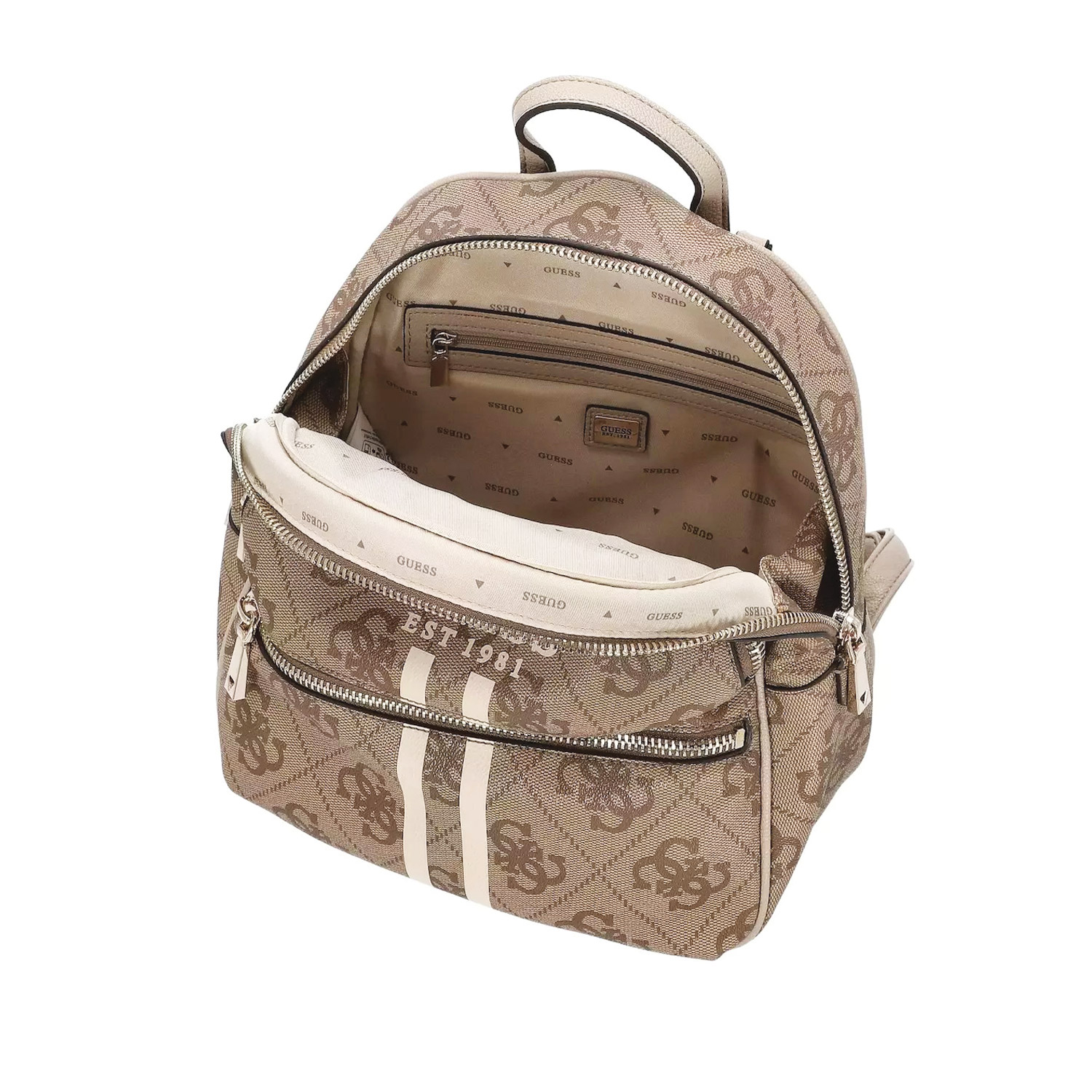 Guess γυναικεία τσάντα πλάτης, σε μπεζ χρώμα, κατασκευασμένη από οικολογικό δέρμα. Ύψος 34εκ., Μήκος 28εκ.