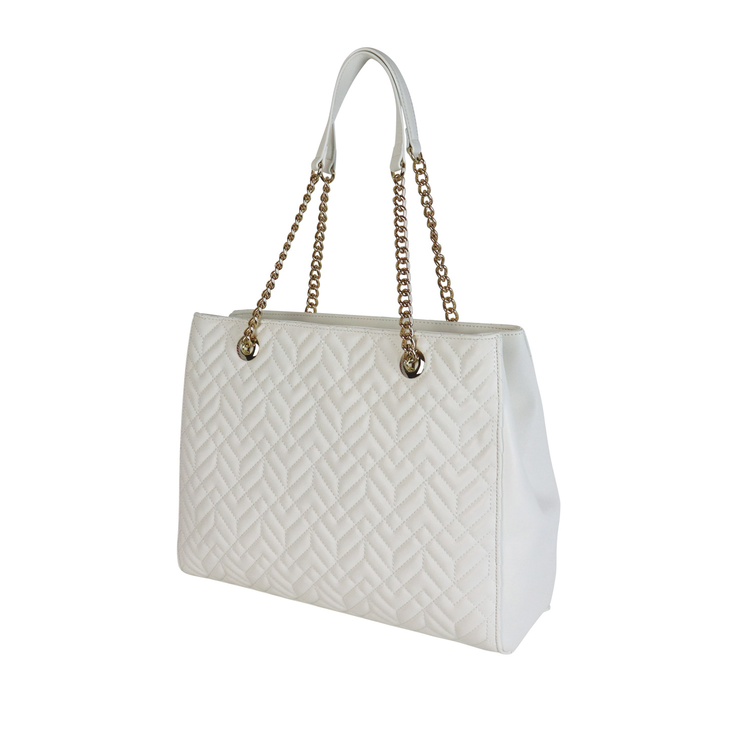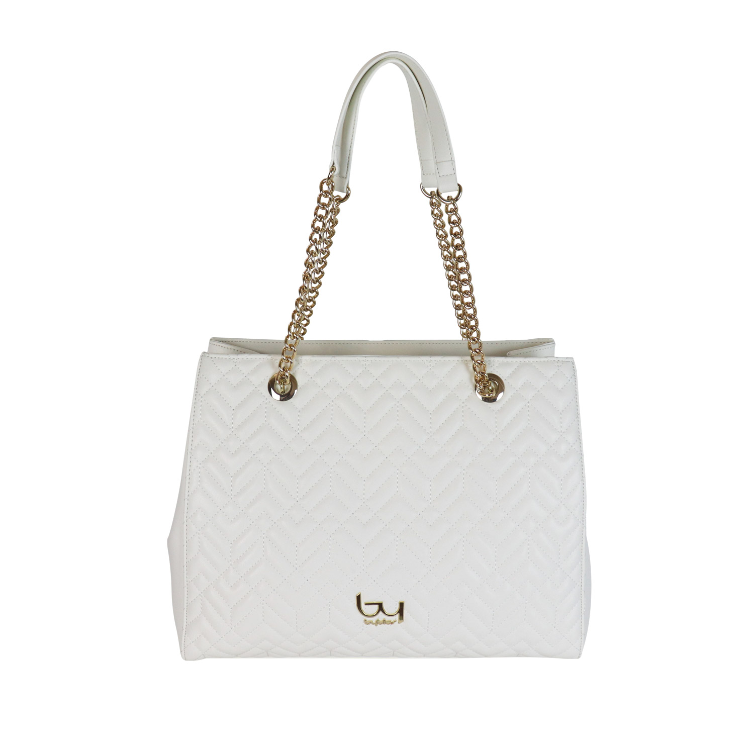 Byblos γυναικεία τσάντα ώμου, σε λευκό χρώμα, κατασκευασμένη από καπιτονέ. Ύψος 29εκ., Μήκος 37εκ.