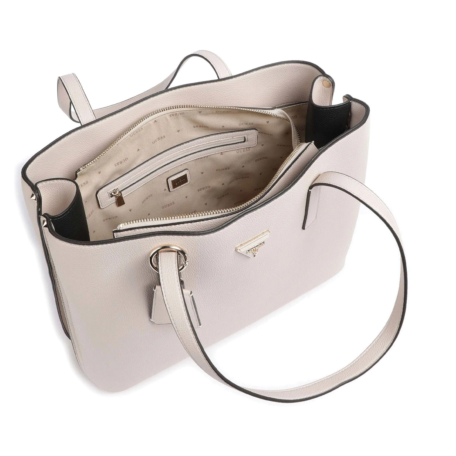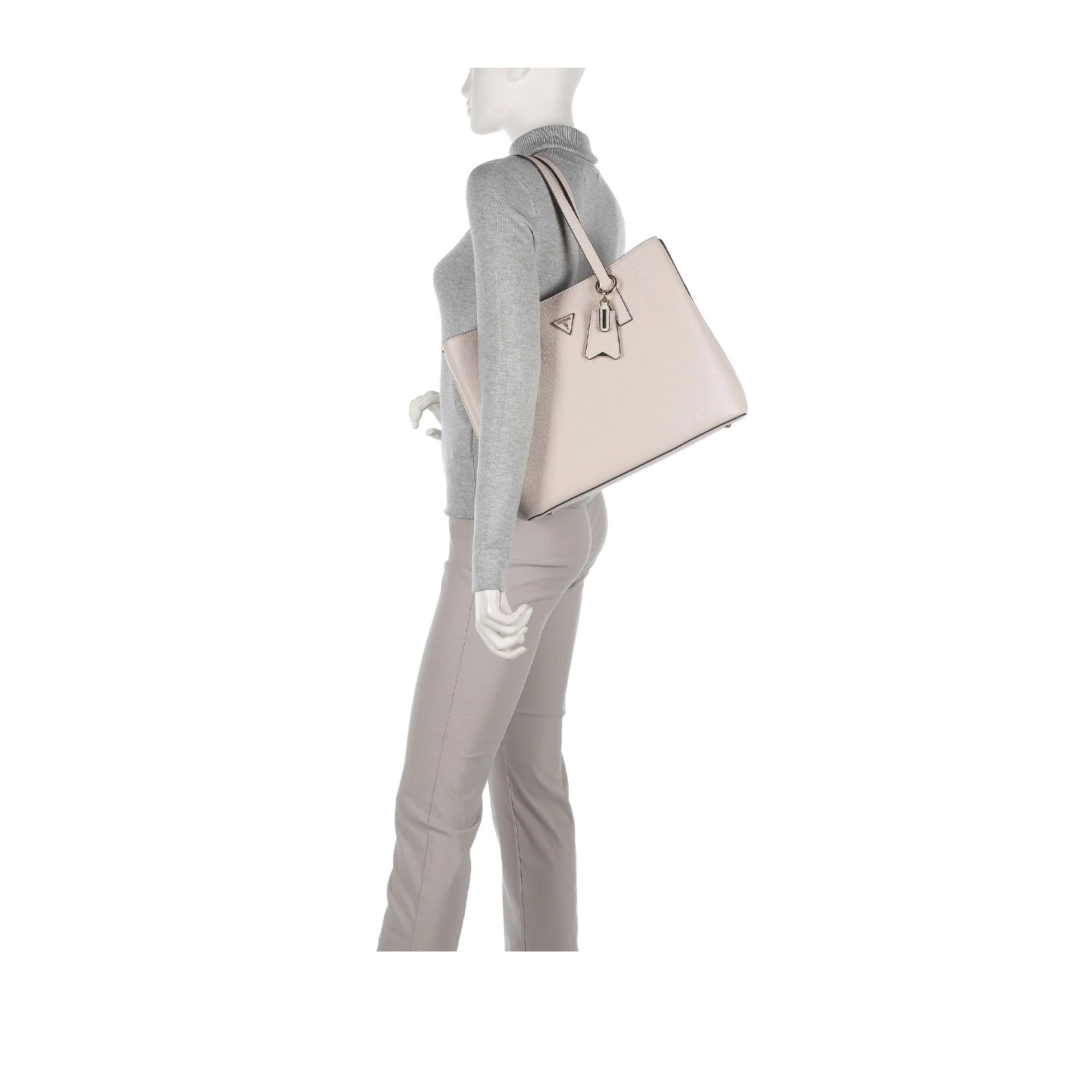 Guess Γυναικεία τσάντα ώμου, σε μπεζ χρώμα, κατασκευασμένη από οικολογικό δέρμα. Ύψος 29εκ., Μήκος 37εκ.