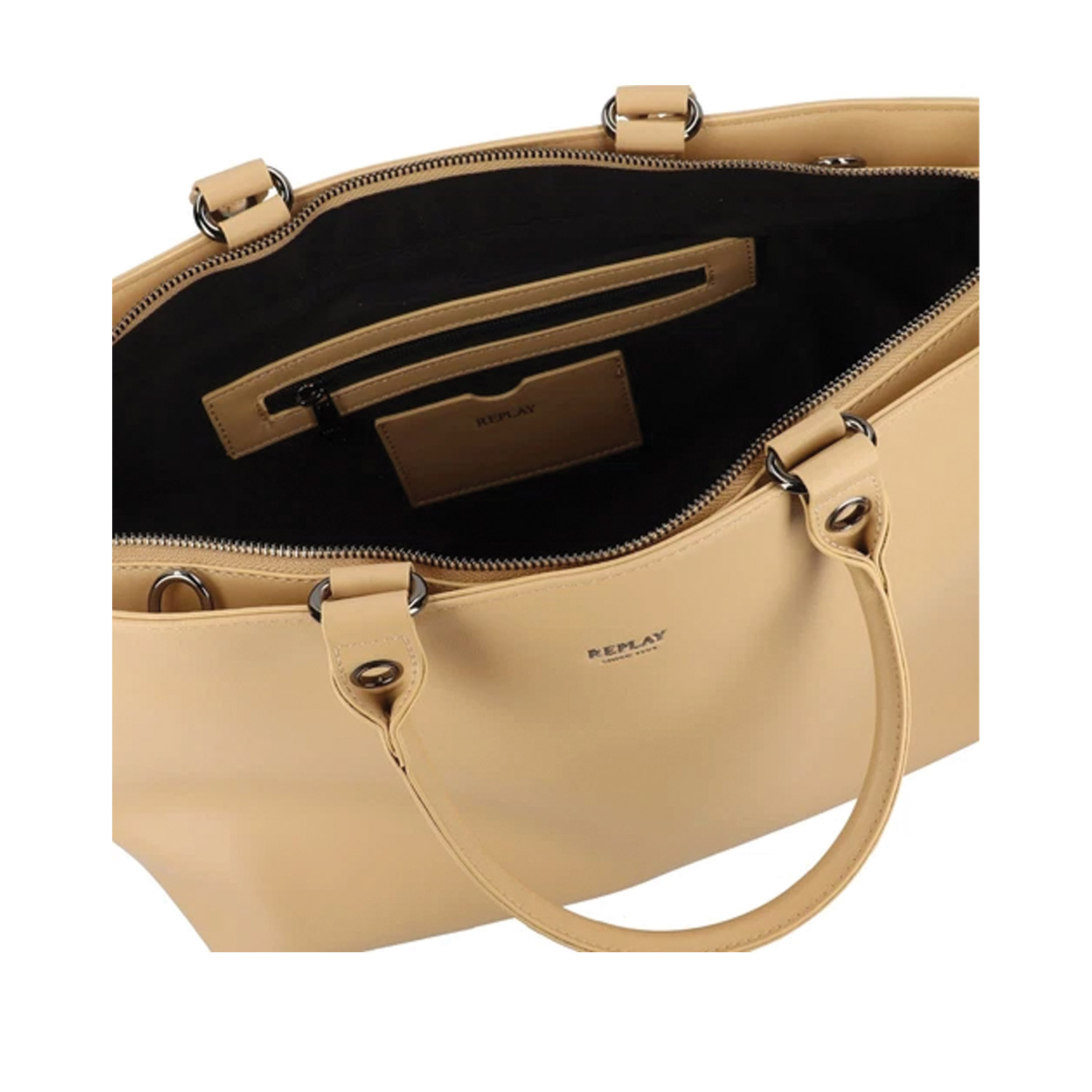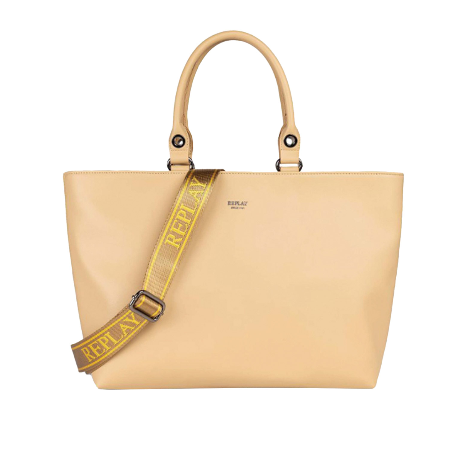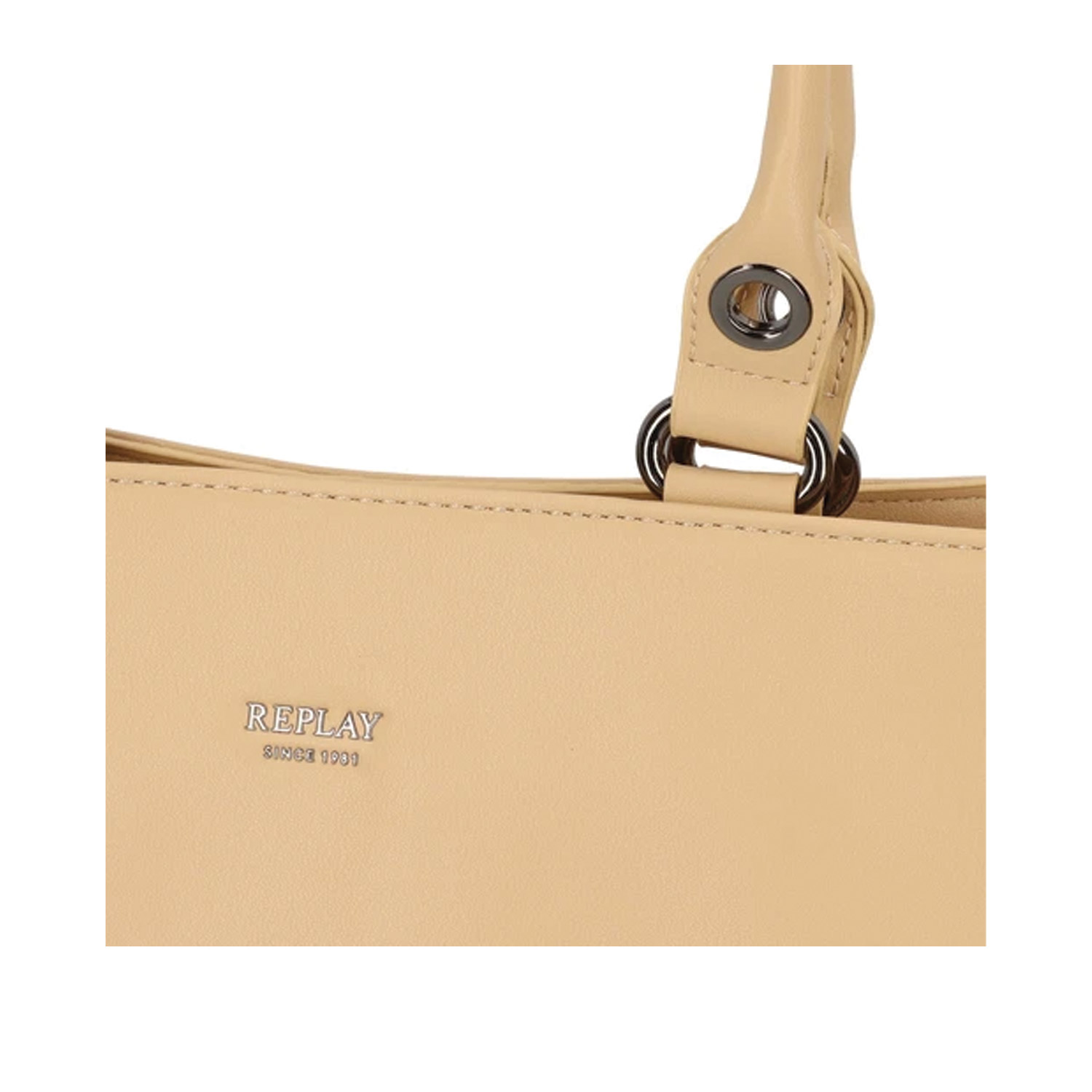 Replay γυναικεία τσάντα ώμου, σε μπεζ χρώμα, κατασκευασμένη από οικολογικό δέρμα. Ύψος 25εκ., Μήκος 35εκ.
