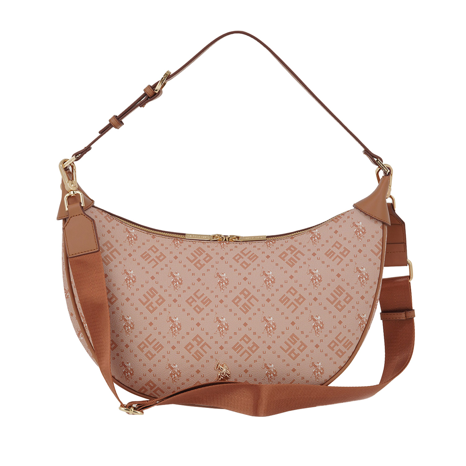 U.S. Polo ASSN. γυναικεία τσάντα ώμου σε ταμπά χρώμα κατασκευασμένη από οικολογικό δέρμα. Διαστάσεις 20εκ. ύψος και 36εκ. μήκος.