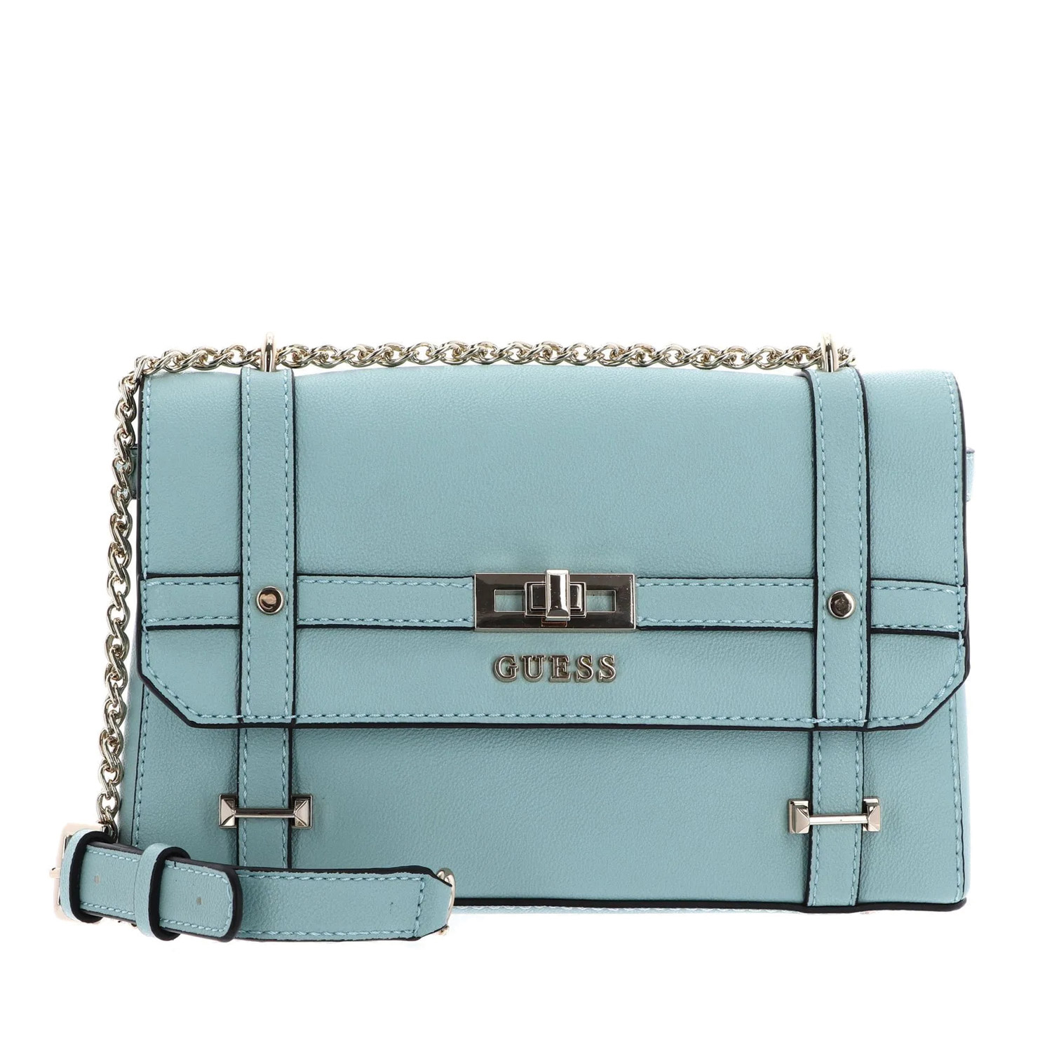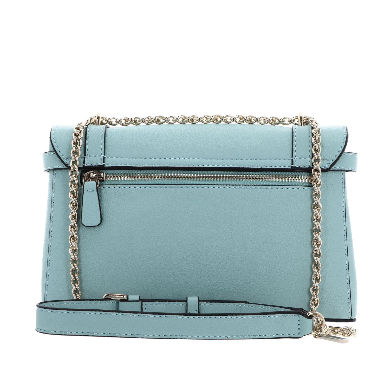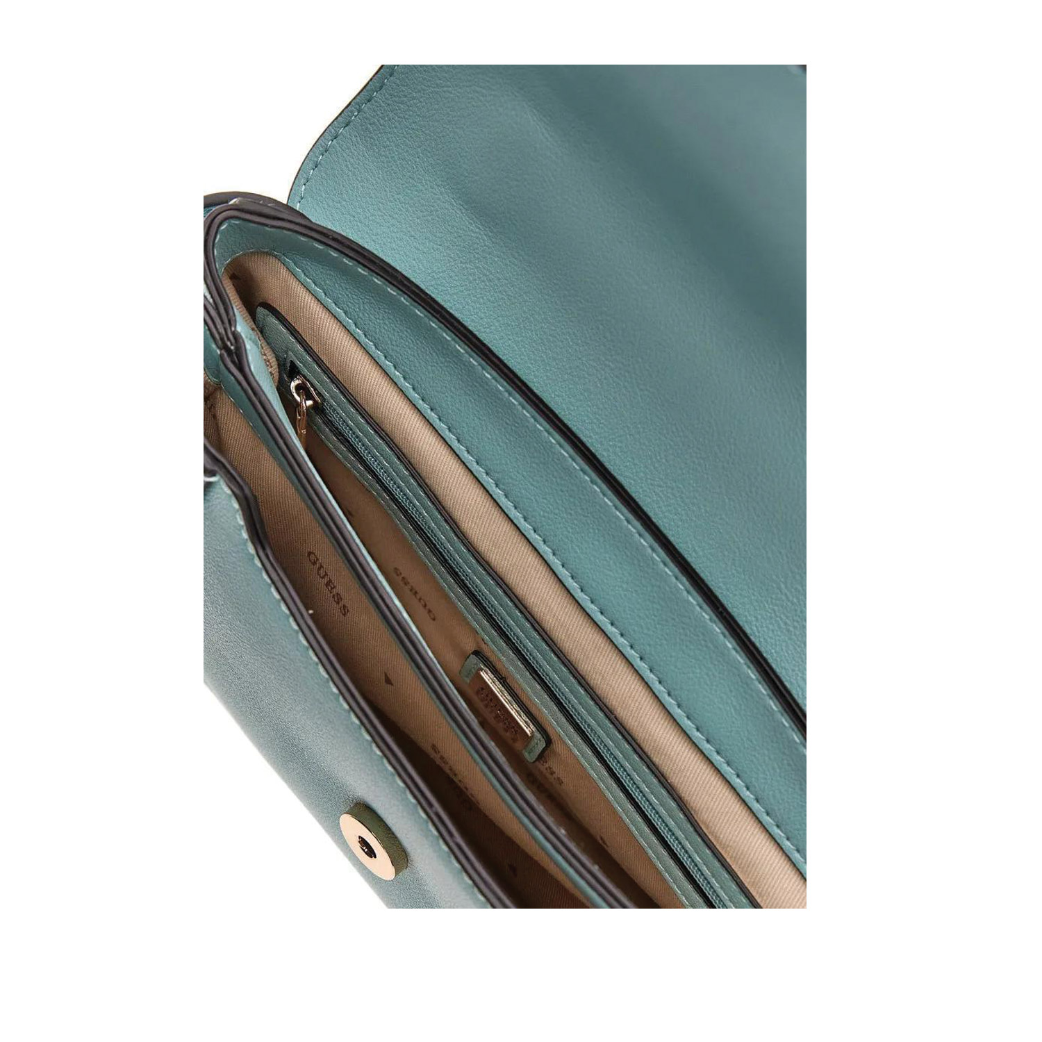 Guess γυναικεία τσάντα ώμου, σε τυρκουάζ χρώμα, κατασκευασμένη από οικολογικό δέρμα. Ύψος 16εκ., Μήκος 24εκ.