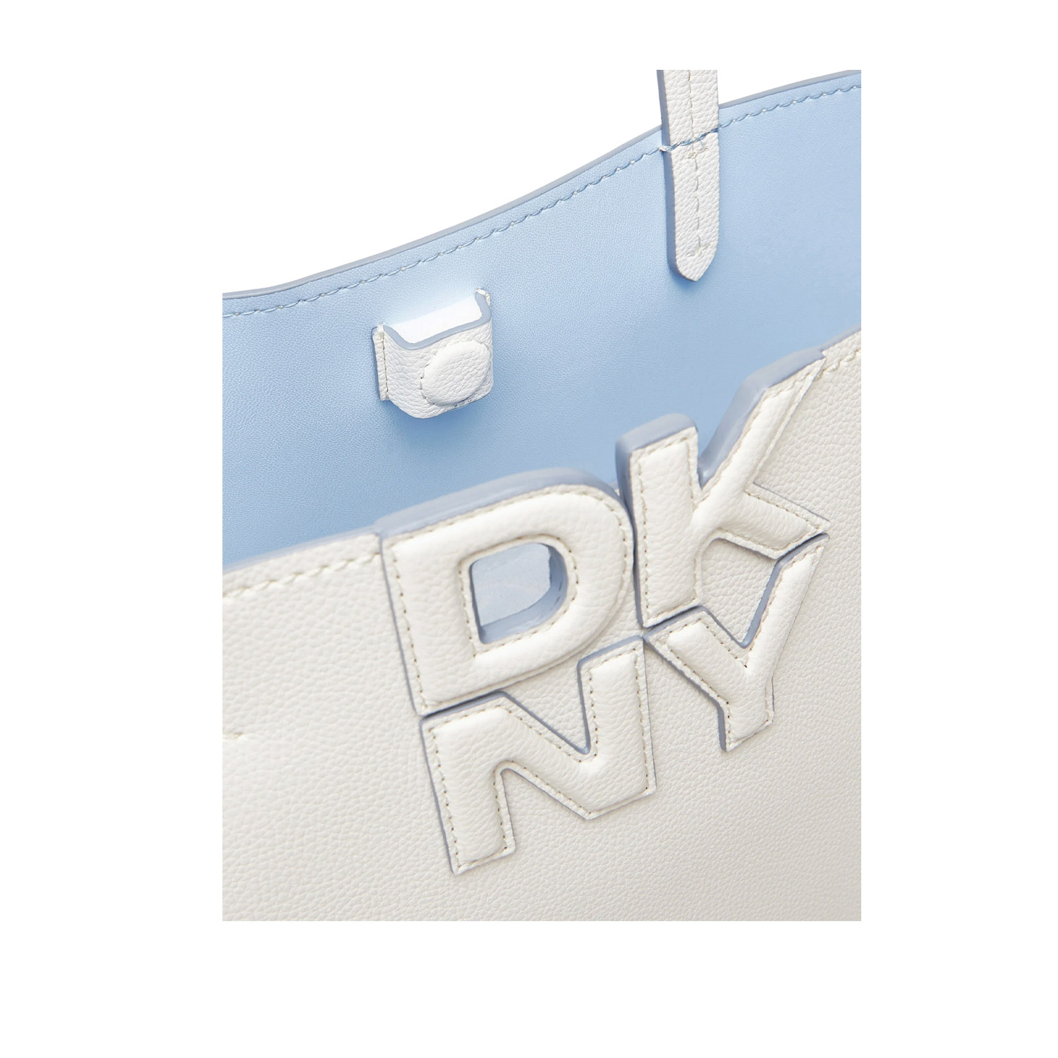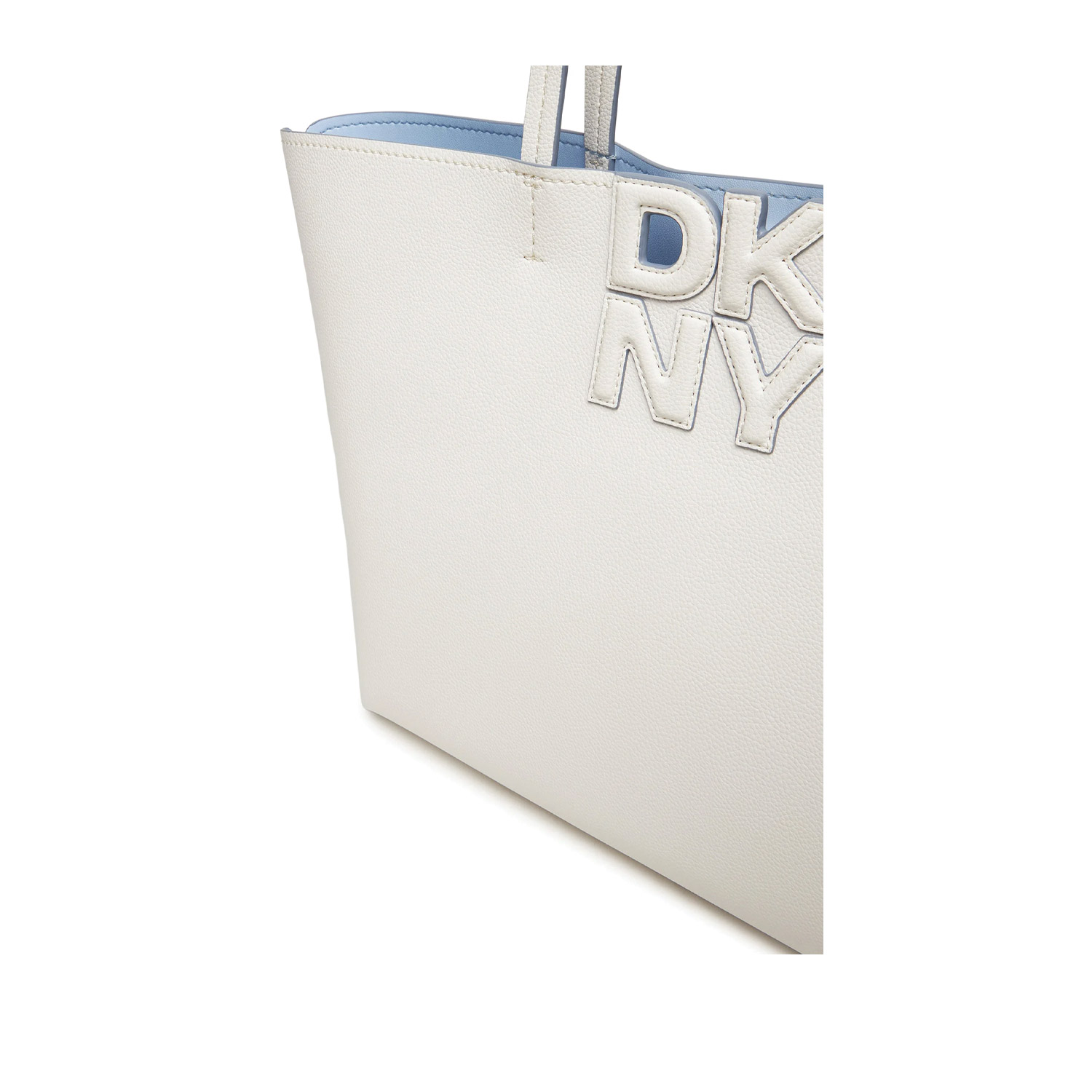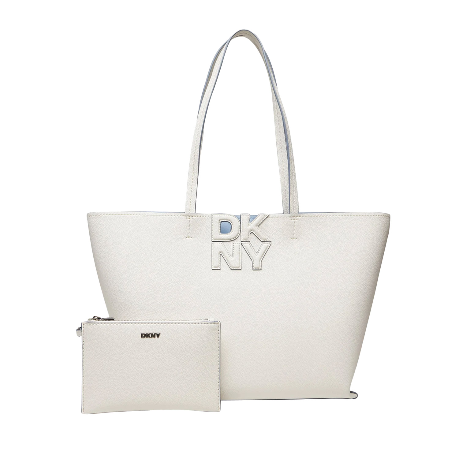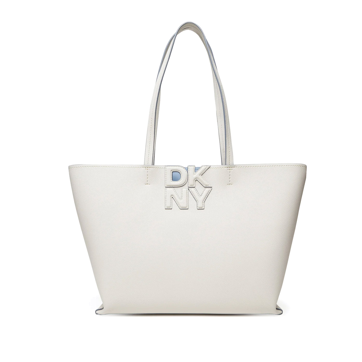 DKNY γυναικεία τσάντα ώμου σε λευκό χρώμα κατασκευασμένη από οικολογικό δέρμα. Διαστάσεις 30εκ. ύψος και 45εκ. μήκος.
